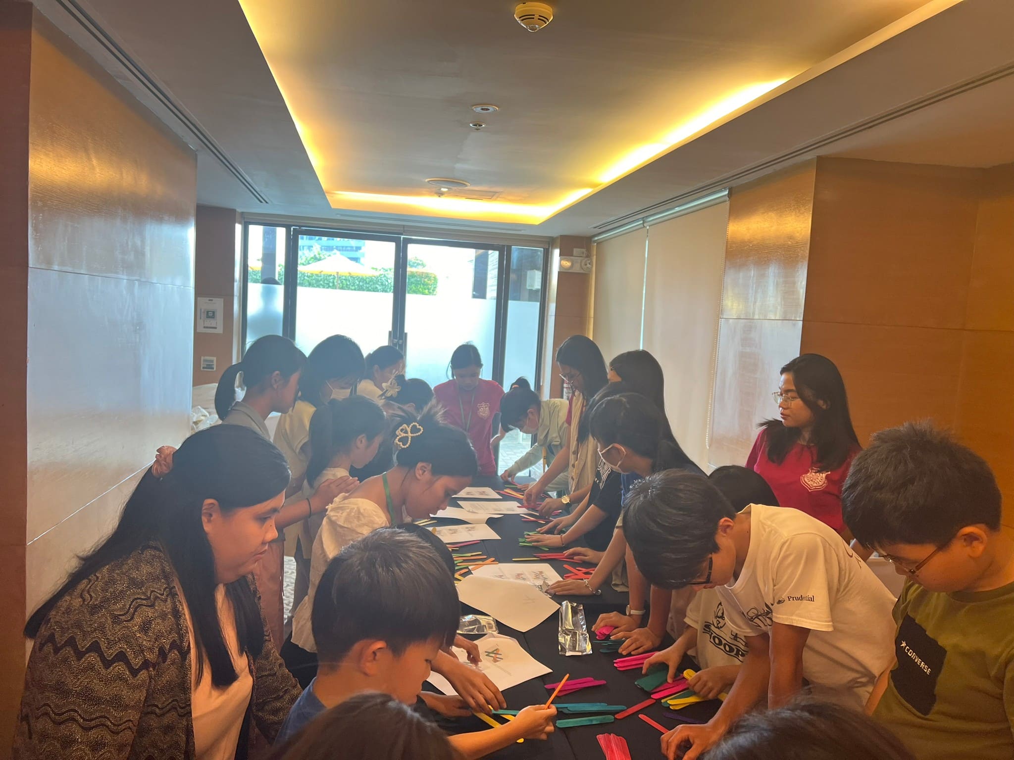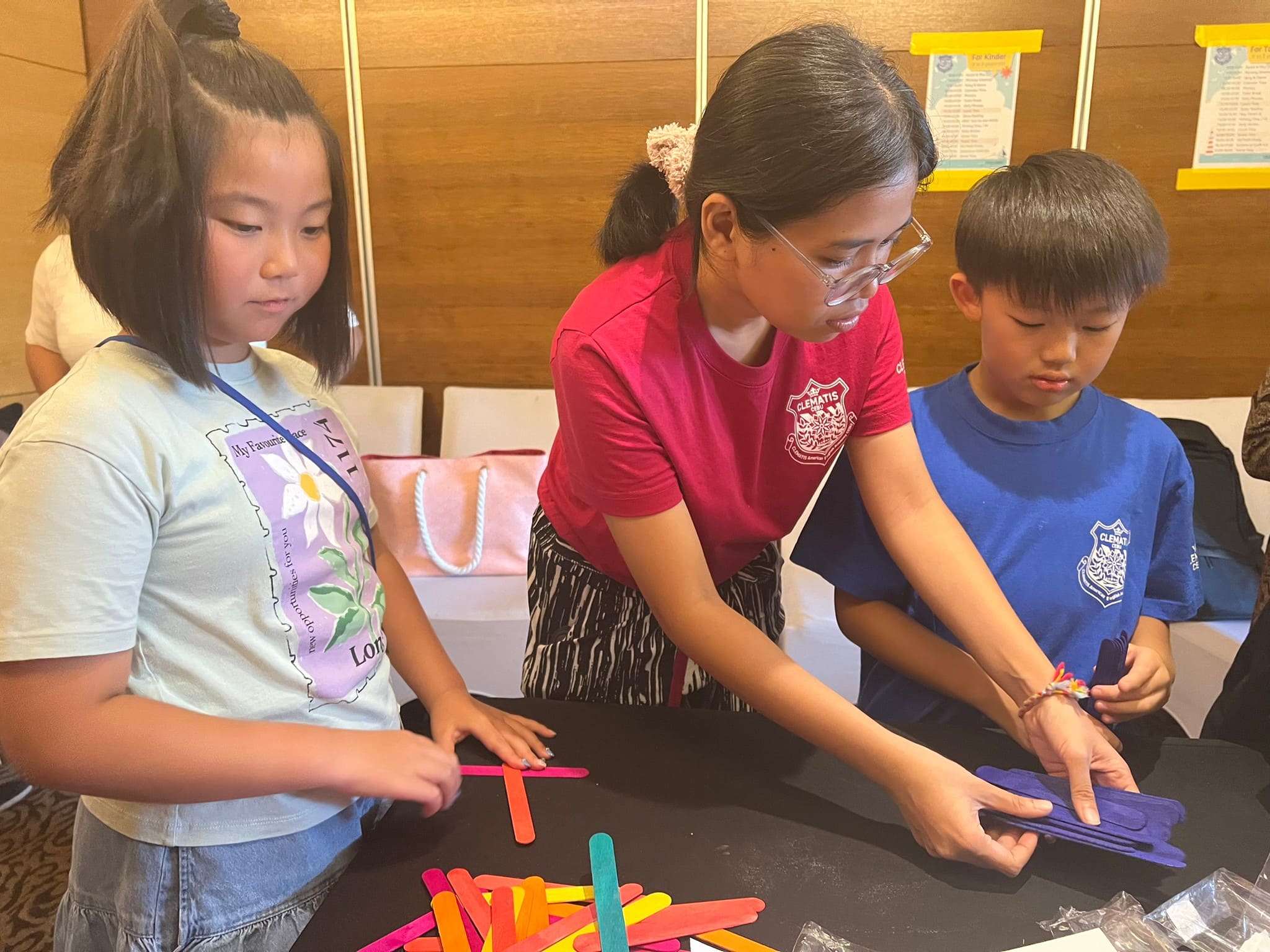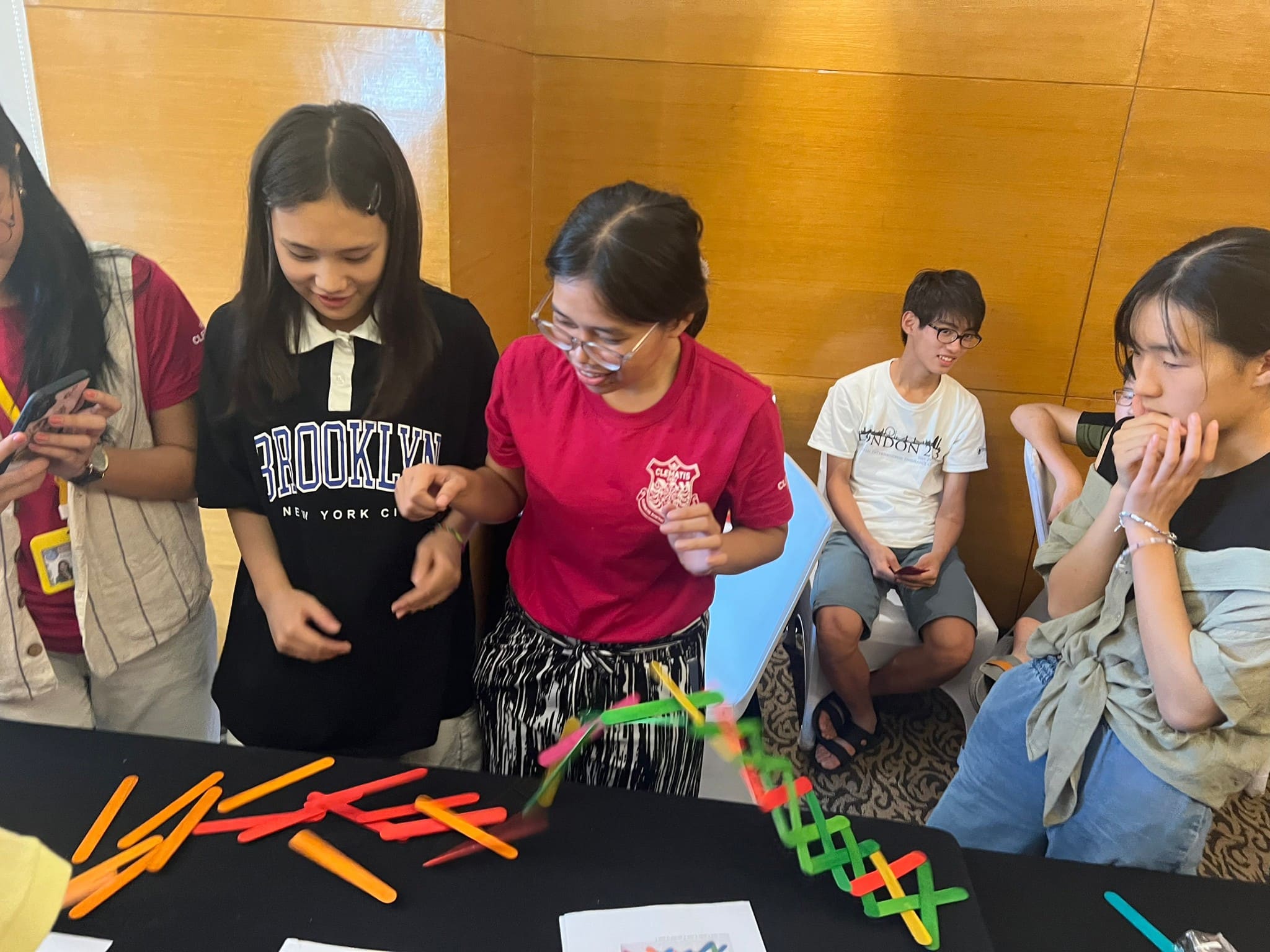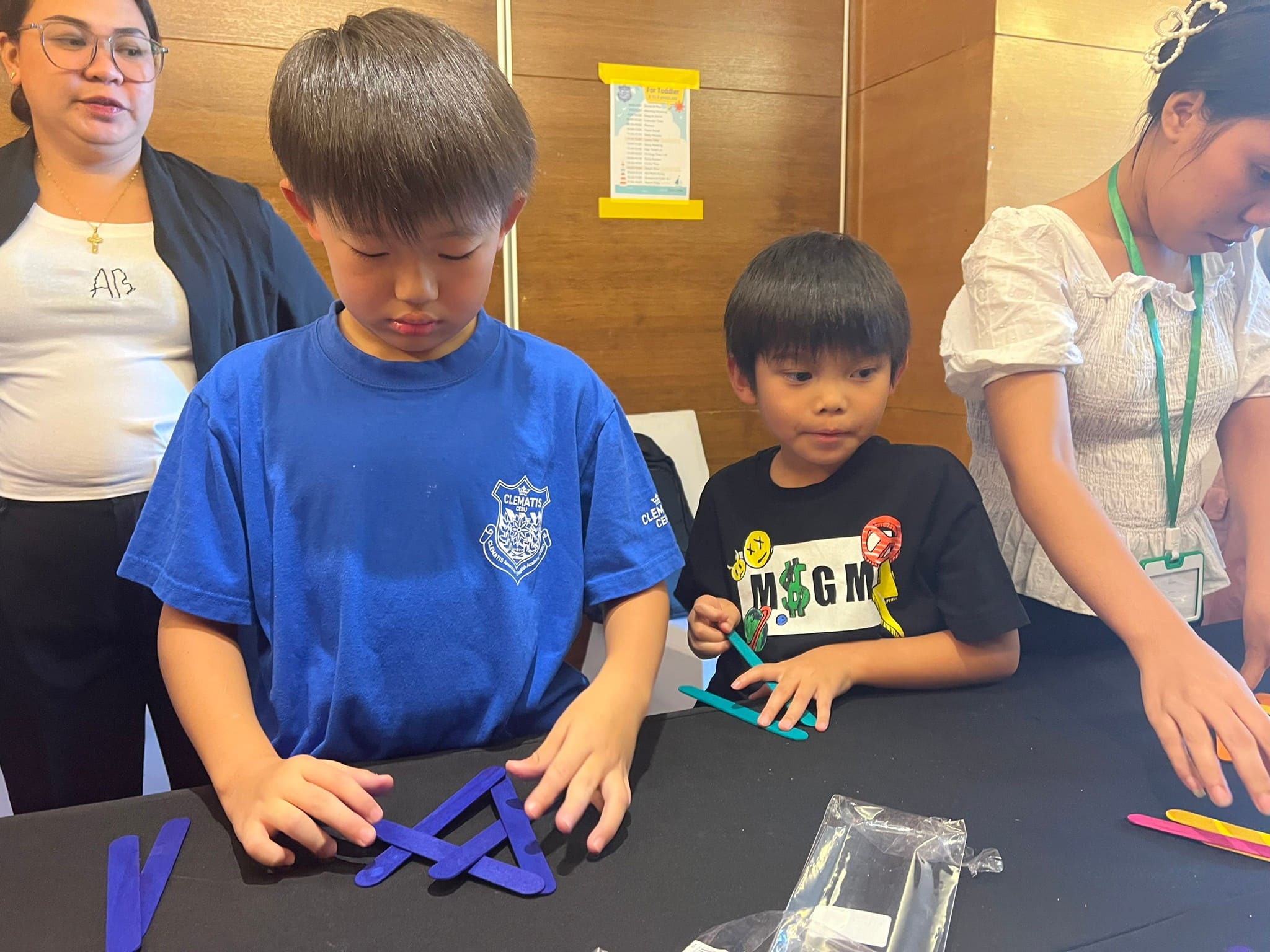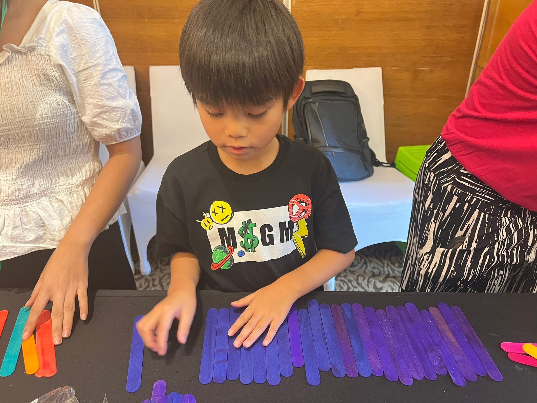 カラフルなスティックにテンションもアップ!スティックが弾けるたびに、歓喜の声が上がっていました(^^)/ 幼・小・中学生が縦割りになって、それぞれのレベルの役割え行うサイエンス。その楽しい時間に活きた英語を覚えます。セブ島セブナビジュニアキャンプの英語漬け留学のメインクラスであるサイエンスは、今日も大盛り上がりです!