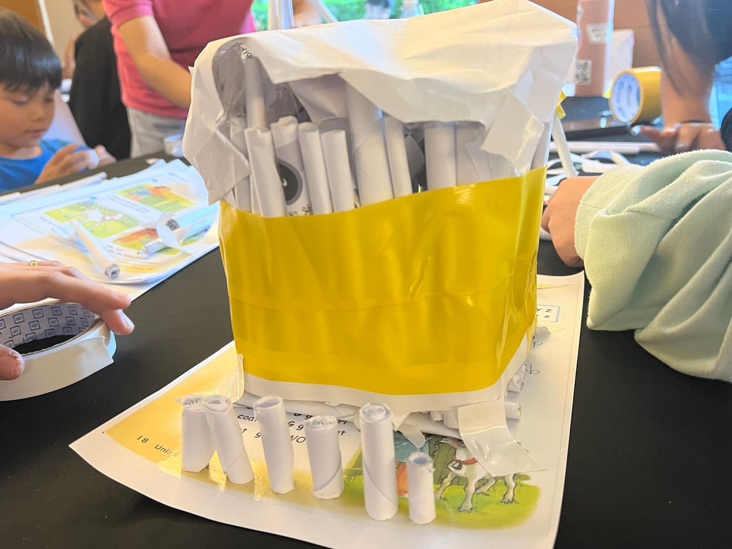 本日のサイエンスは「Make your own paper」(新聞紙トラスト構造)です。