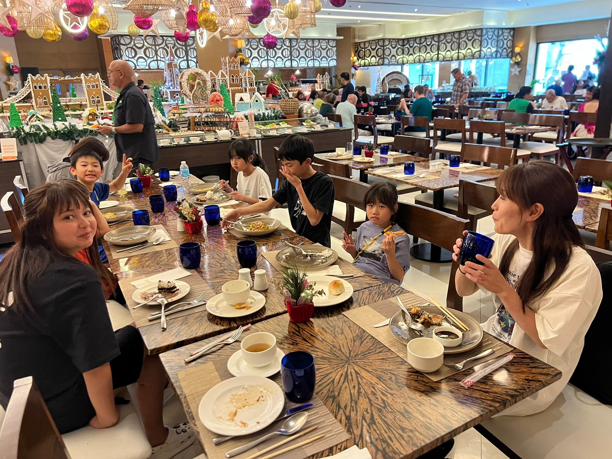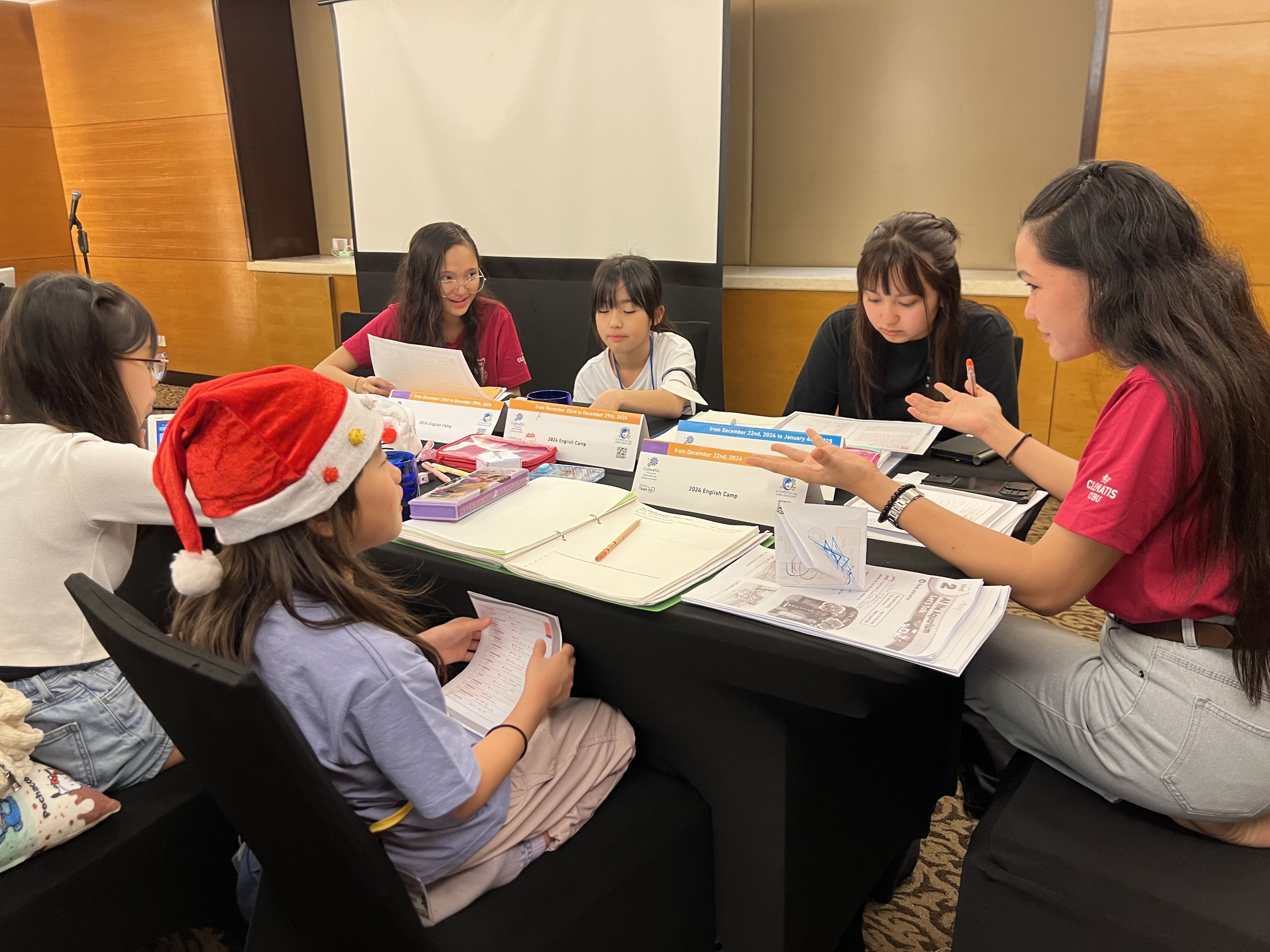 お食事中も英語講師が留学生の皆さんを見守ります。とくに小さなお子様は、英語講師がしっかりケア&サポート。ジュニアキャンプ参加の女の子が、まるで姉弟のように可愛がる様子も微笑ましいですね♡