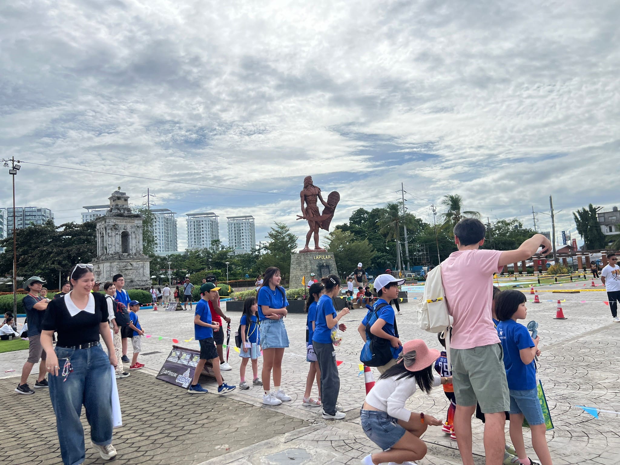 1521年4月27日、フィリピンのマクタン島で発生した戦闘。地元の領主ラプ=ラプが、世界一周航海中のスペイン艦隊と戦い、その司令官のフェルディナンド・マゼランを討ち取ったとして有名です。その上陸地を記念して出来た公園で、皆さんで記念撮影をしました。