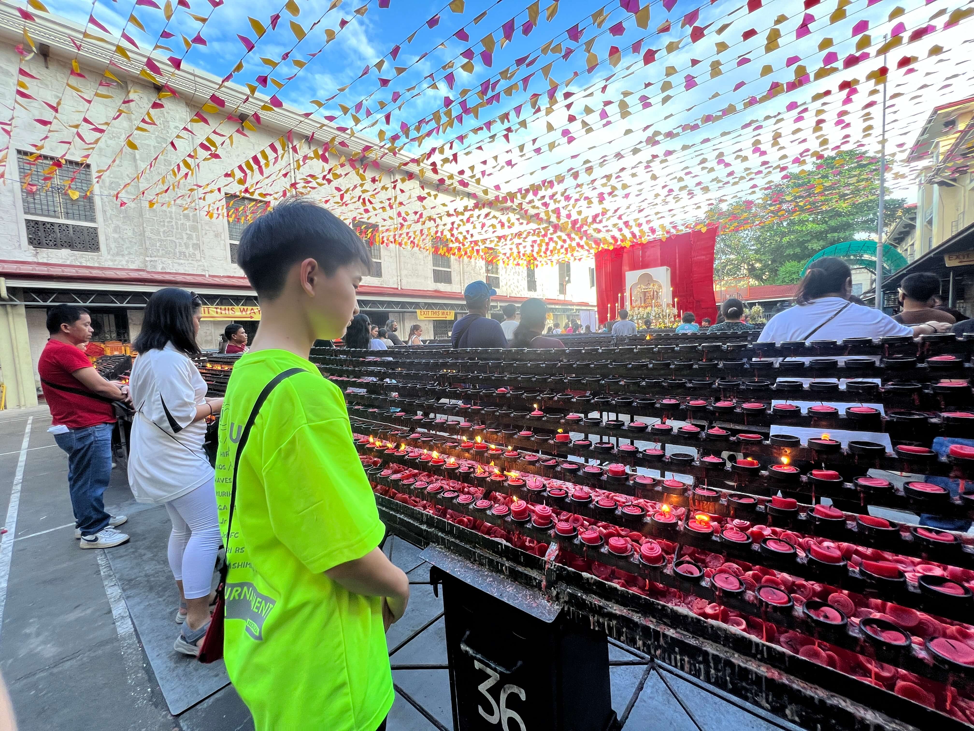 誕生日や大切なイベント、大きな願い事をする時に行う「キャンドルを灯した願い事体験」にもトライ。本来は祈りたい人の数だけキャンドルに火を灯すとか。料金箱があるので、自分の気持ち分だけお金を入れる、日本でいうお賽銭のような感じです(目安は1本1php ※30円)。