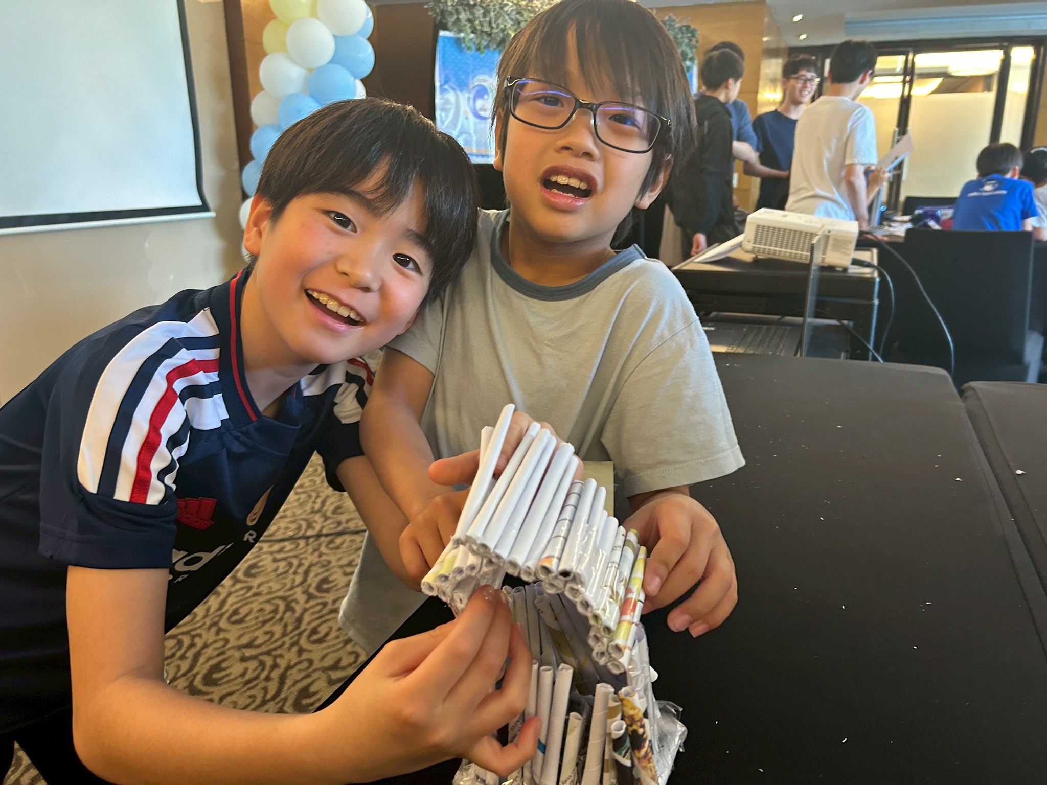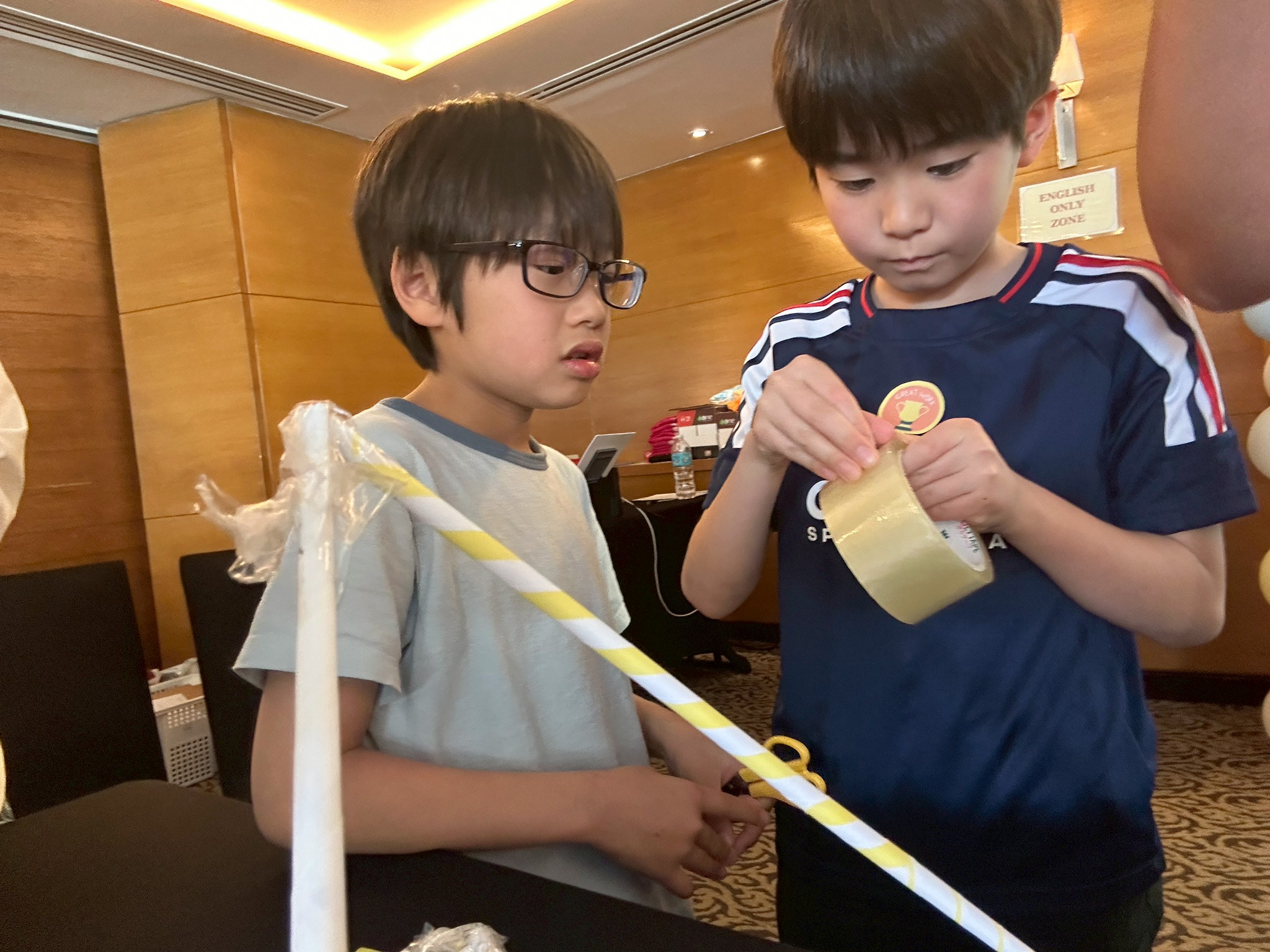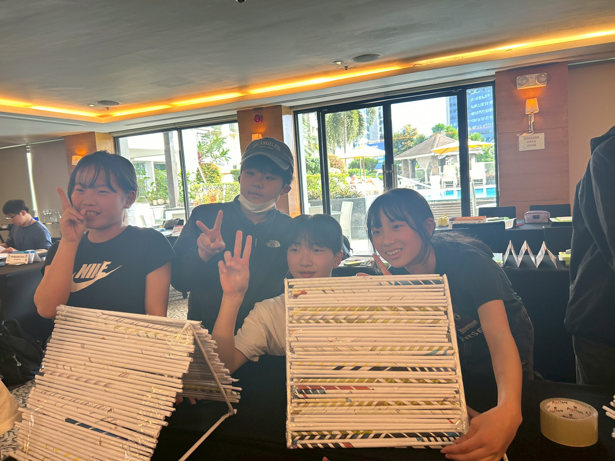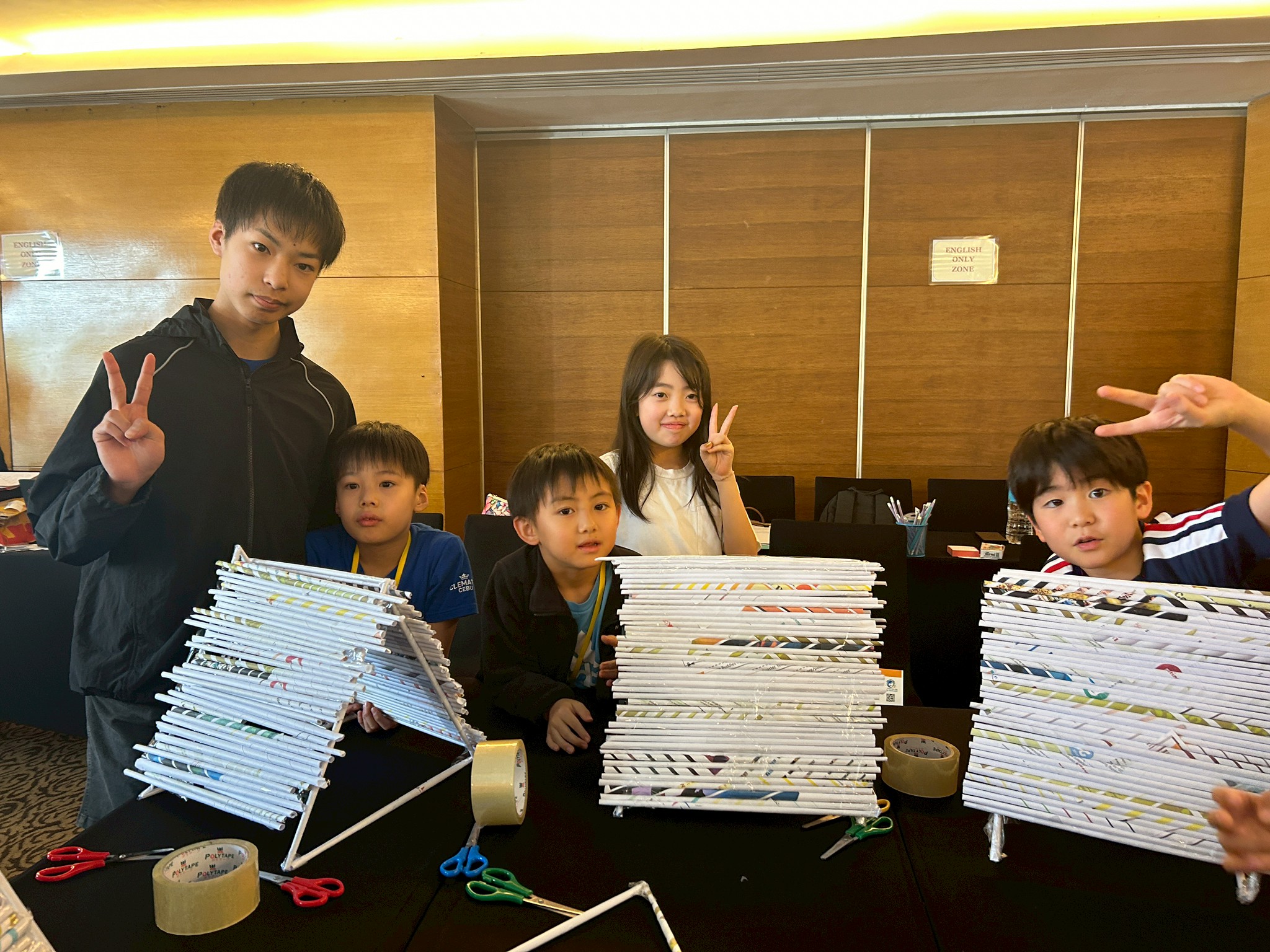 今日のサイエンスクラスは「Make a House with Newspaper Trusses(新聞ドーム)」。