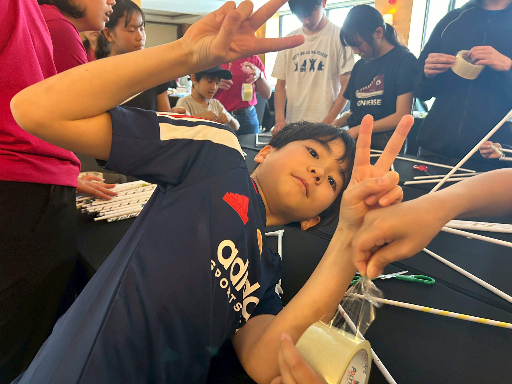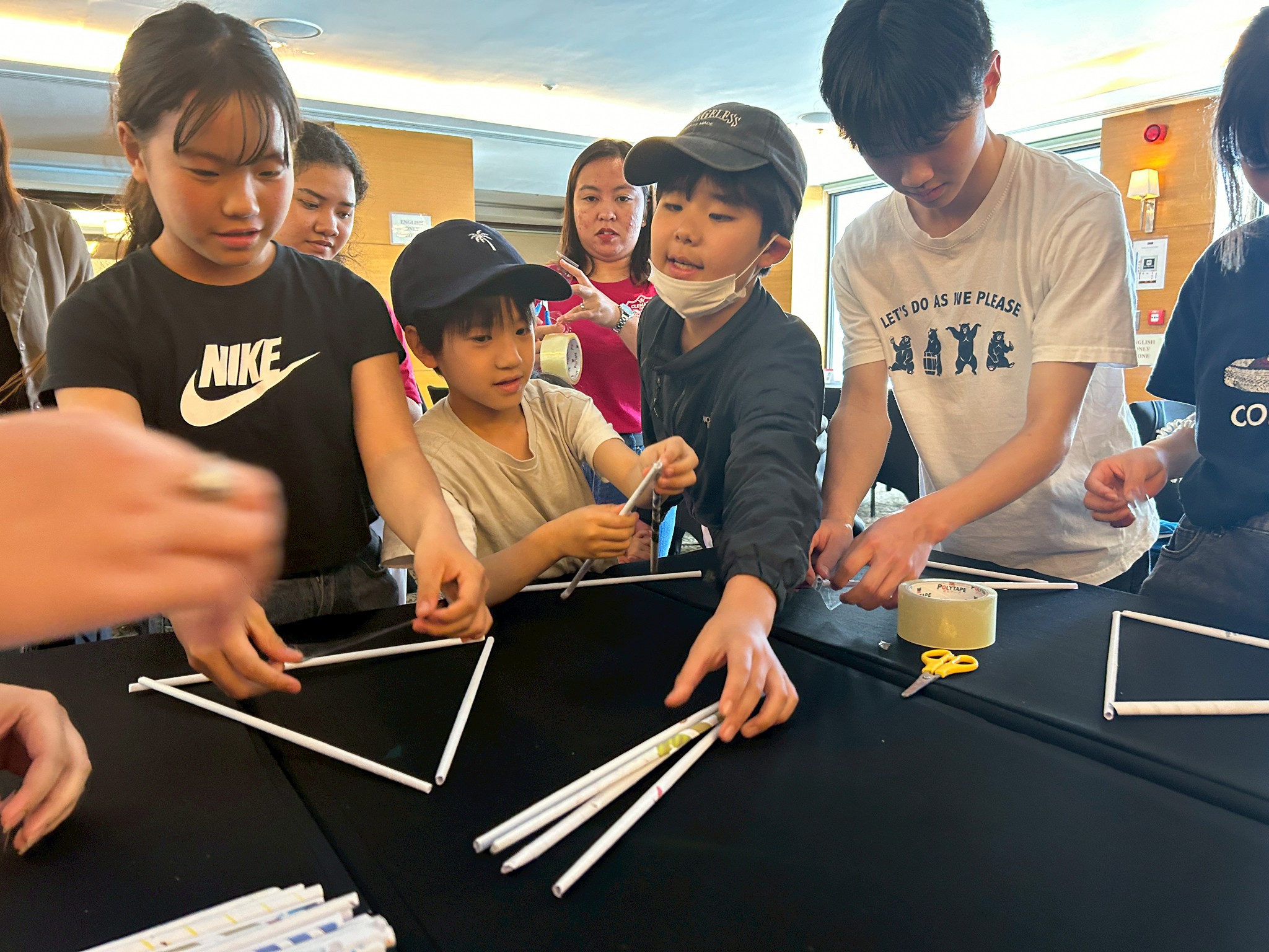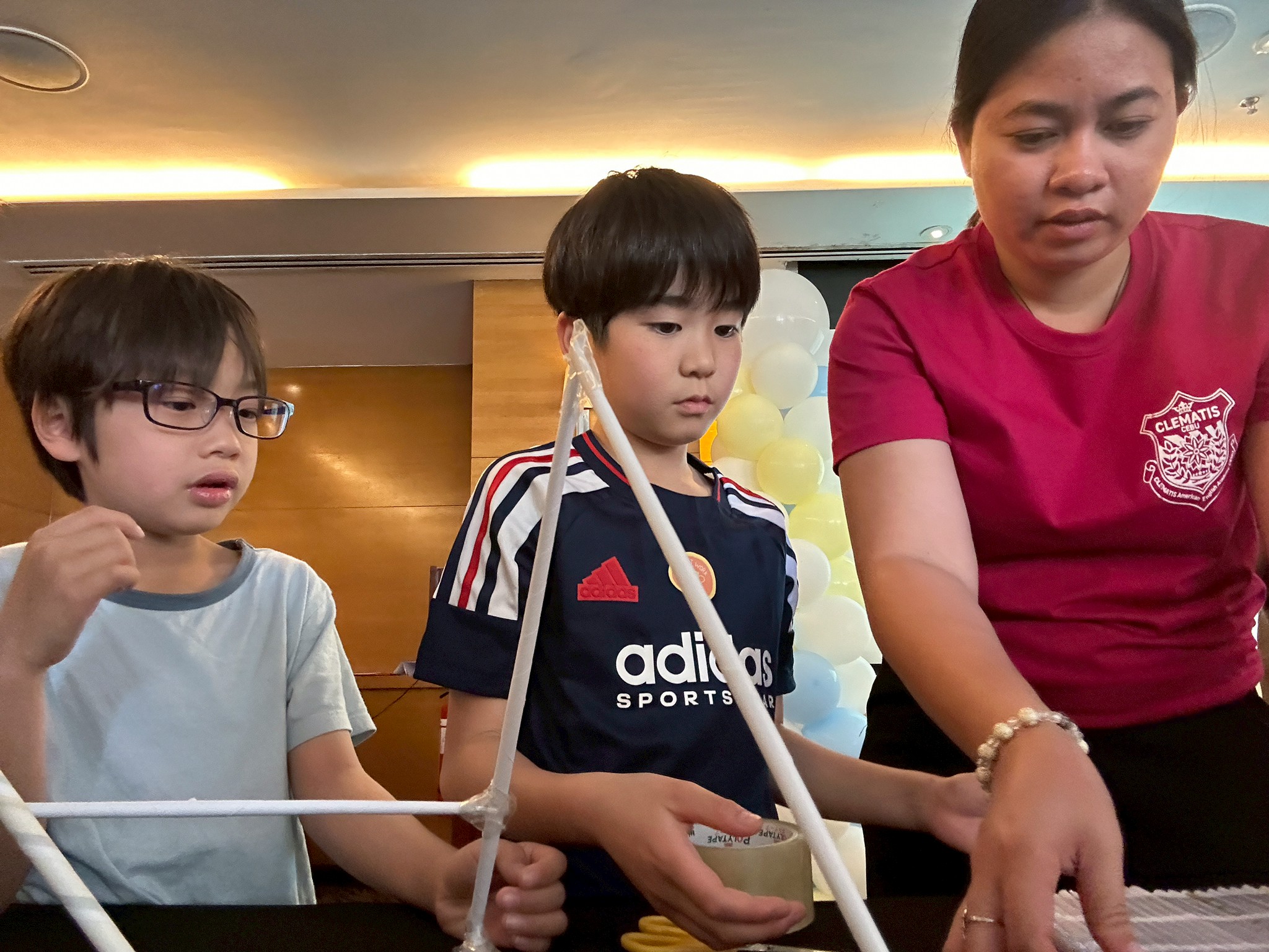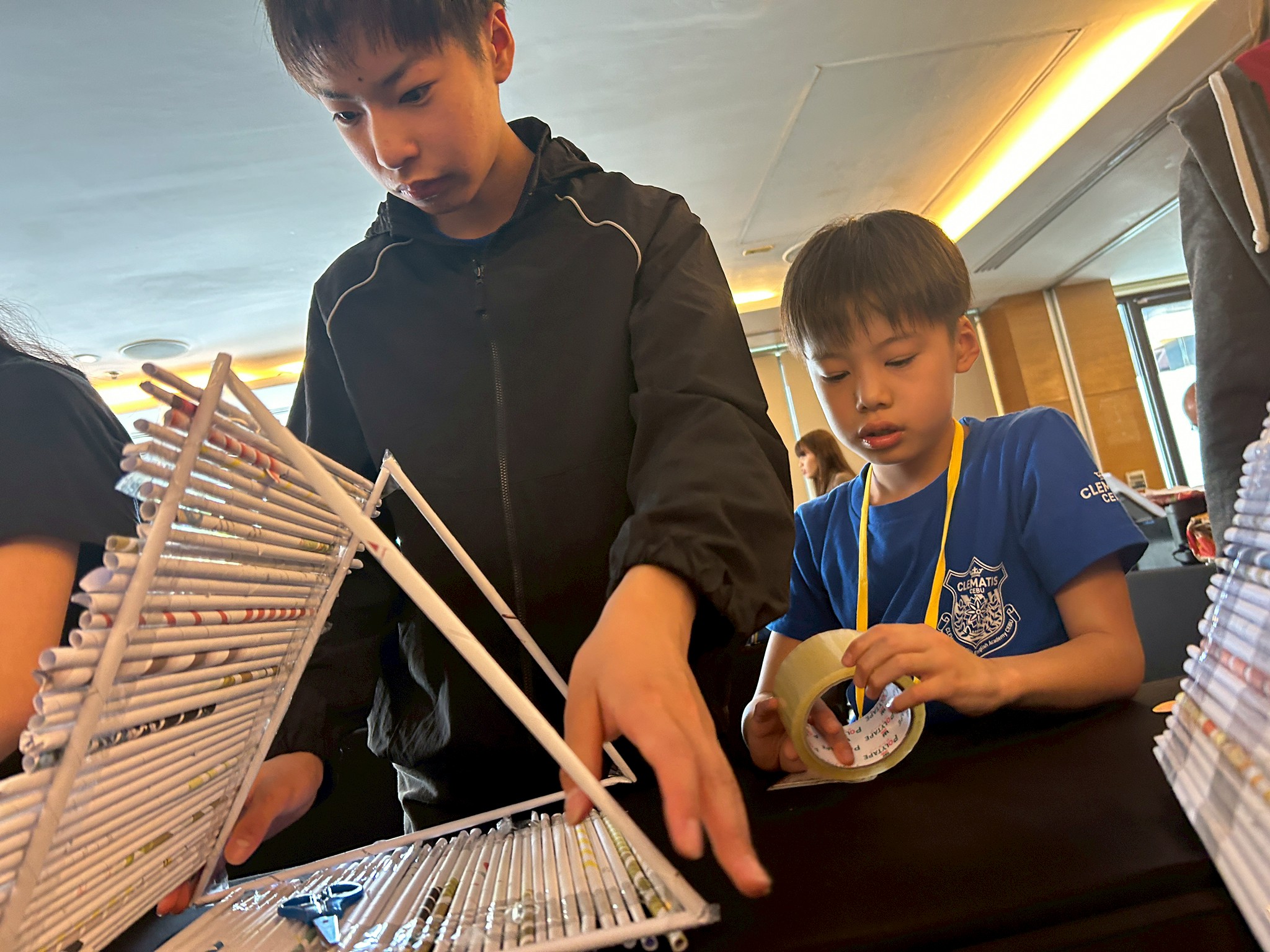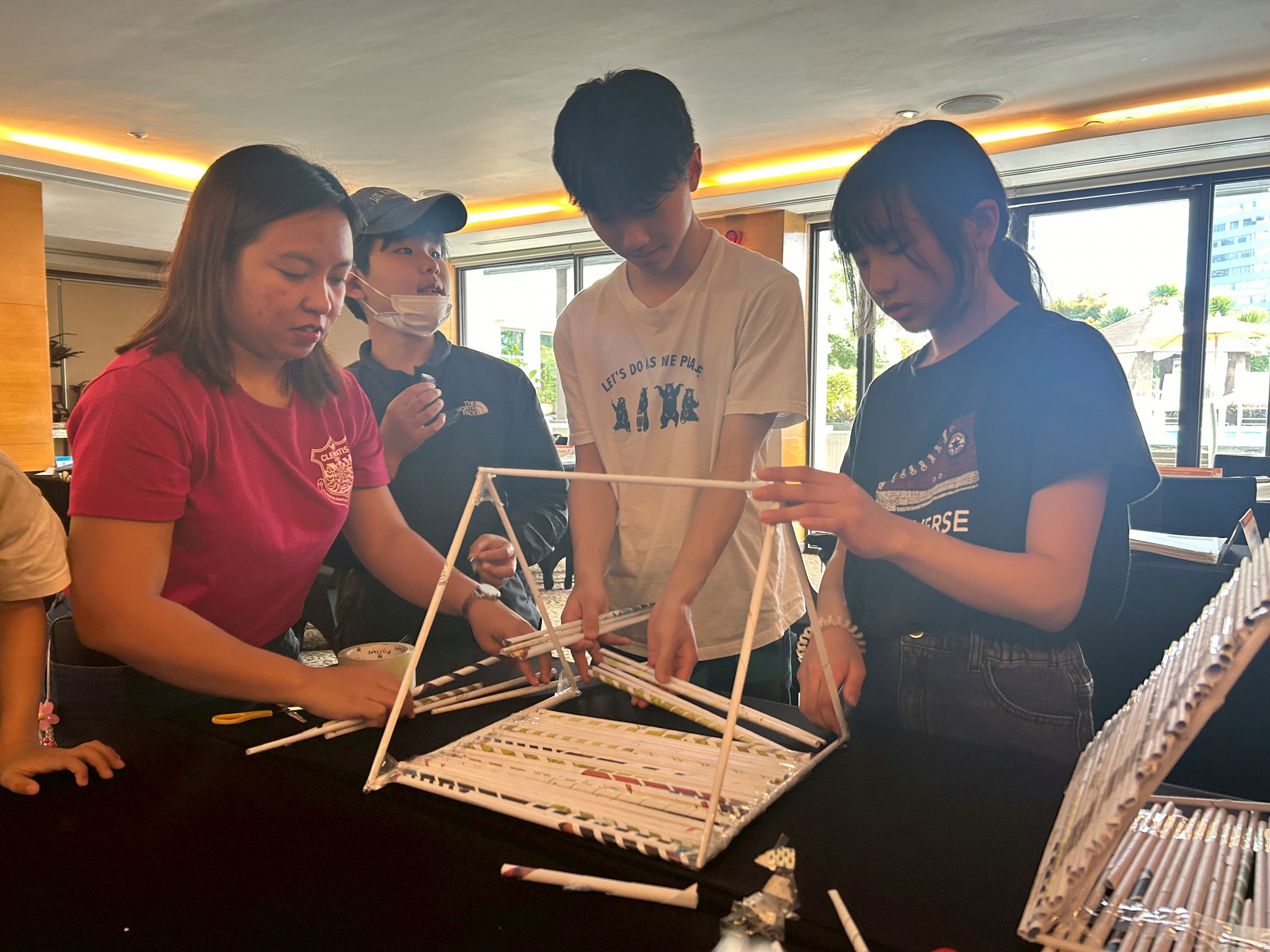 今日のサイエンスクラスは「Make a House with Newspaper Trusses(新聞ドーム)」。