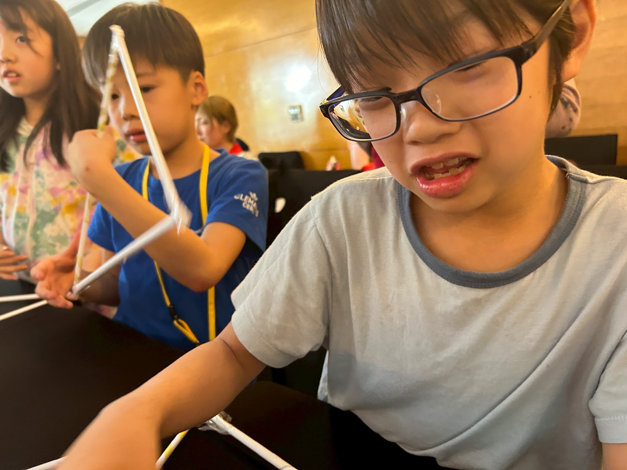 〇(まる)△(さんかく)□(しかく)。強度がもっとも強いのはどの形でしょうか?新聞の棒でそれぞれを形作り、実験してみよう!世界の建造物に共通する図形は何かも考察します。