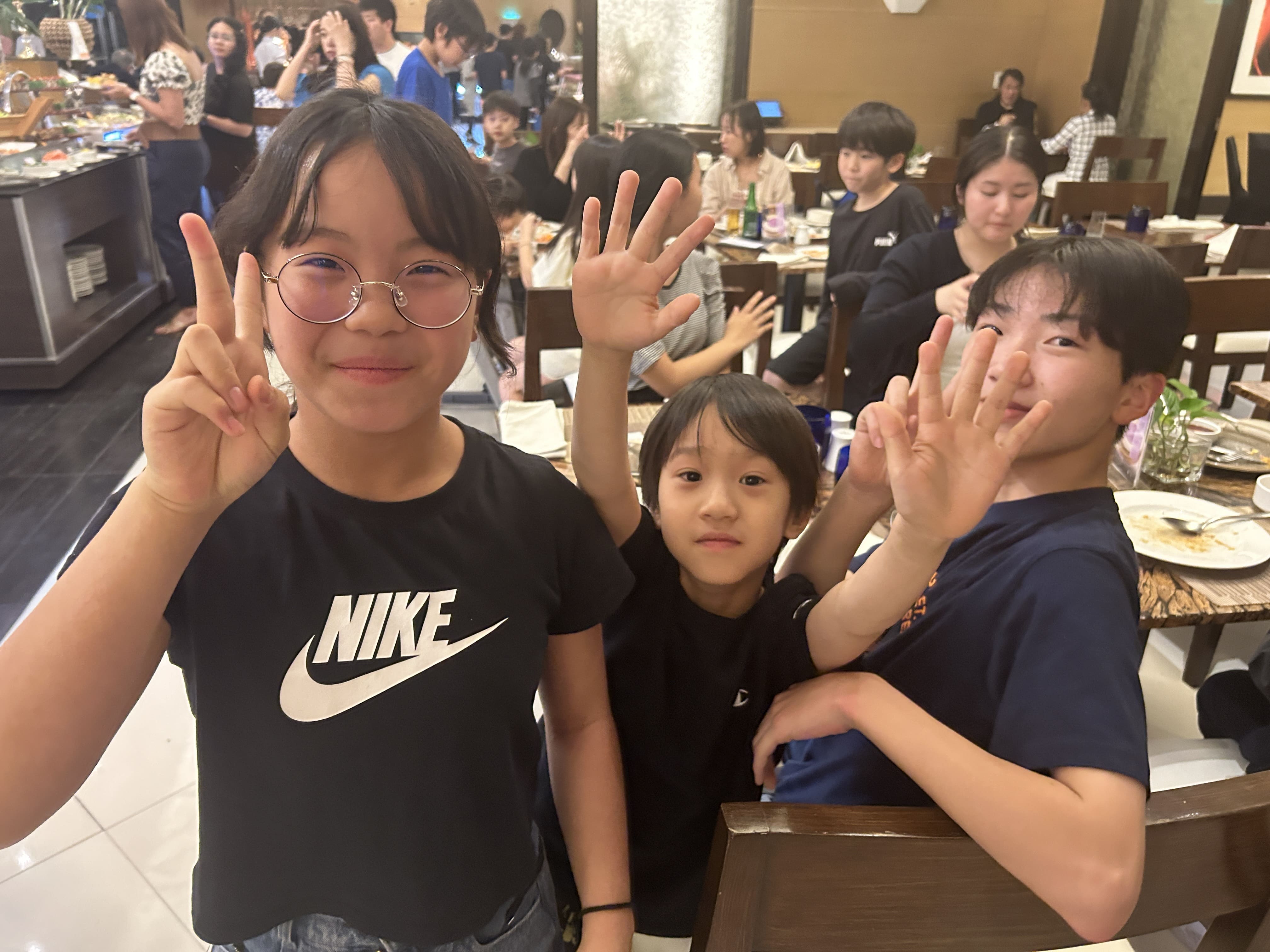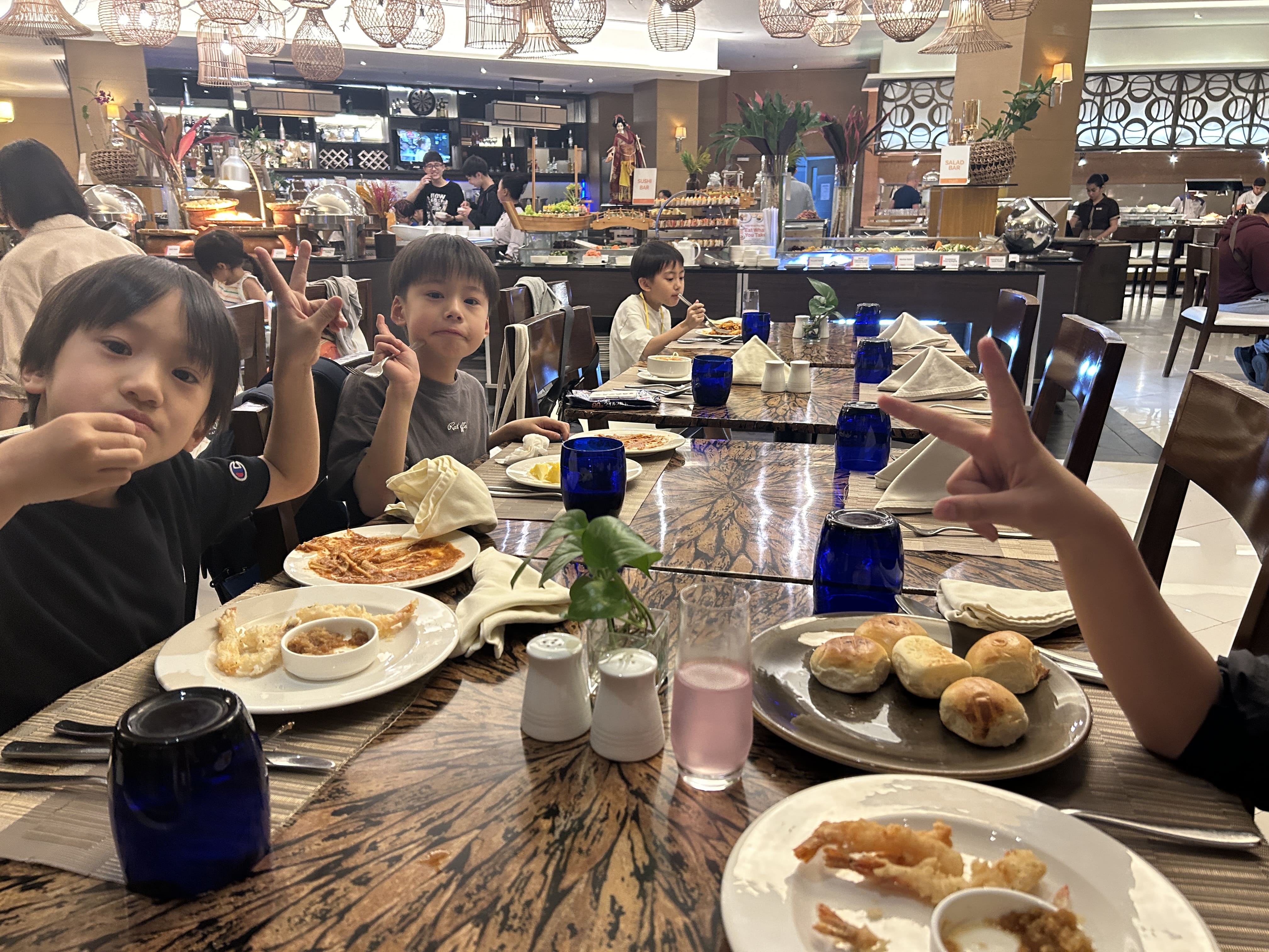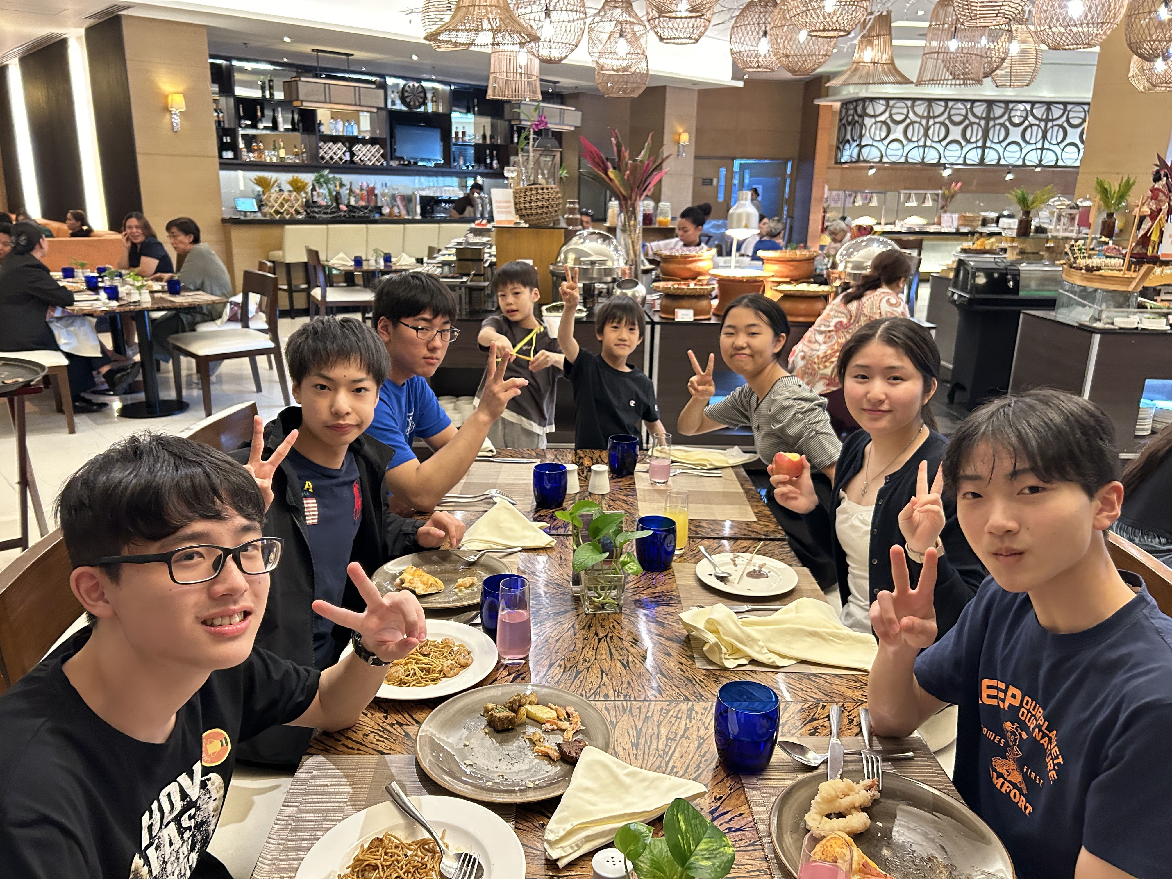 ジュニアキャンププログラム1日10コマをやり遂げた後は、お待ちかねのディナータイム♪
