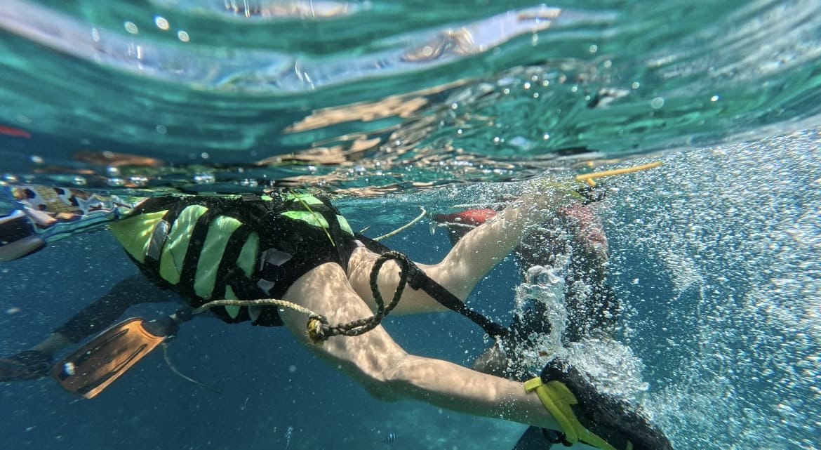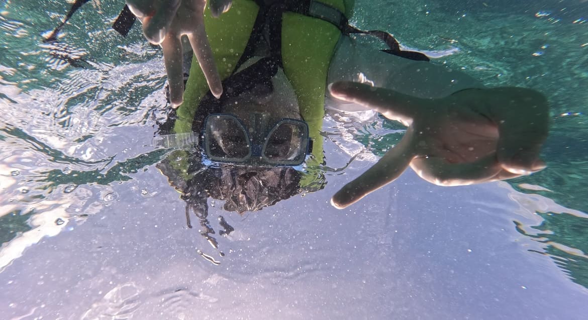ゴーグルをしっかりと装着し、各々のペースで潜っていきます。