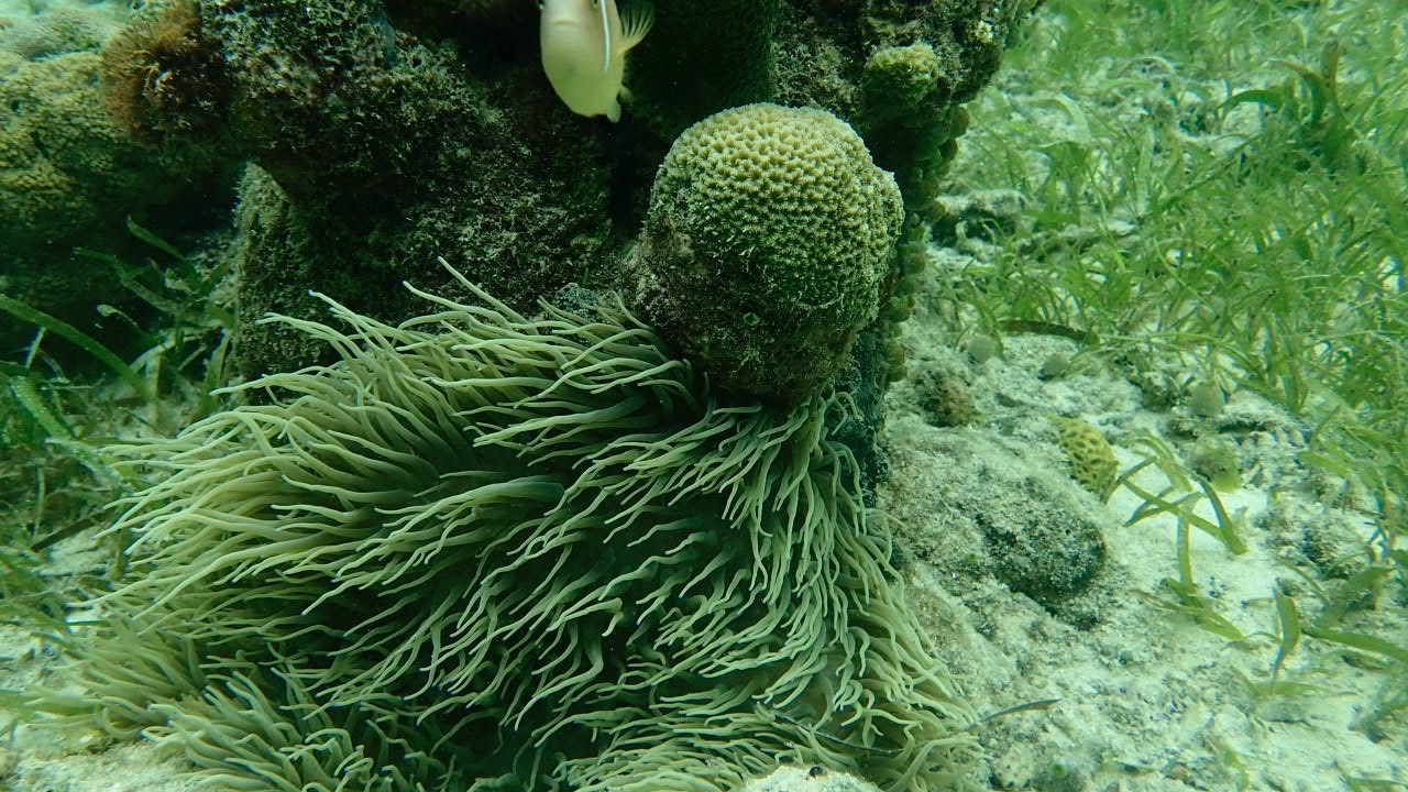 魚、ヒトデ、いろんな海のいきものがスイスイと気持ちよく泳いでいる中にお邪魔します。