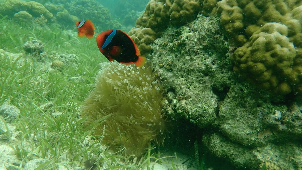まわりはサンゴ礁で囲まれており、海洋保護区に指定されています。海は驚くほど透明で最高に美しい‼