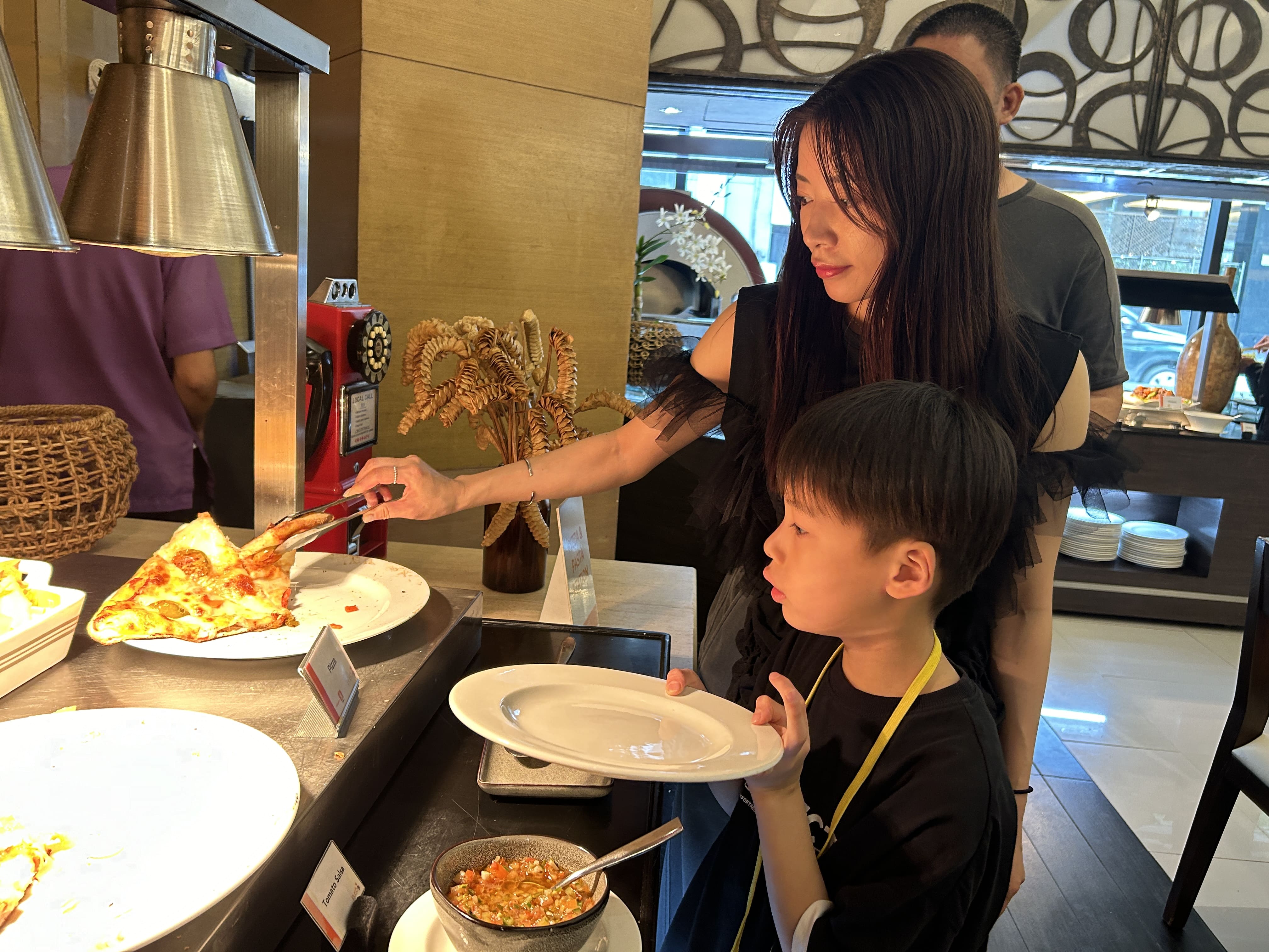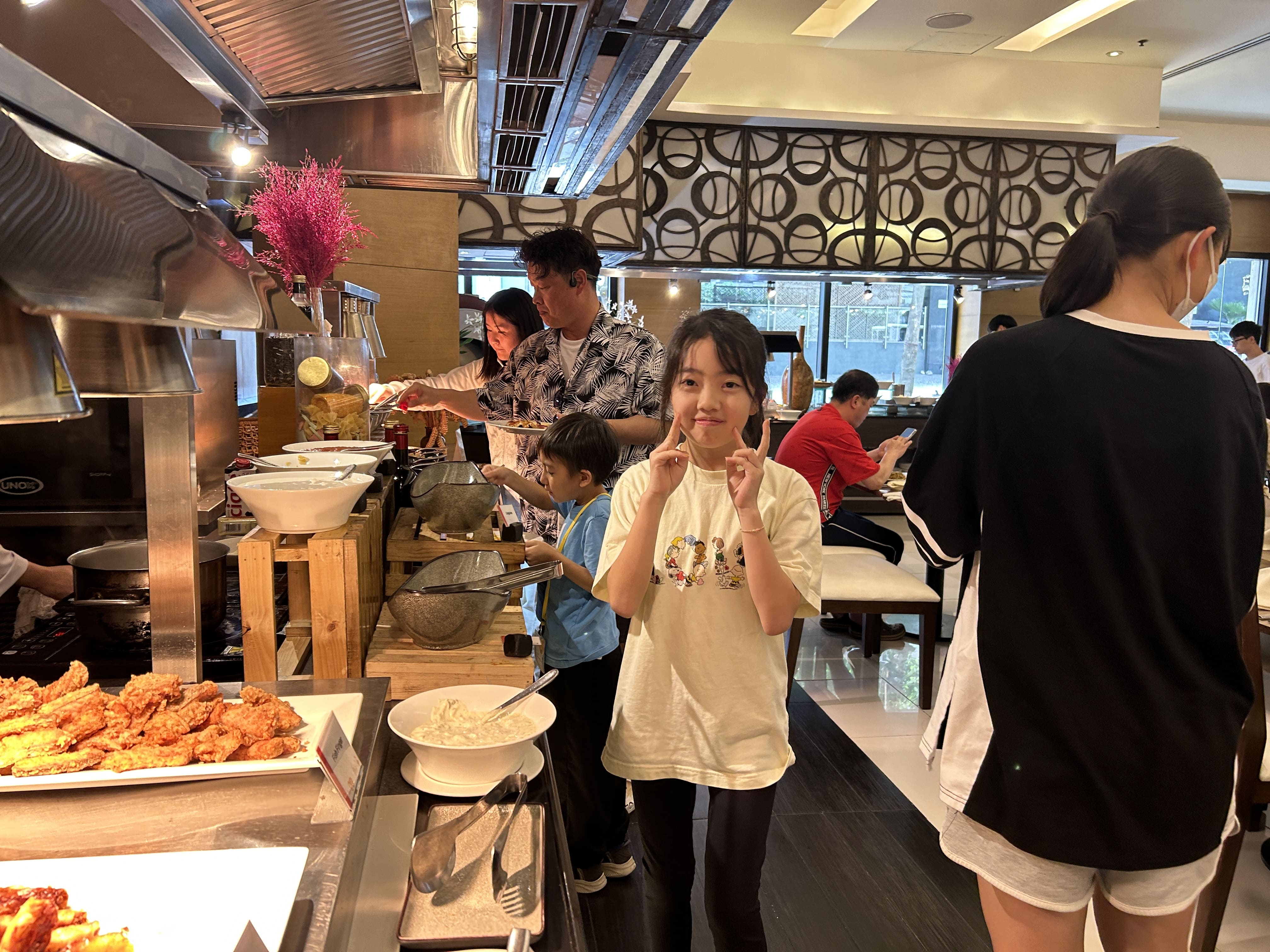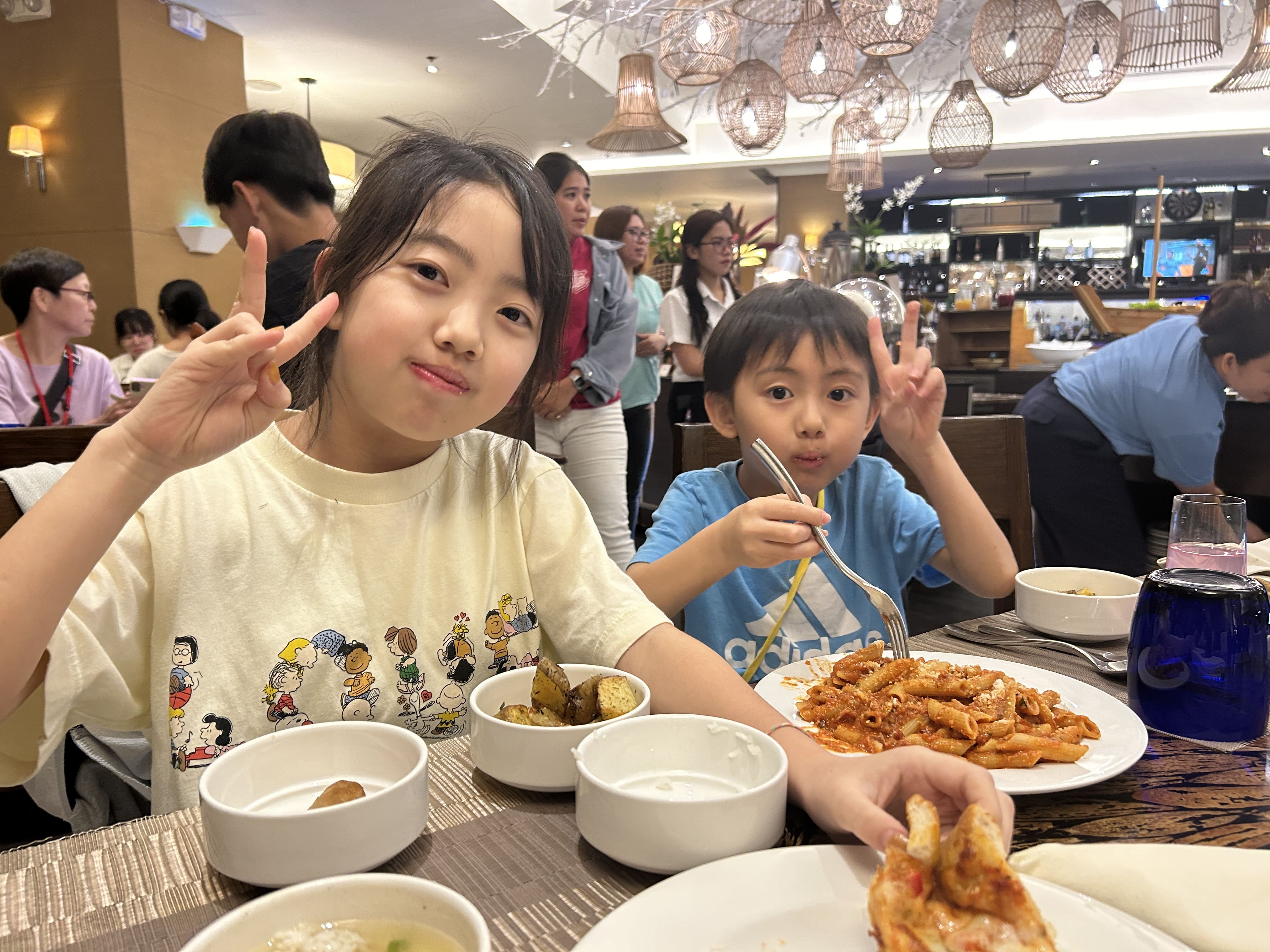 開催ホテル校1Fにあるレストランの豪華ホテルブッフェは、パン、ライス、パスタも種類豊富です。また、小さなお子様が召し上がって頂ける料理の品々も、沢山の中から選べられるので、みんな自分の好きな料理を美味しそうに頬張っています。