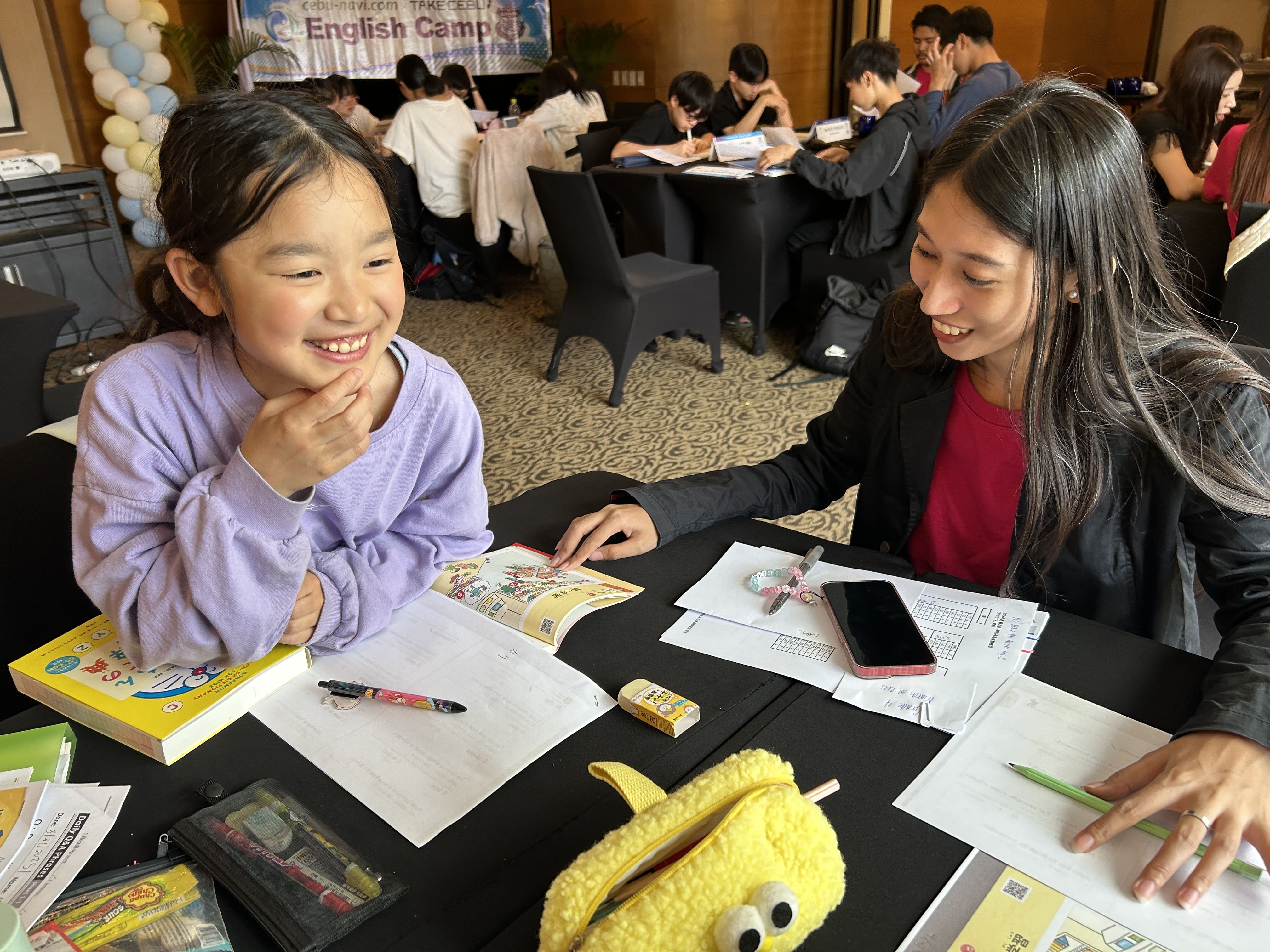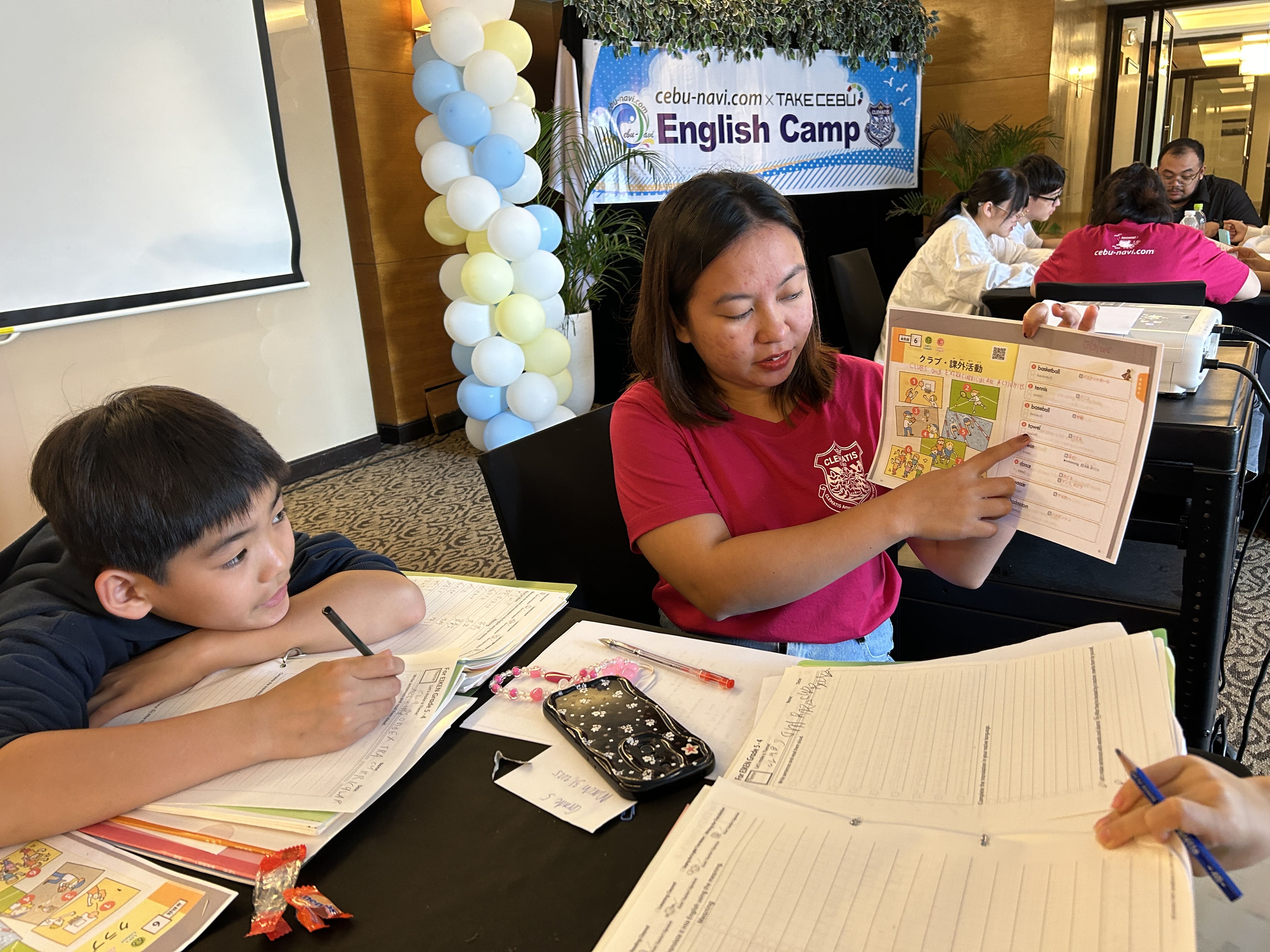 TAKE CEBU校は毎年シーズン毎に、ジュニアキャンプ、親子キャンプを開催しています。今年初めて参加される方も沢山お見えですが、リピーターの方もいらっしゃる人気のプログラムです。学び遊ぶ楽しさを詰め込んだ英語漬けプログラムに、ジュニアも大人も夢中になって毎日10コマをこなされています。