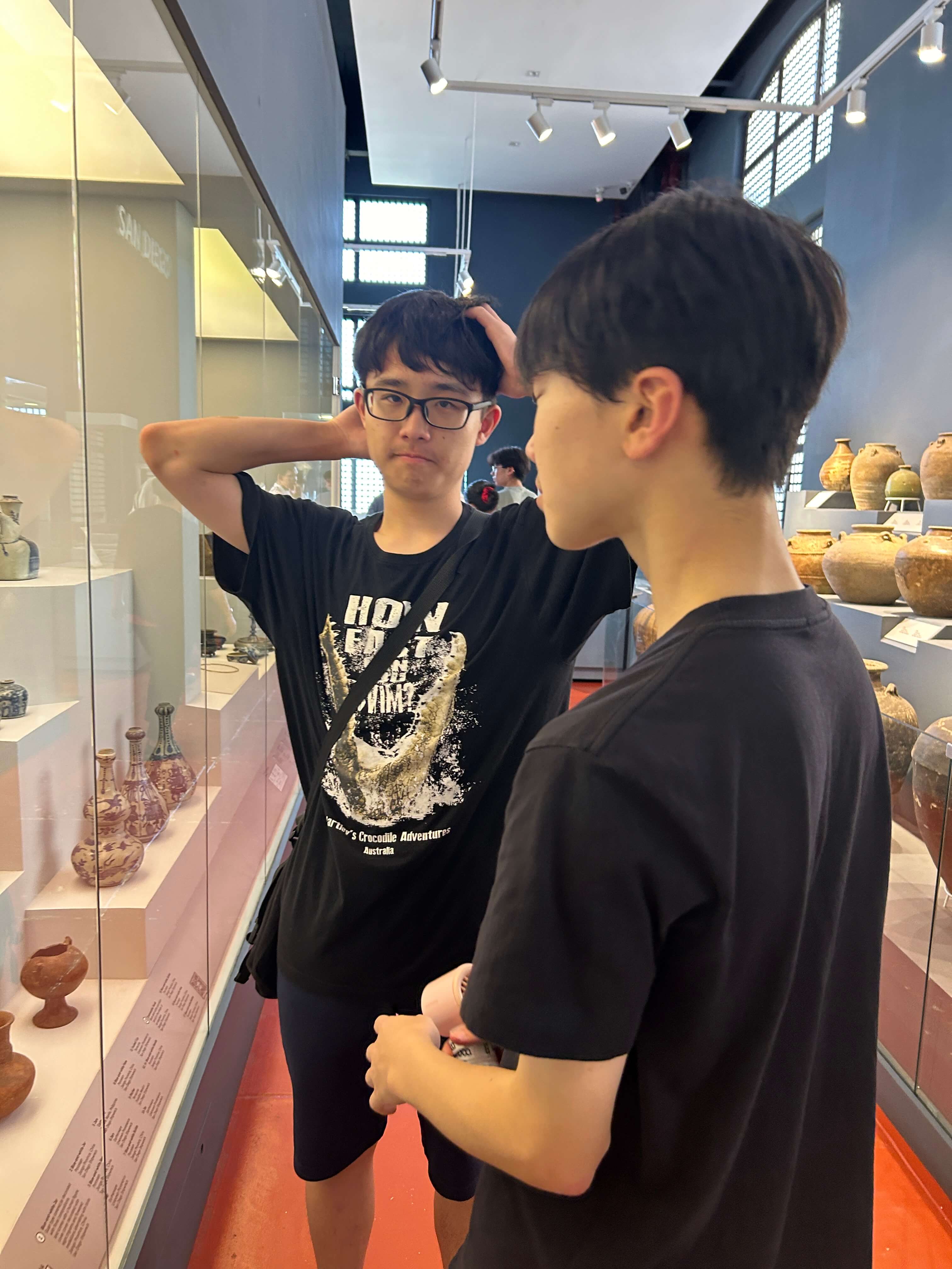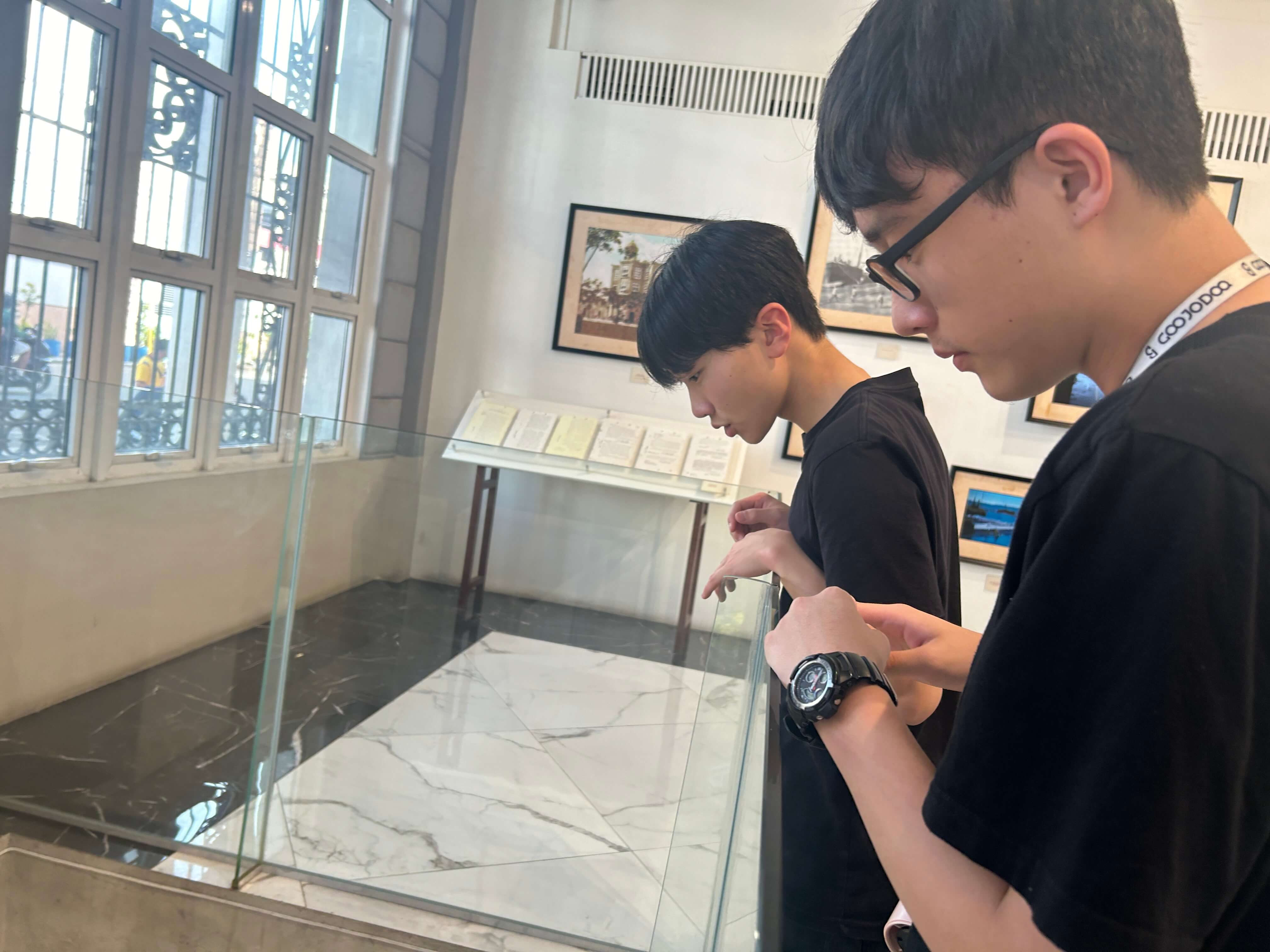 当時の様子がわかる写真やジオラマ、また中国の伝統工芸品などが展示されていて、学生たちも興味深く見入っていました。