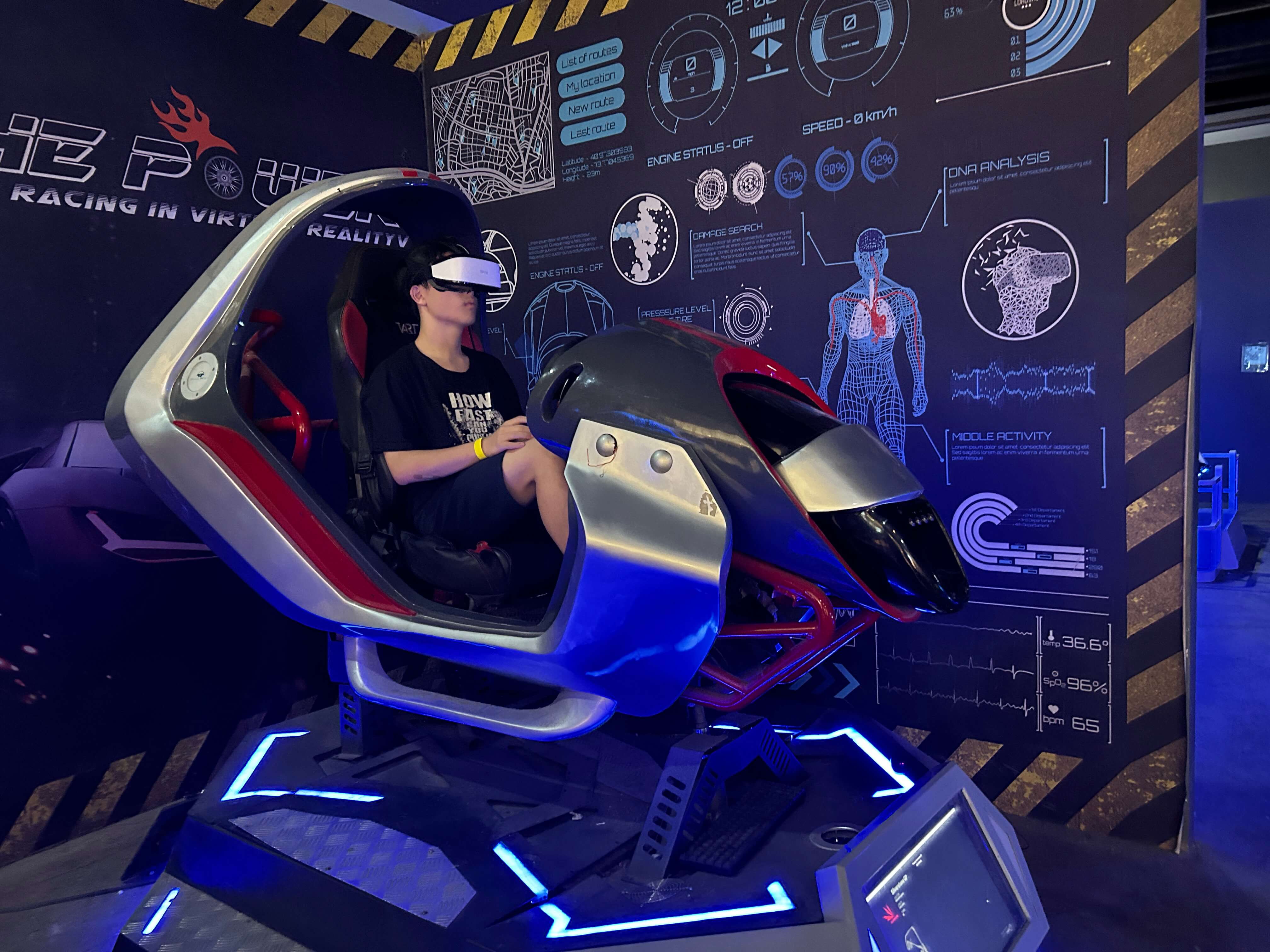 少し小高い敷地内からはセブの絶景が見渡せました♪右写真は、ゲームセンターで近未来的ライドを楽しむ様子です。