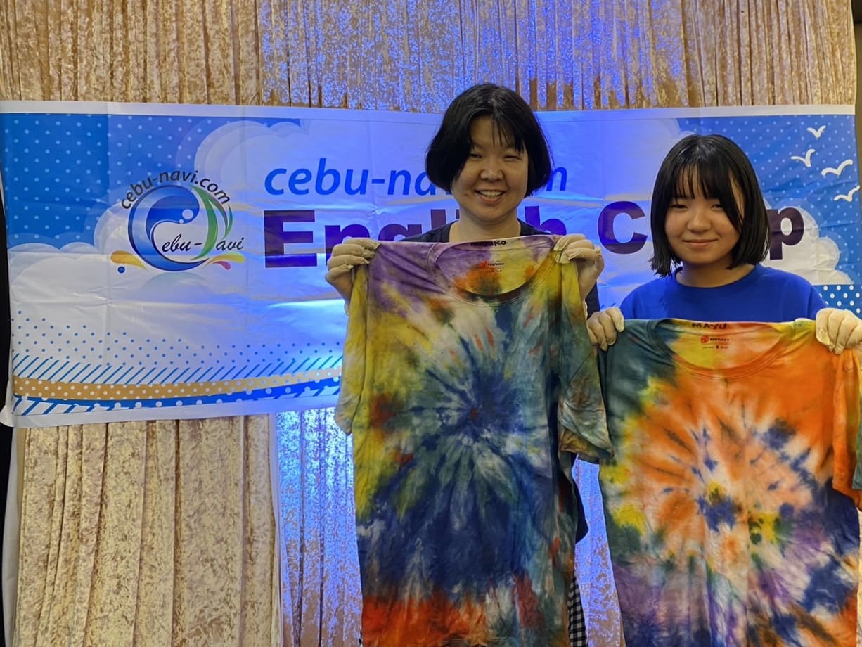 みんなの前で英語で自己紹介、初日恒例のTシャツ染め体験にチャレンジして頂きました。