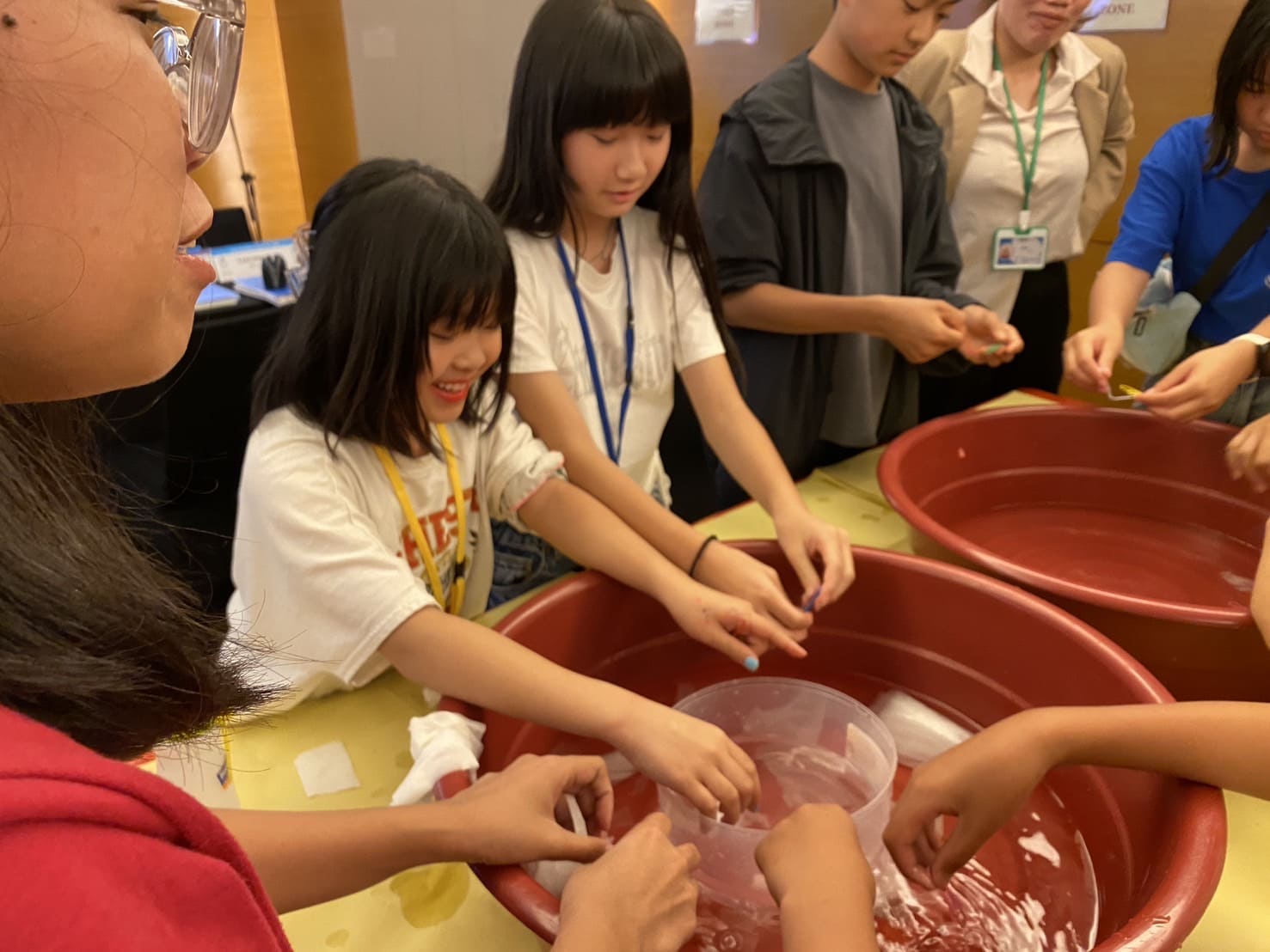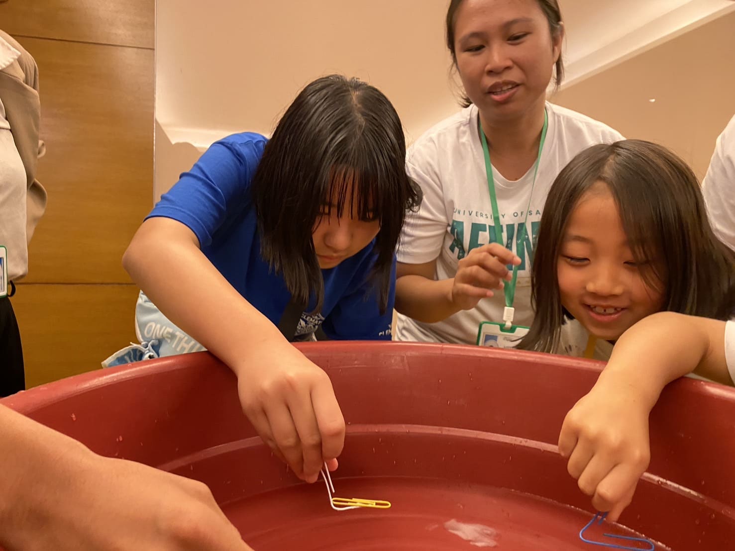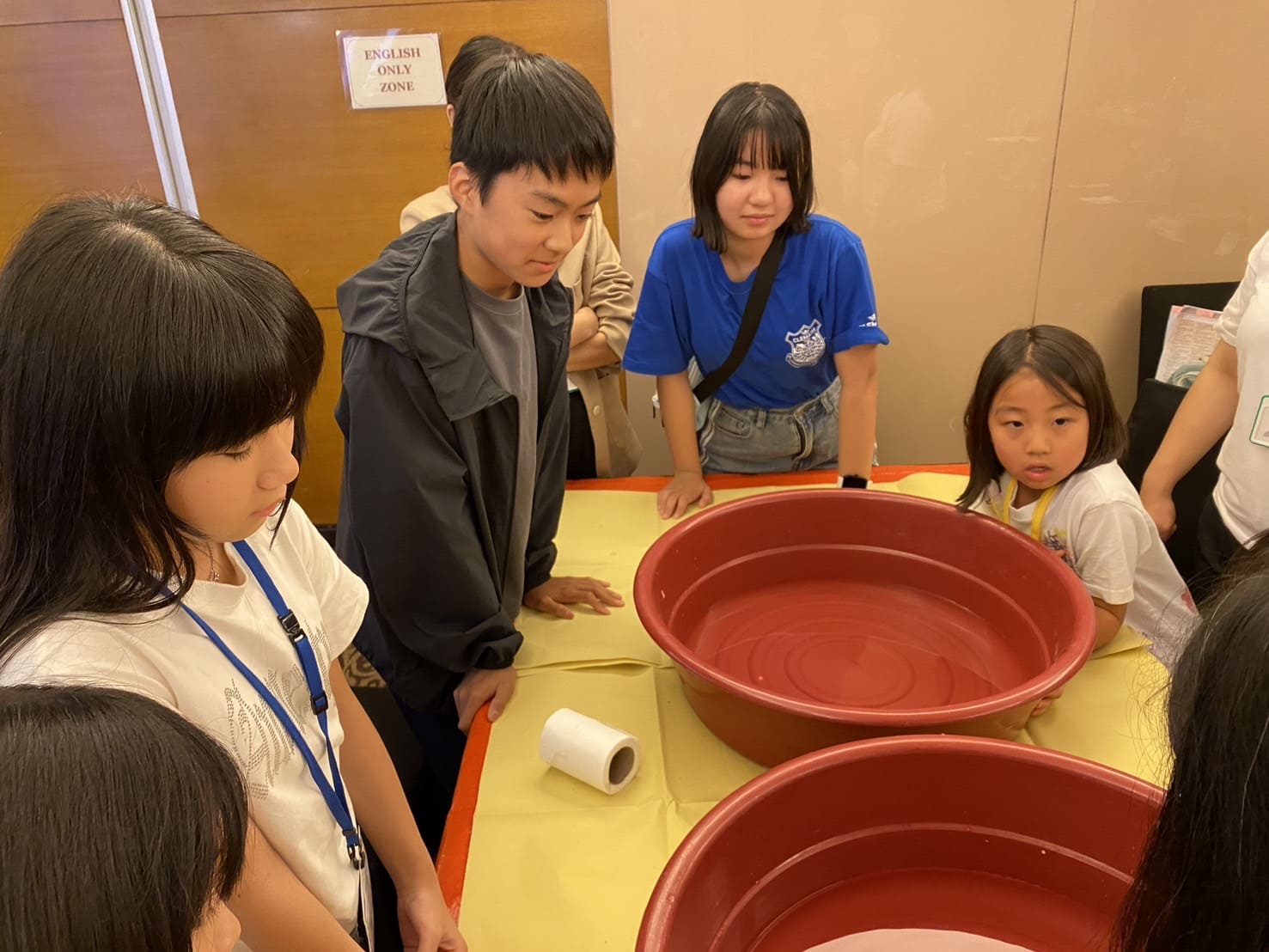 表面張力は身近な現象ですが、ちょっと不思議な感覚もあり、子どもたちからは「なんで!?」と疑問が飛び交っていましたが、皆さんの探究心で実験を進めていくにつれ「わかった!」「すごい!」といった声がたくさん聞こえてきました。