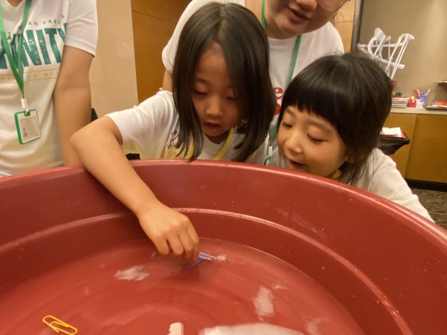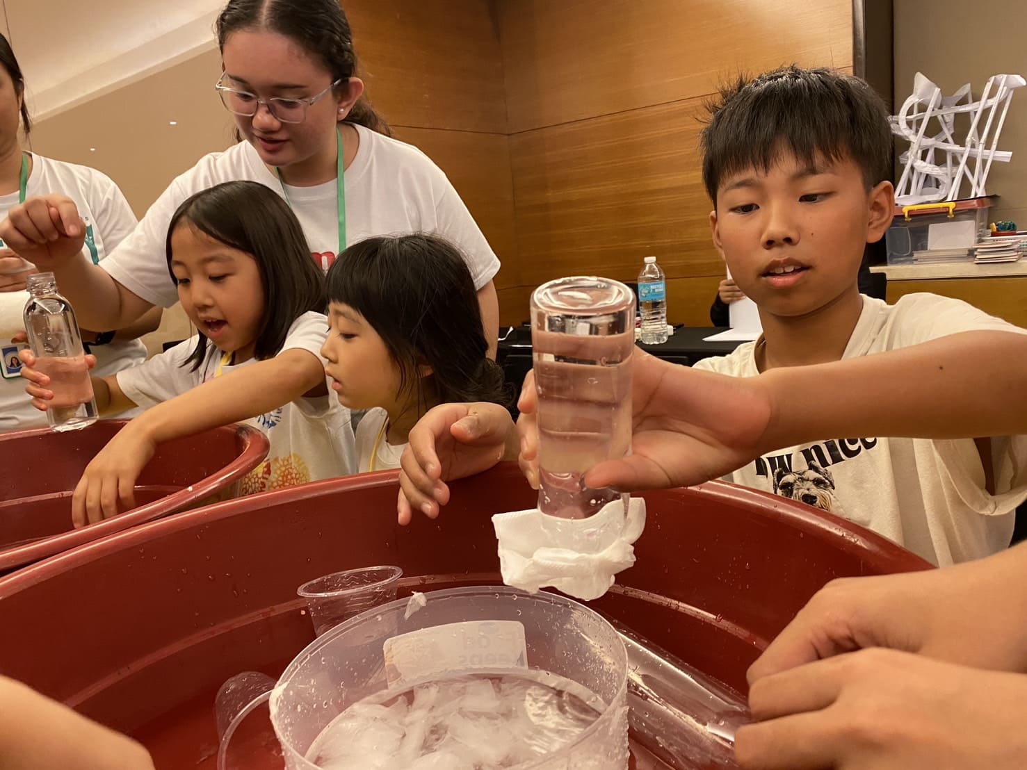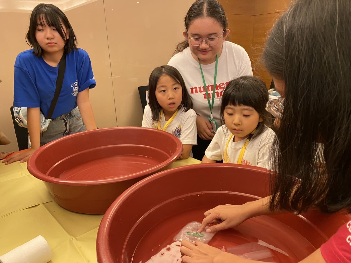 表面張力は身近な現象ですが、ちょっと不思議な感覚もあり、子どもたちからは「なんで!?」と疑問が飛び交っていましたが、皆さんの探究心で実験を進めていくにつれ「わかった!」「すごい!」といった声がたくさん聞こえてきました。
