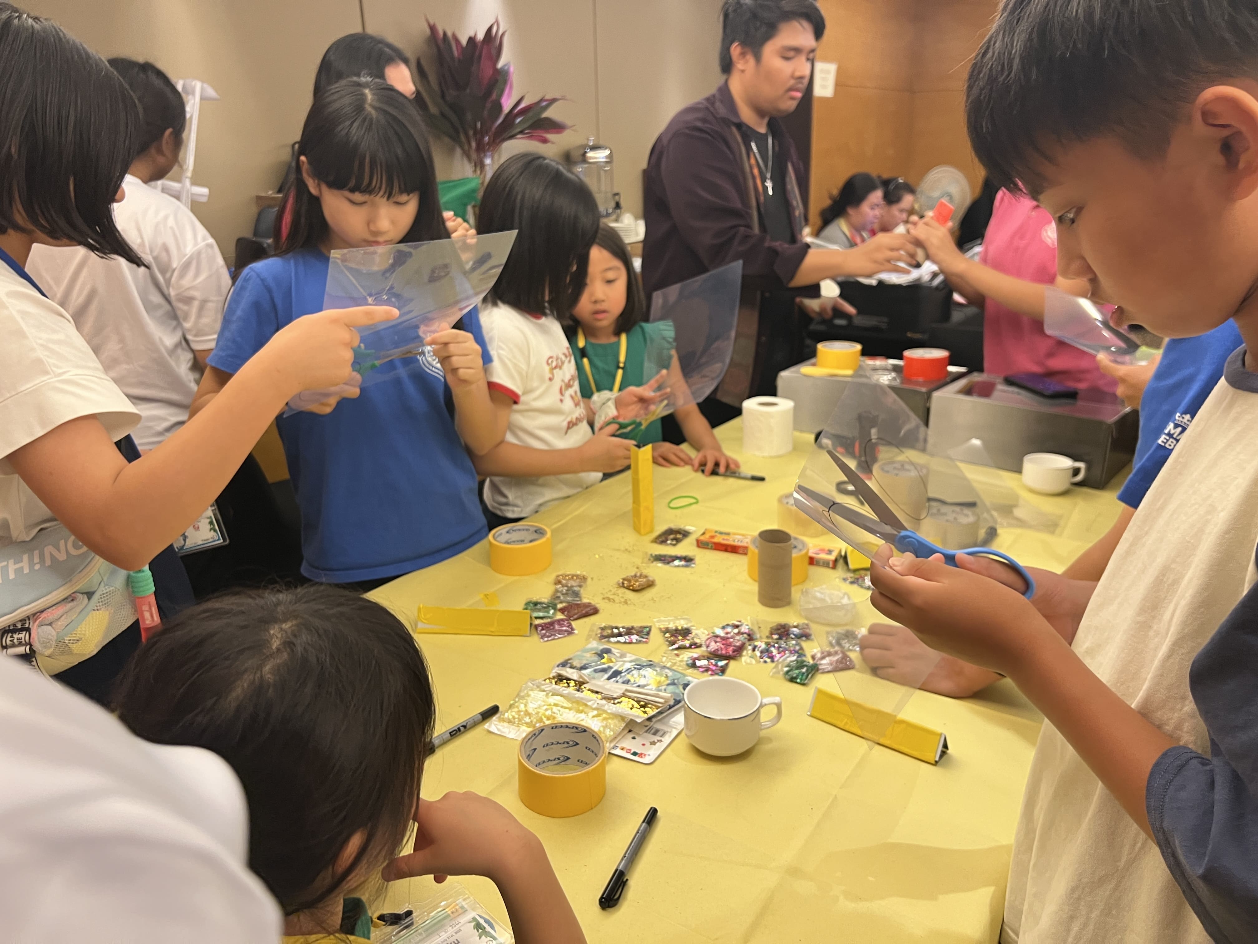 光の強さや角度による見え方の変化も実際に体感でき、「キラキラ光が反射してきれい」、「万華鏡の仕組みが分かった」など、感動で溢れていました。