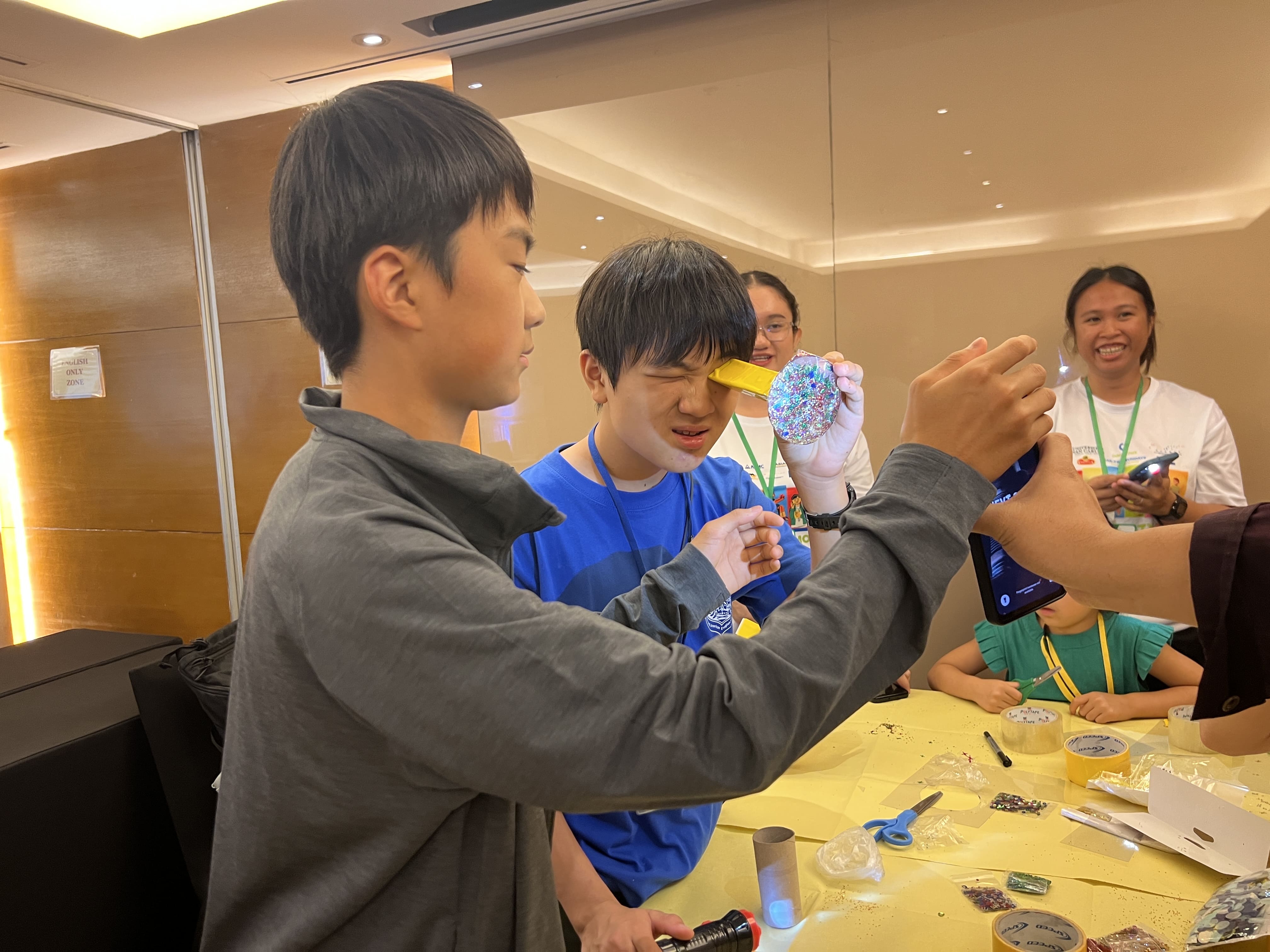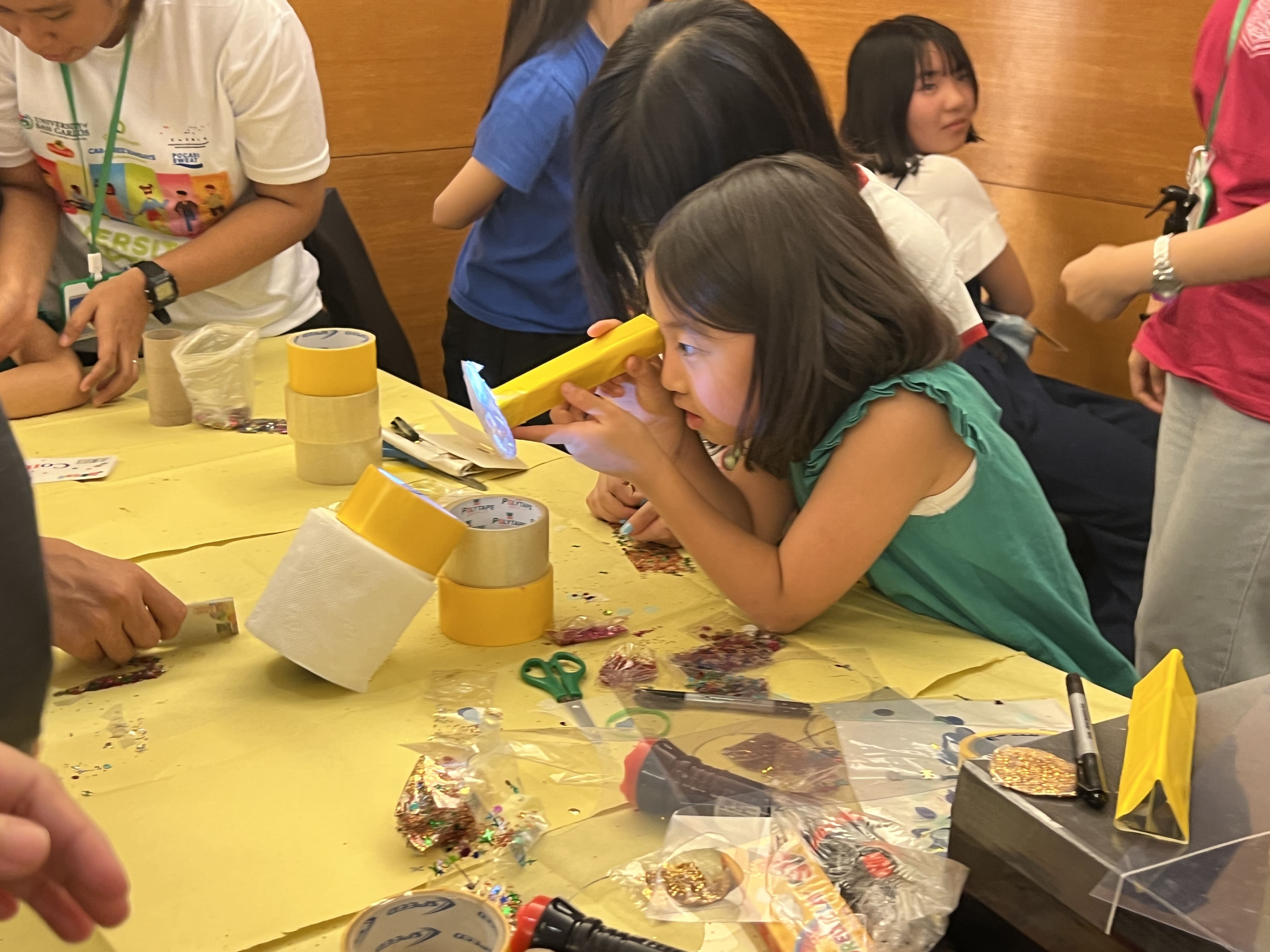 光の反射と色の不思議を学びながら、自作の装置で幻想的な映像を映す体験を通じて、子どもたちの好奇心や探究心を掻き立てます。