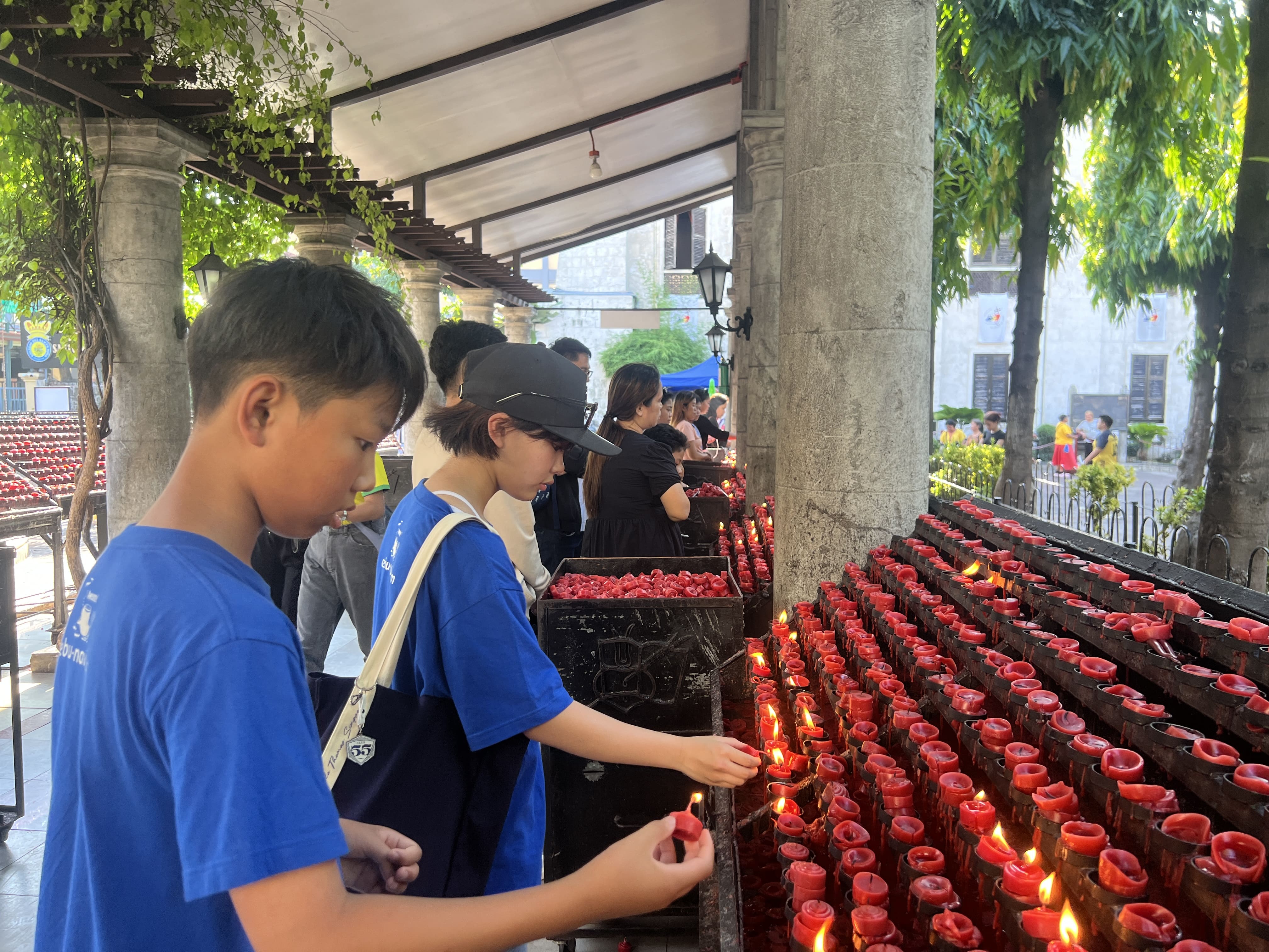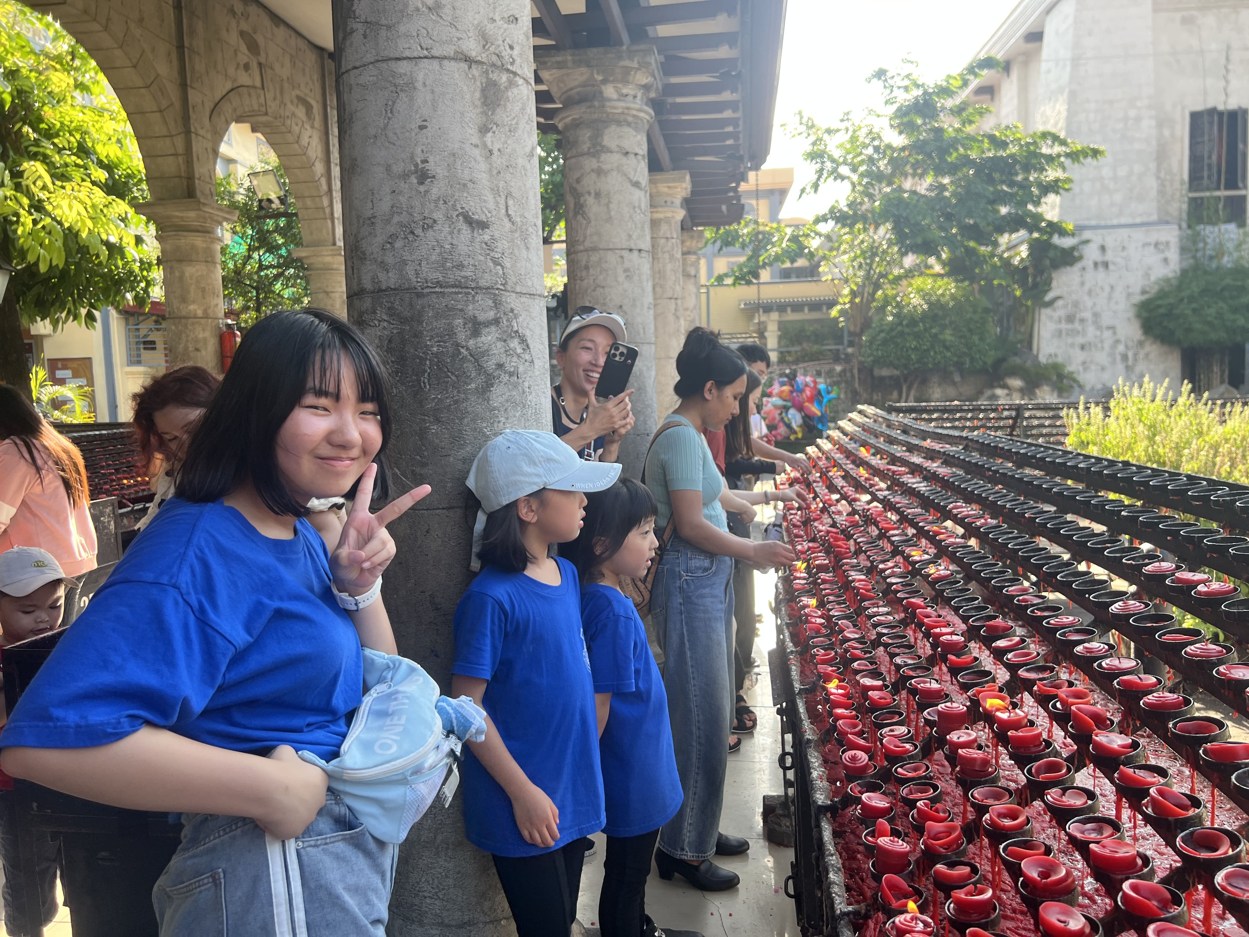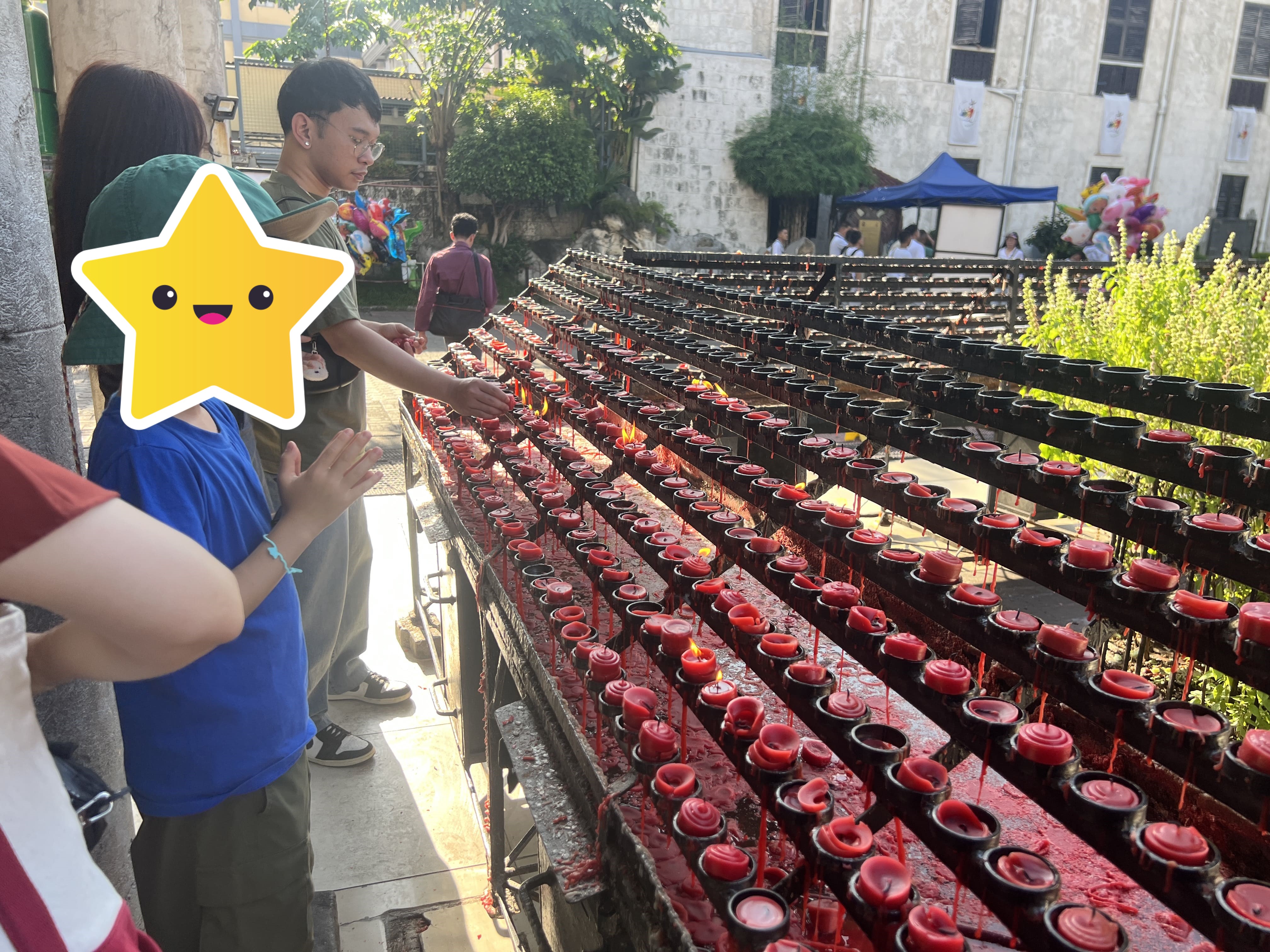 誕生日や大切なイベント、大きな願い事をする時に行う「キャンドルを灯した願い事体験」にもトライ。本来は祈りたい人の数だけキャンドルに火を灯すとか。料金箱があるので、自分の気持ち分だけお金を入れる、日本でいうお賽銭のような感じです(目安は1本1php ※30円)。