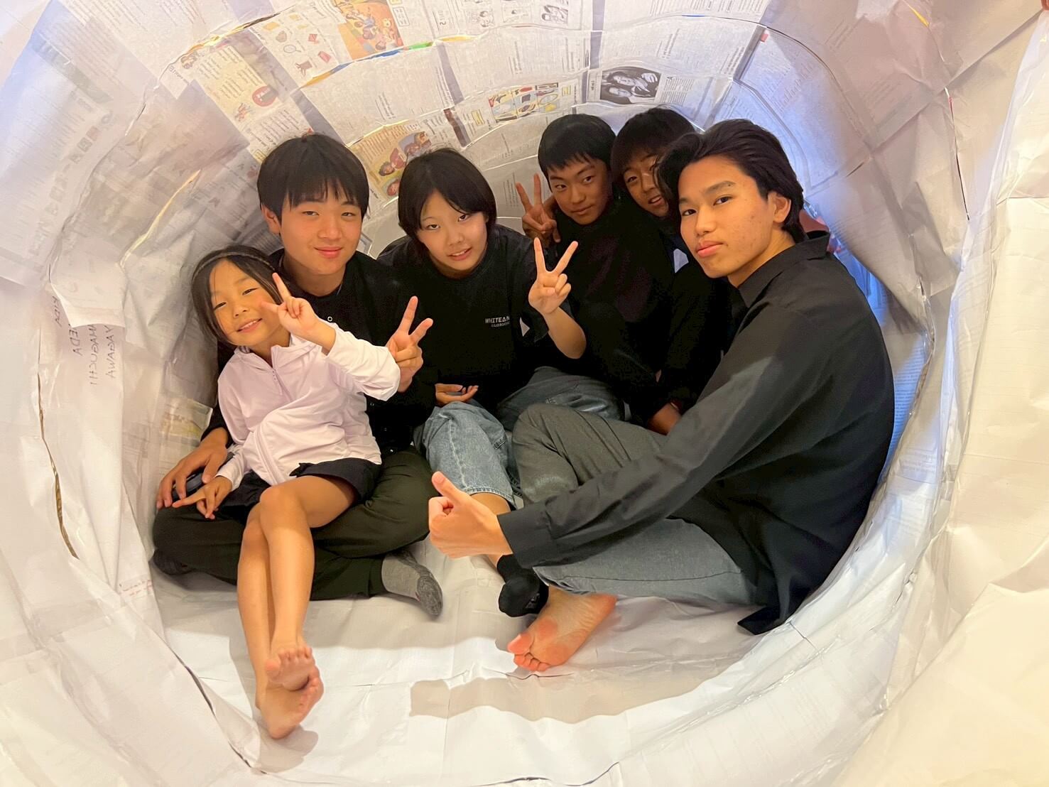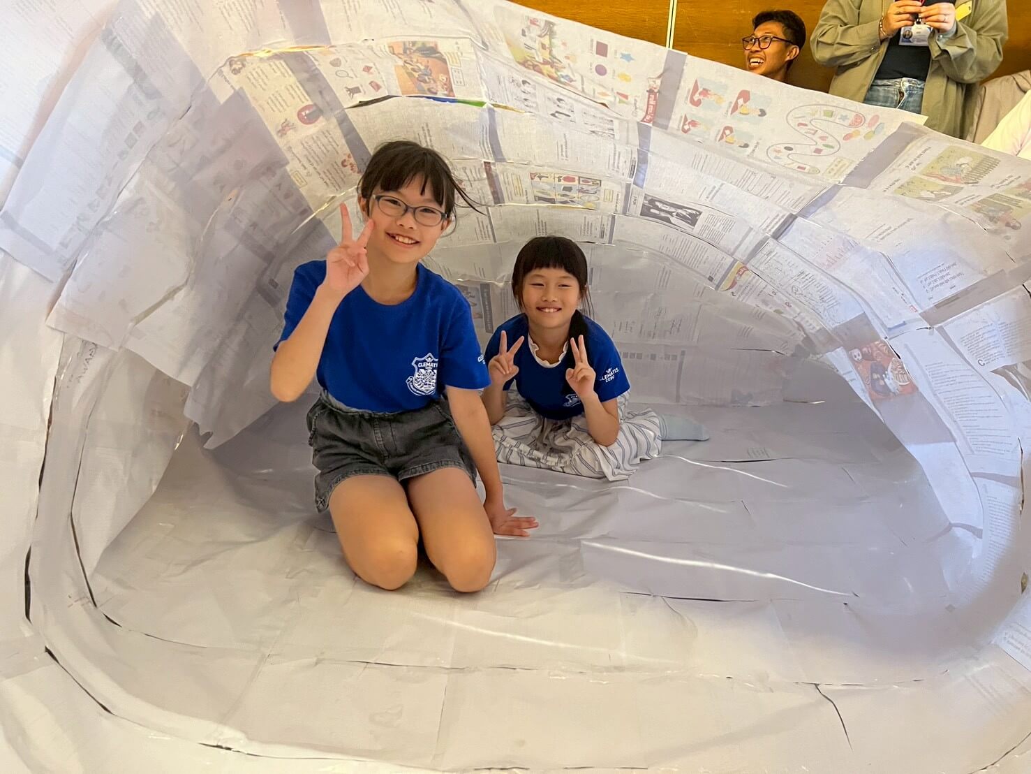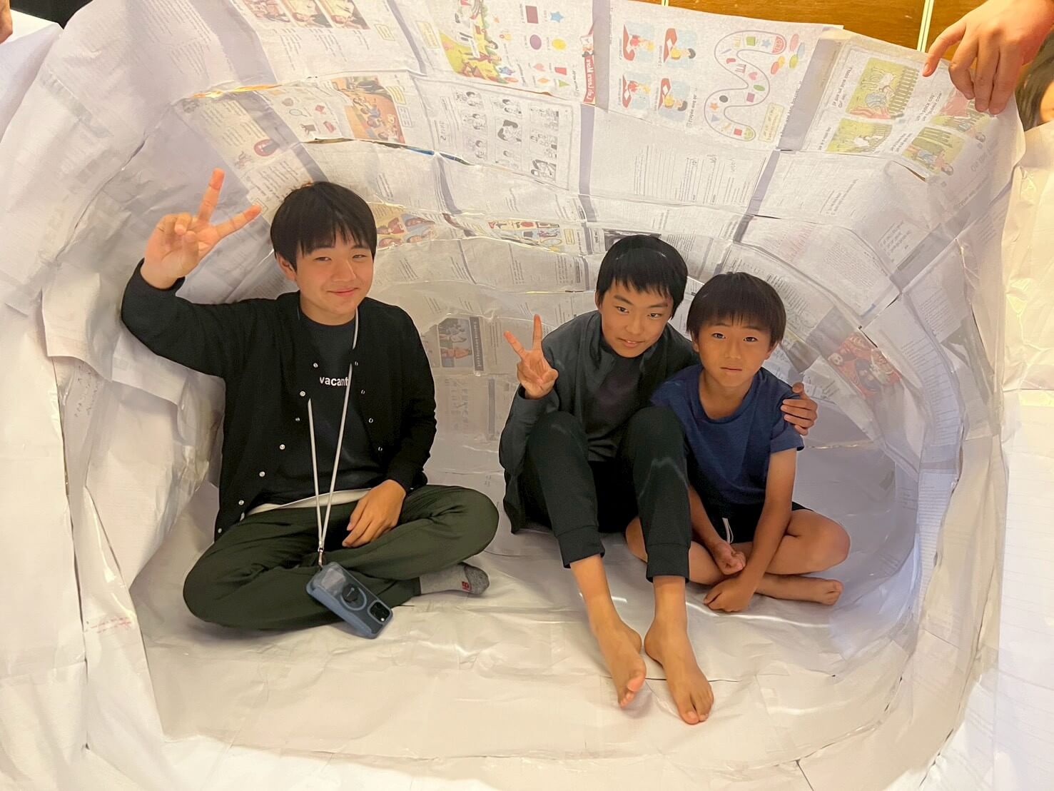 空気が漏れないよう、新聞紙をしっかりと貼り合わせていきます。