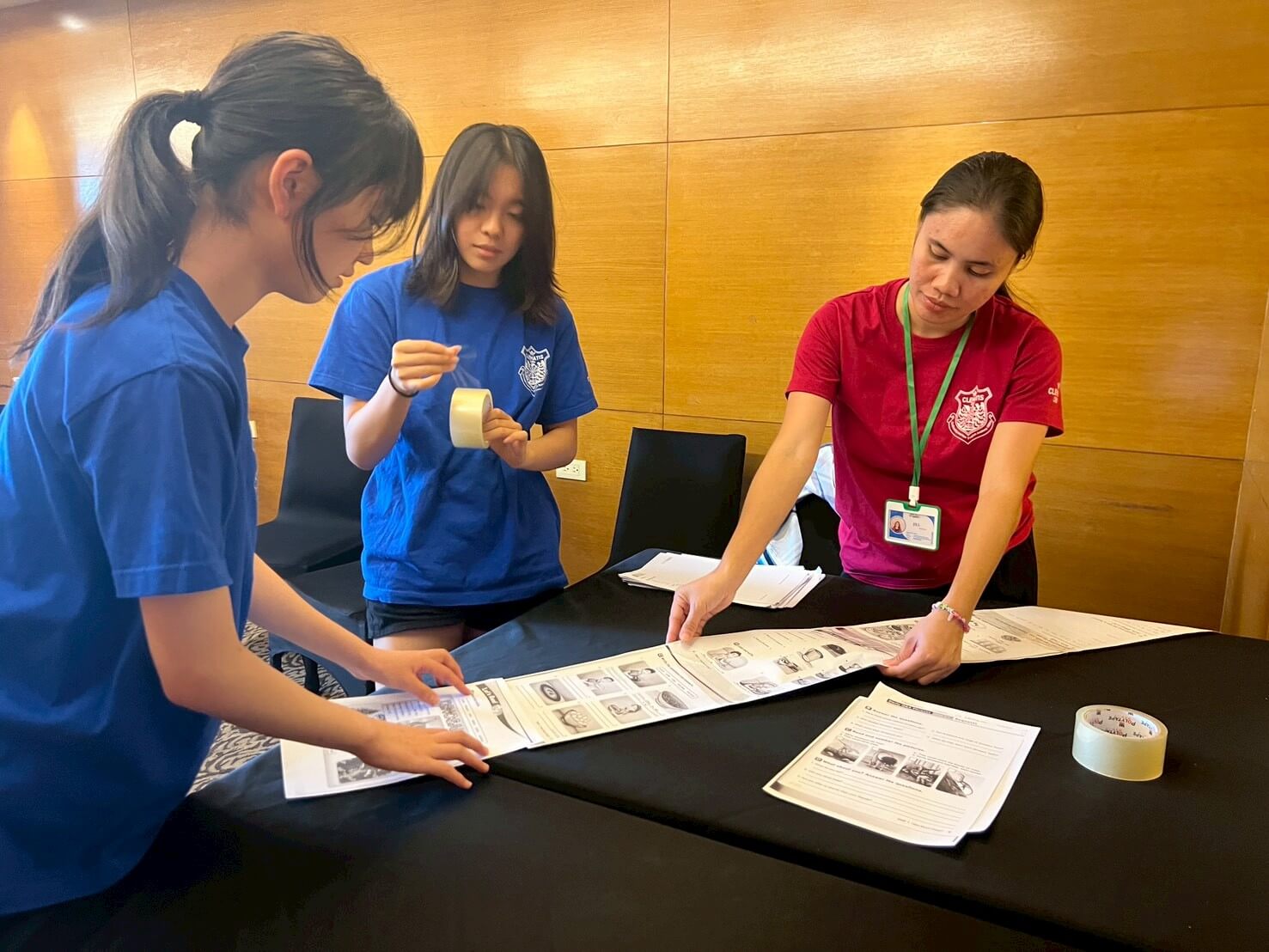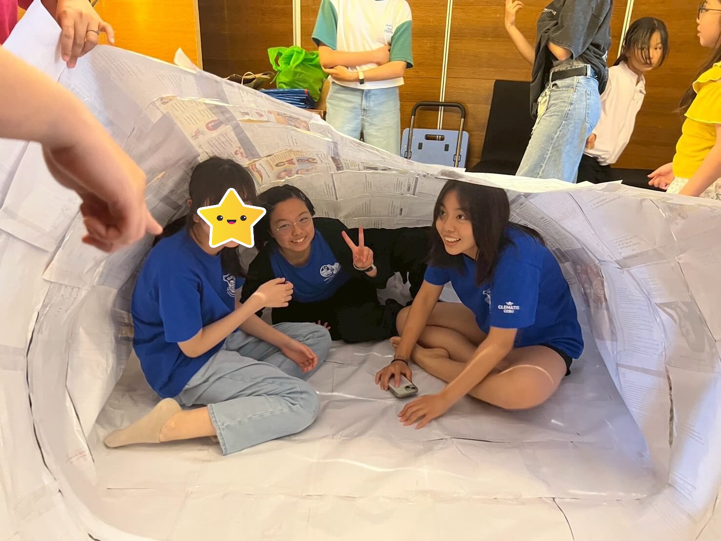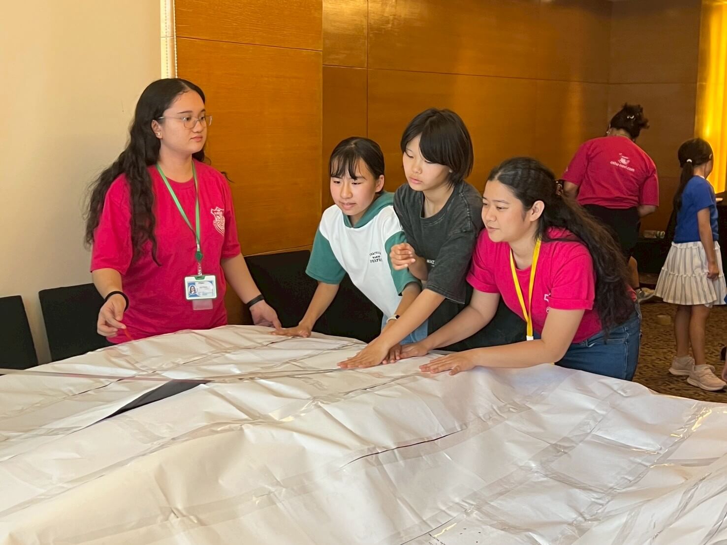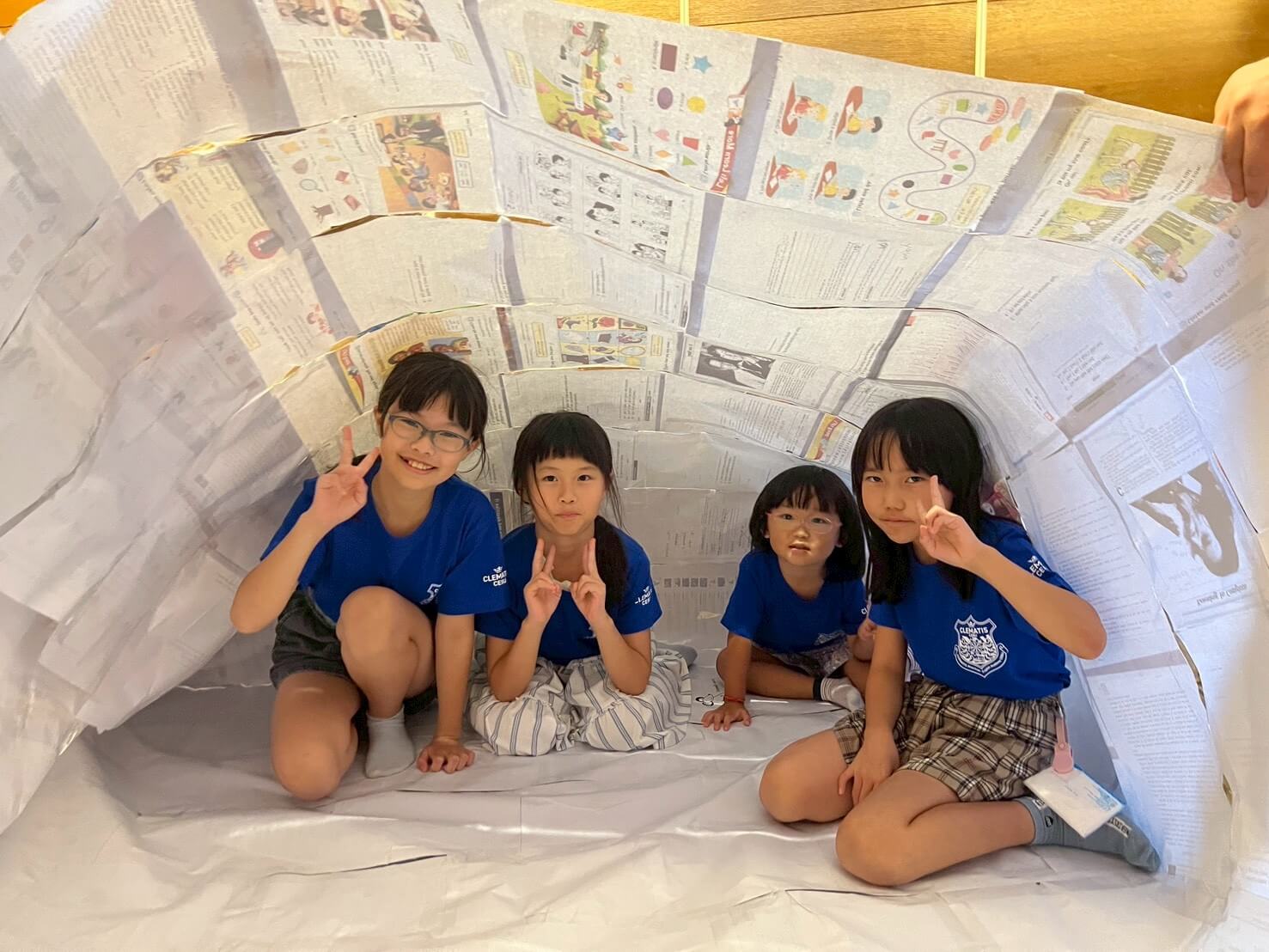 空気が漏れないよう、新聞紙をしっかりと貼り合わせていきます。