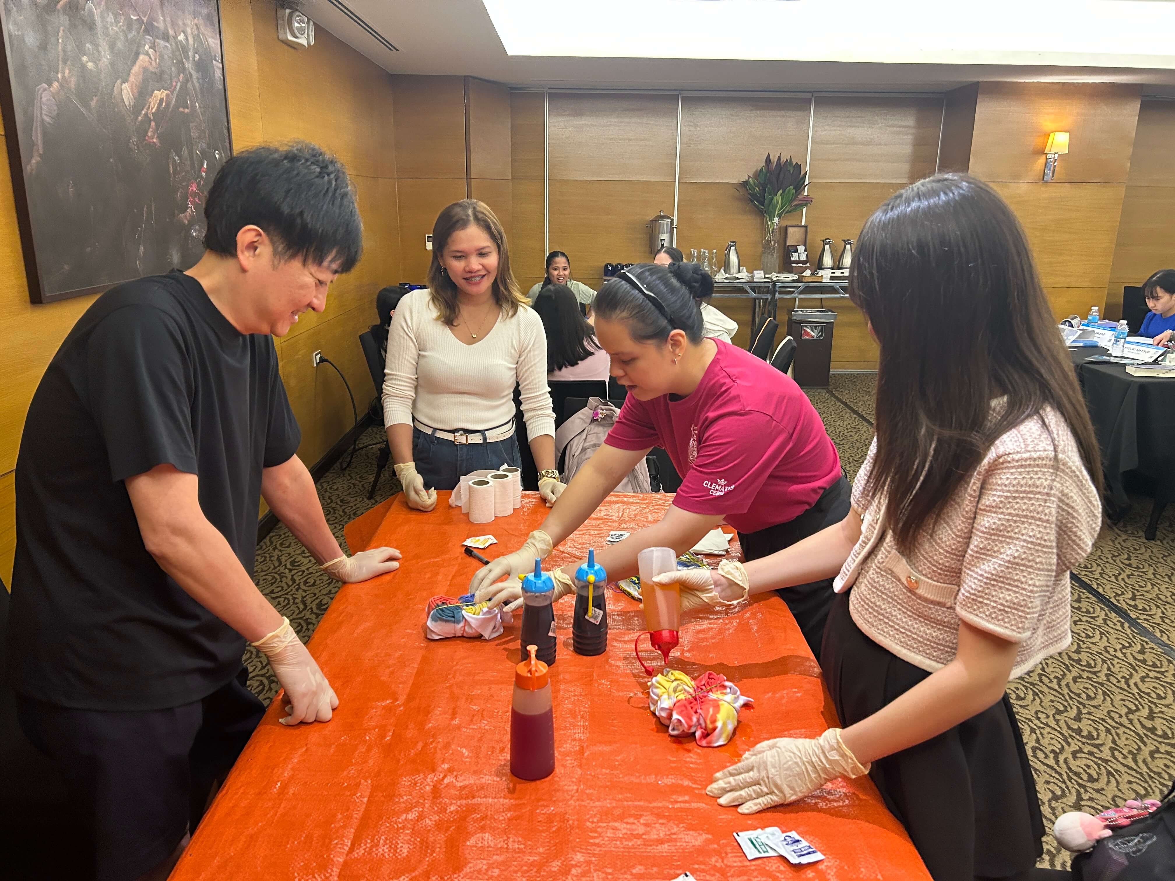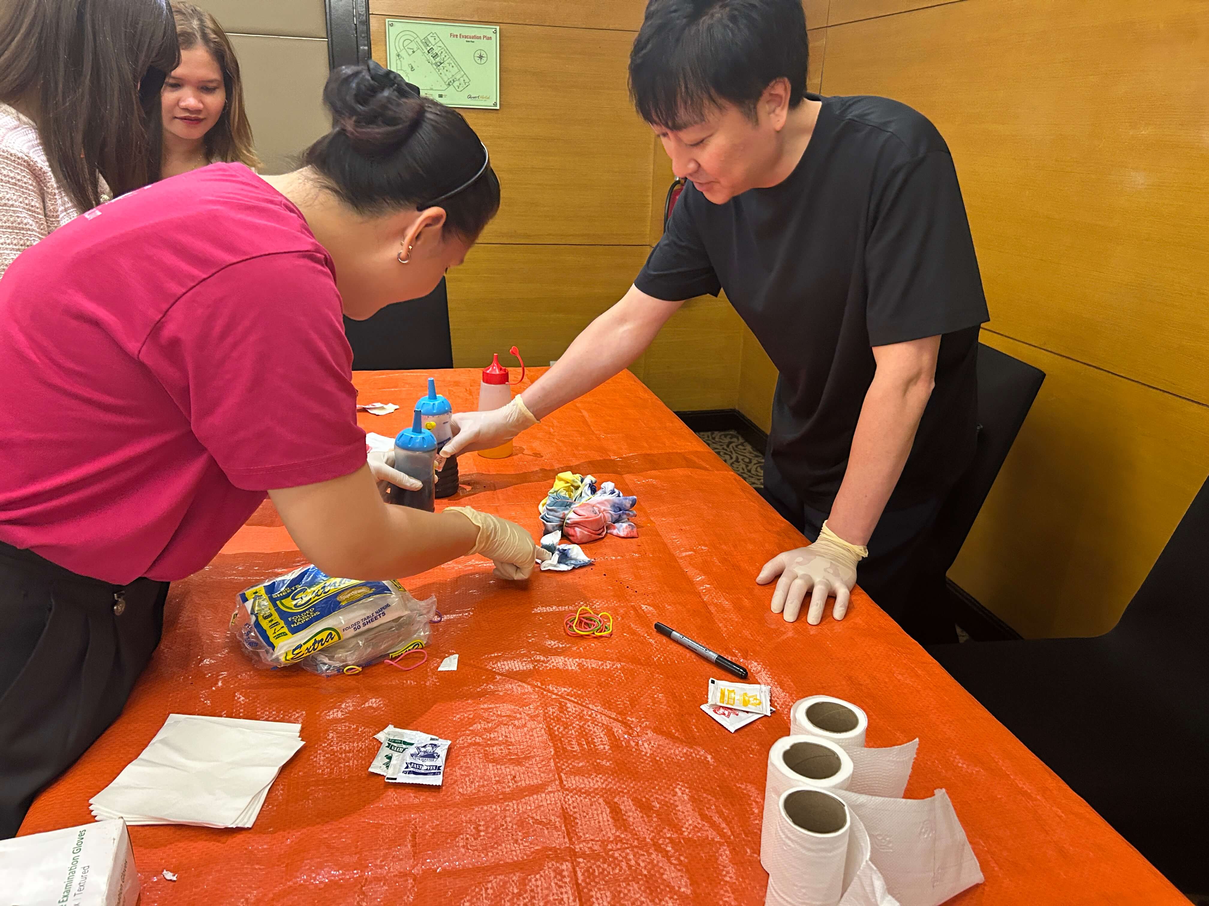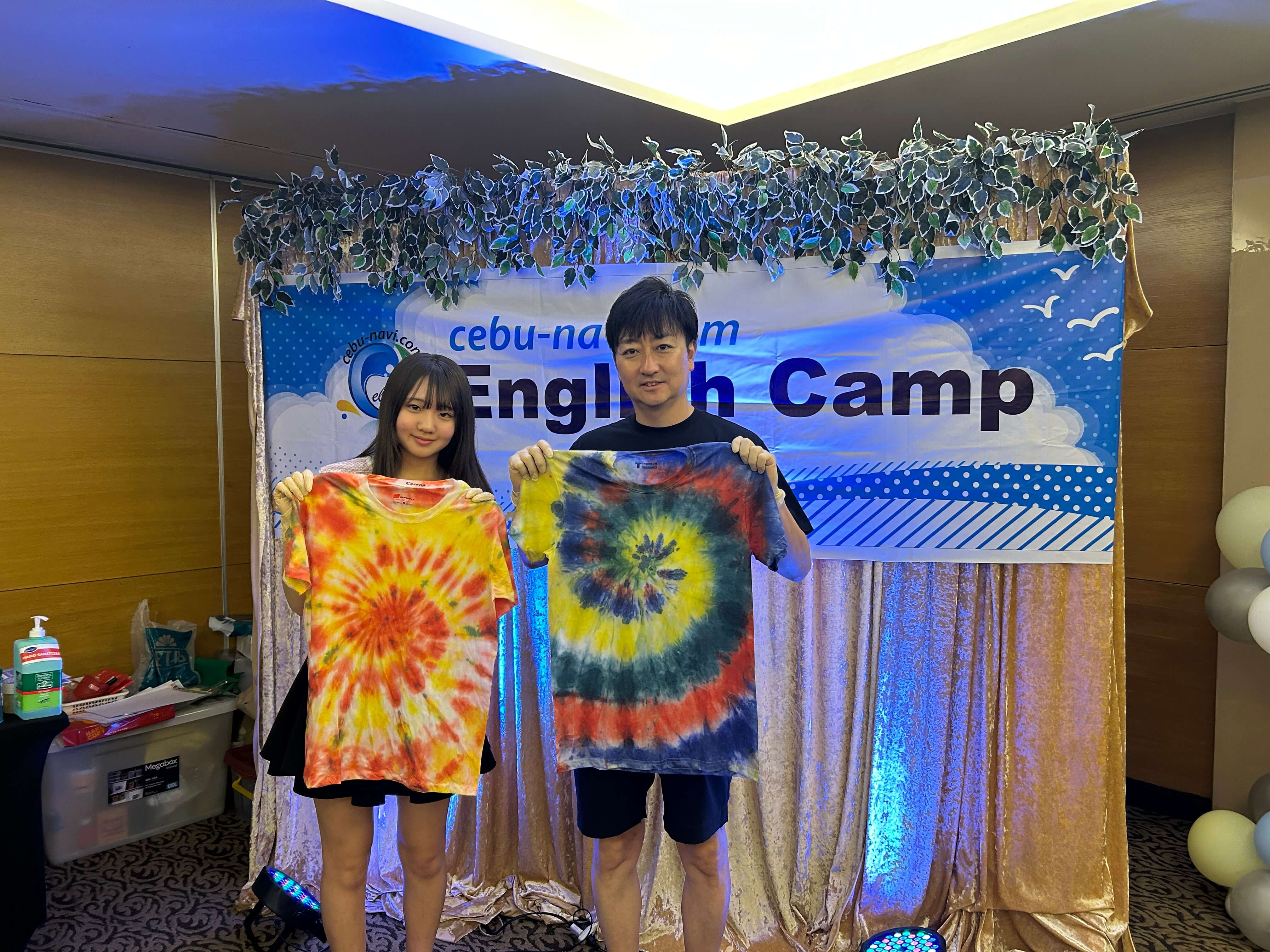 ☆本日、英語漬け親子キャンプに入学されたお二人に、まずは「タイダイTシャツ染め体験」にチャレンジしていただきました。