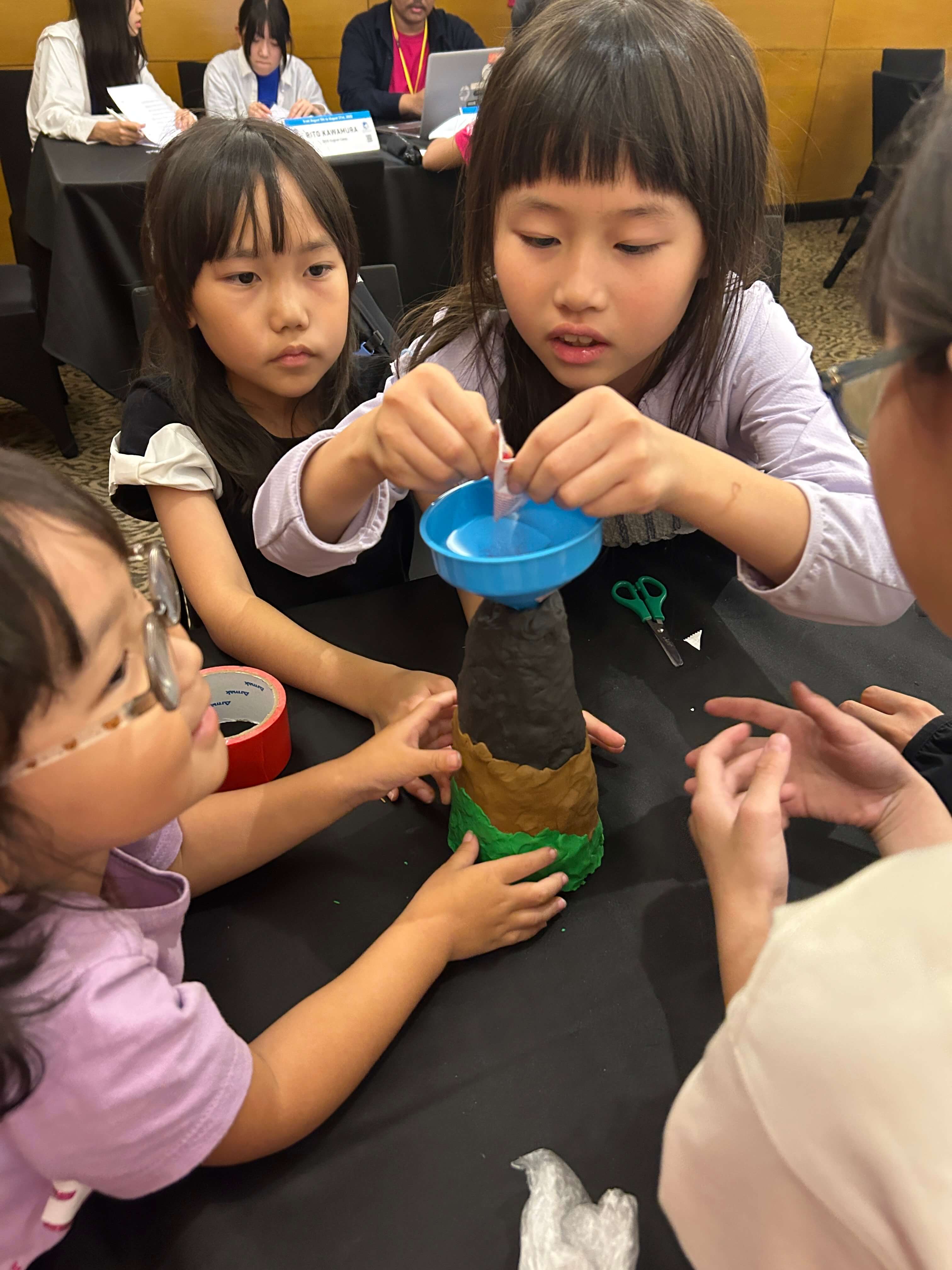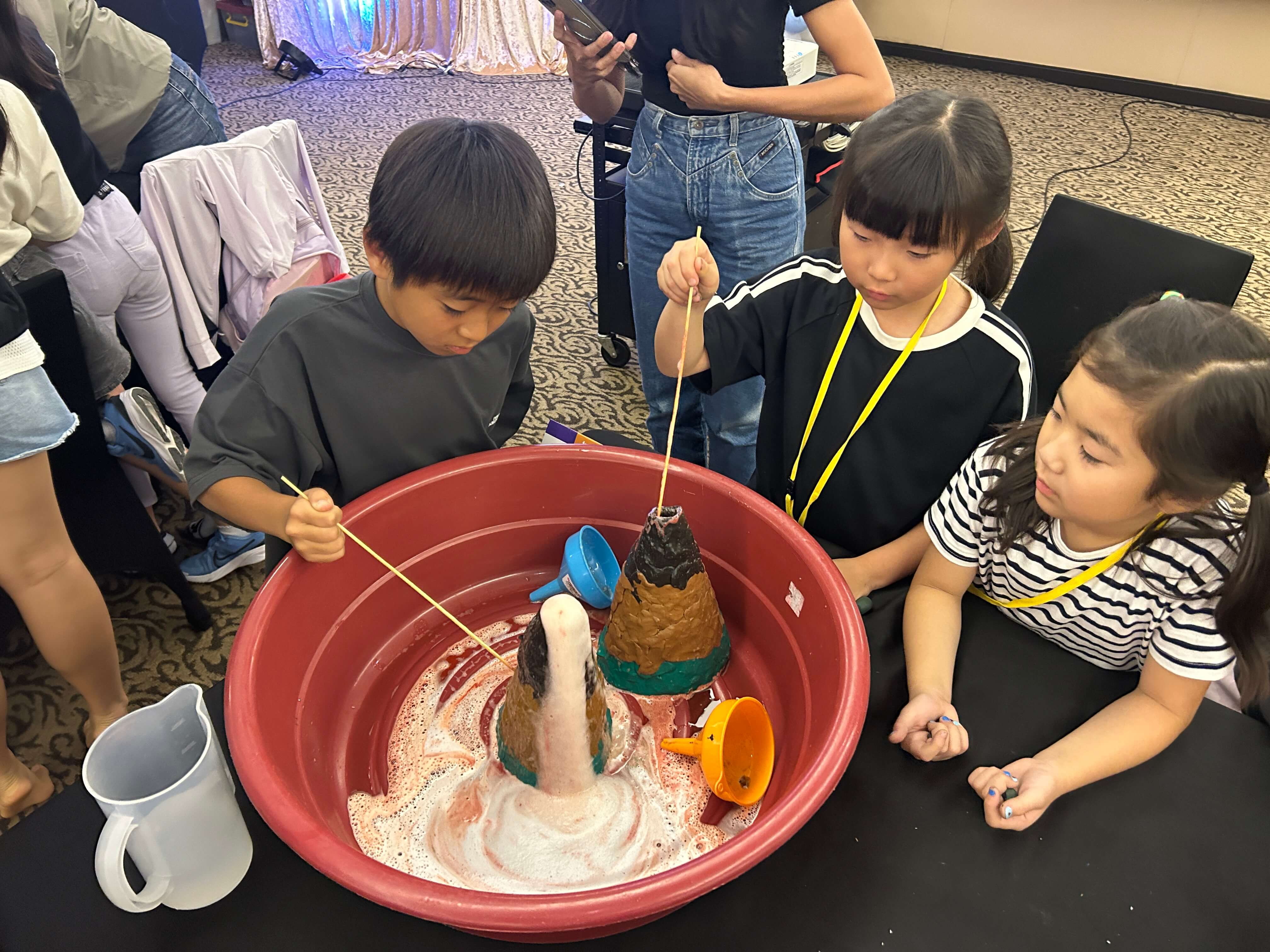 会場は歓声に包まれ、子ども達は「わぁ楽しい!」「もっと噴火させてみたい!」と好奇心に火がついた様子でした。