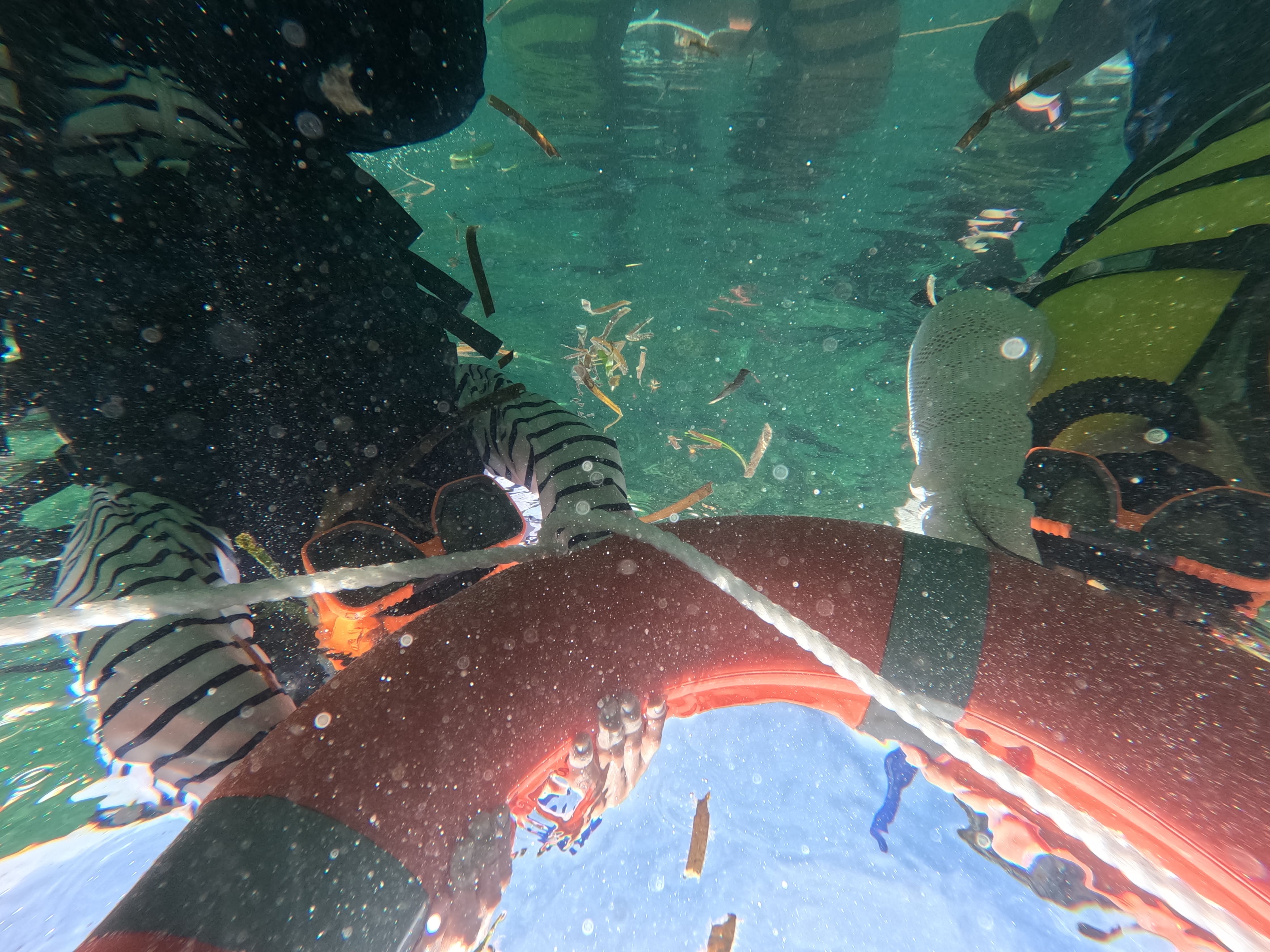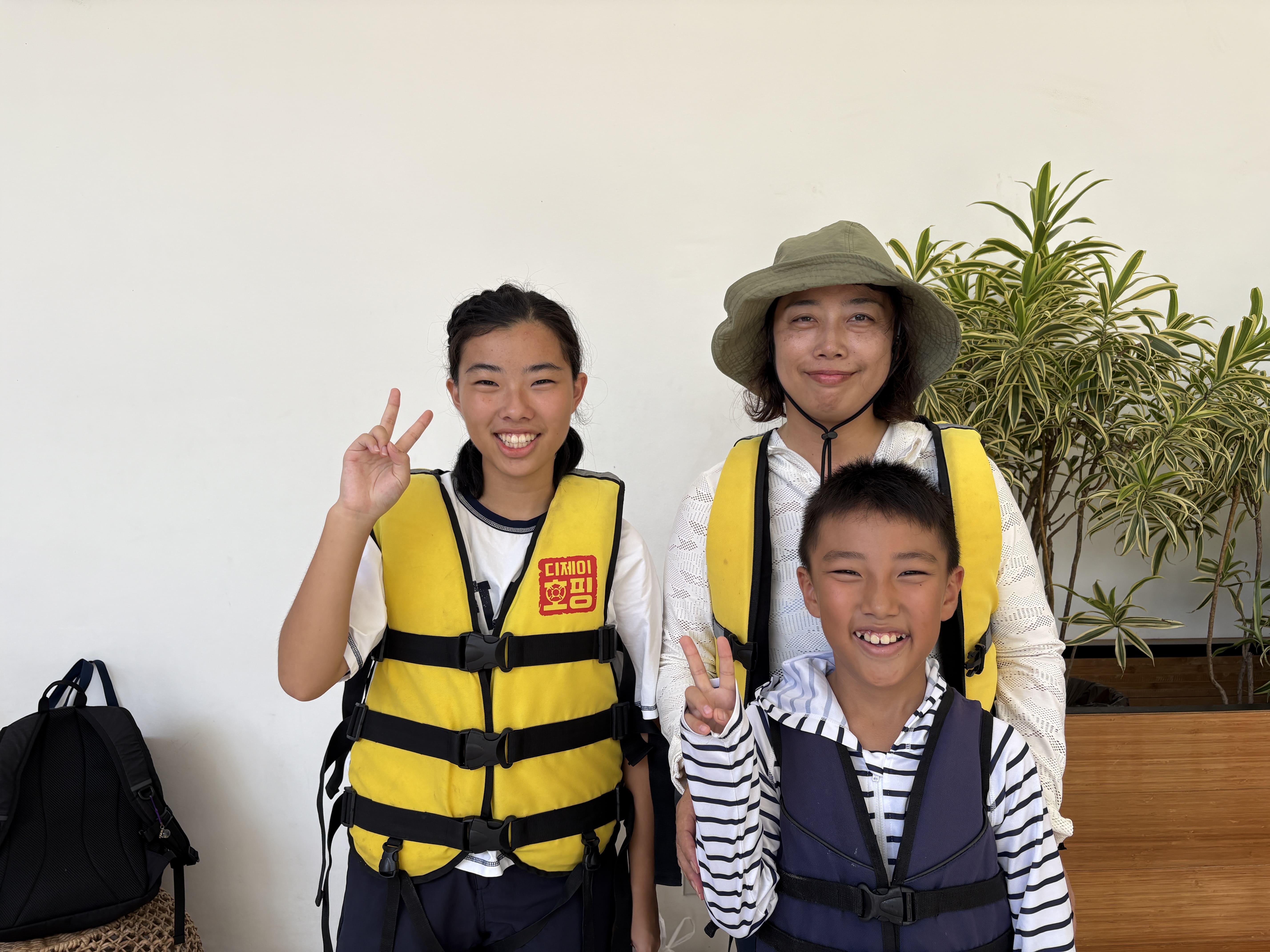 ライフジャケットとマスクをつけて、いざ海の中へ。