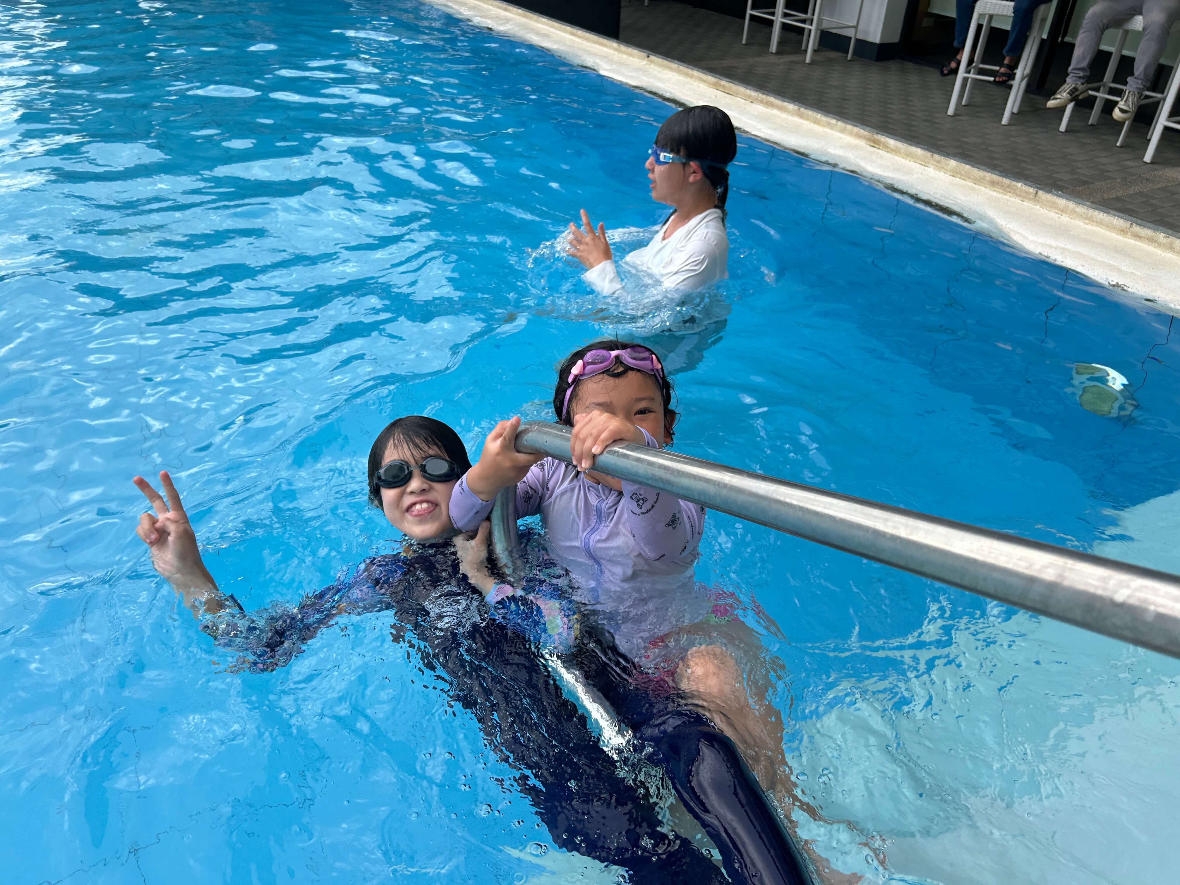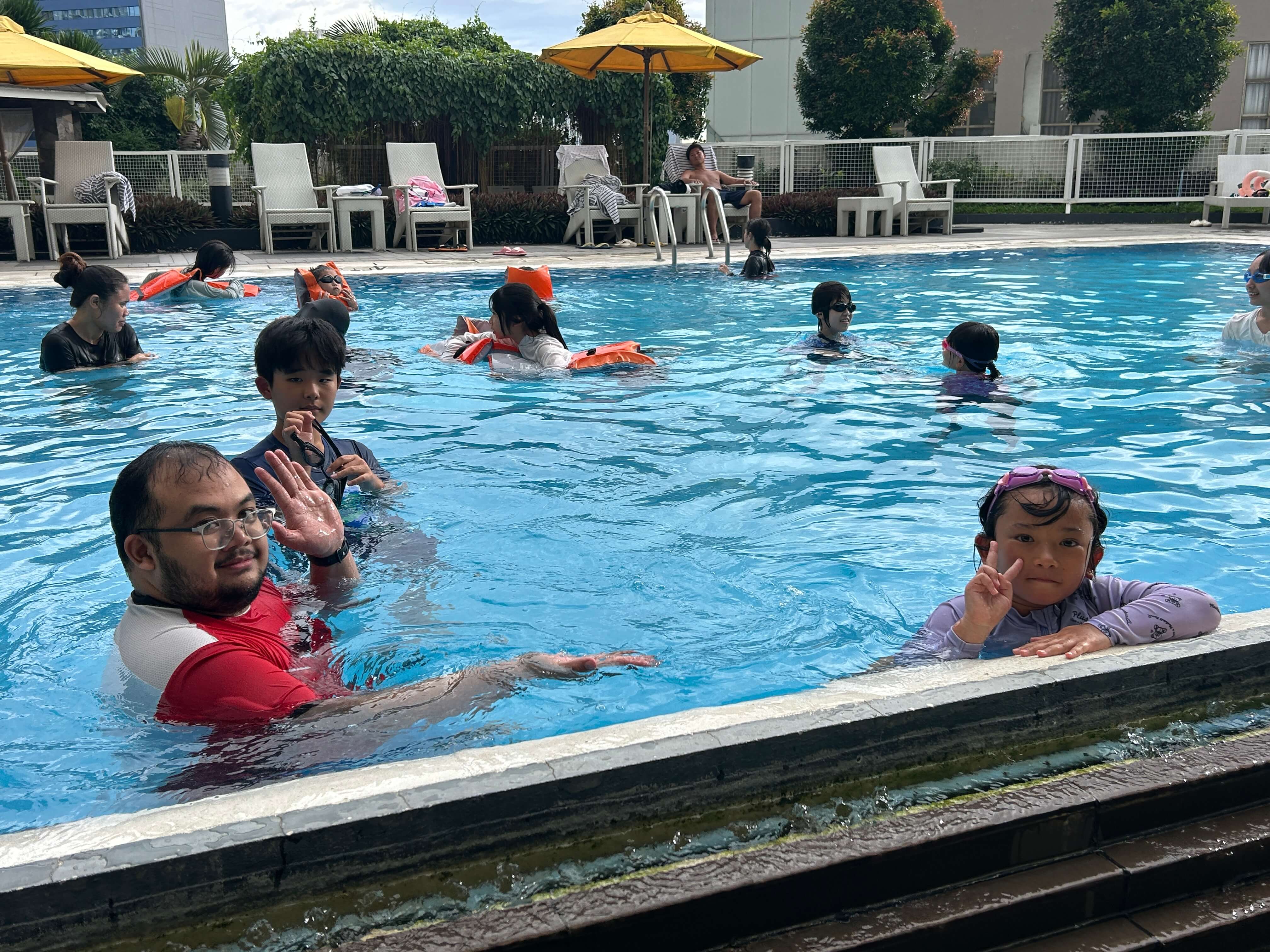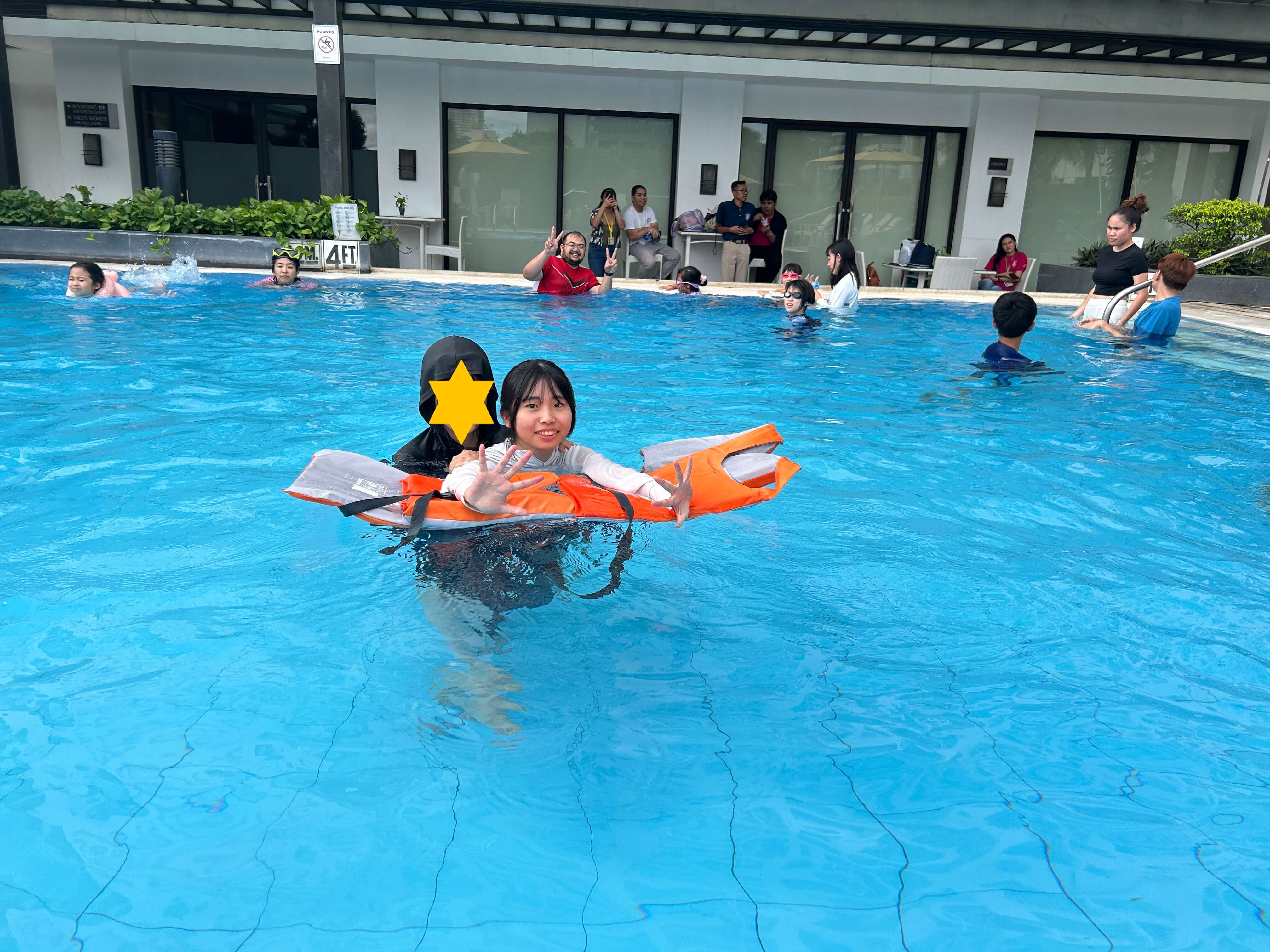 英語漬けジュニアキャンプのプールアクティビティは、英語のシャワーそのもの。先生とじゃんけんしたり、水鉄砲で「Ready?」「Go!」と掛け声をかけ合ったり。遊びながら自然に“英語脳”を使うシーンがたくさん見られます。