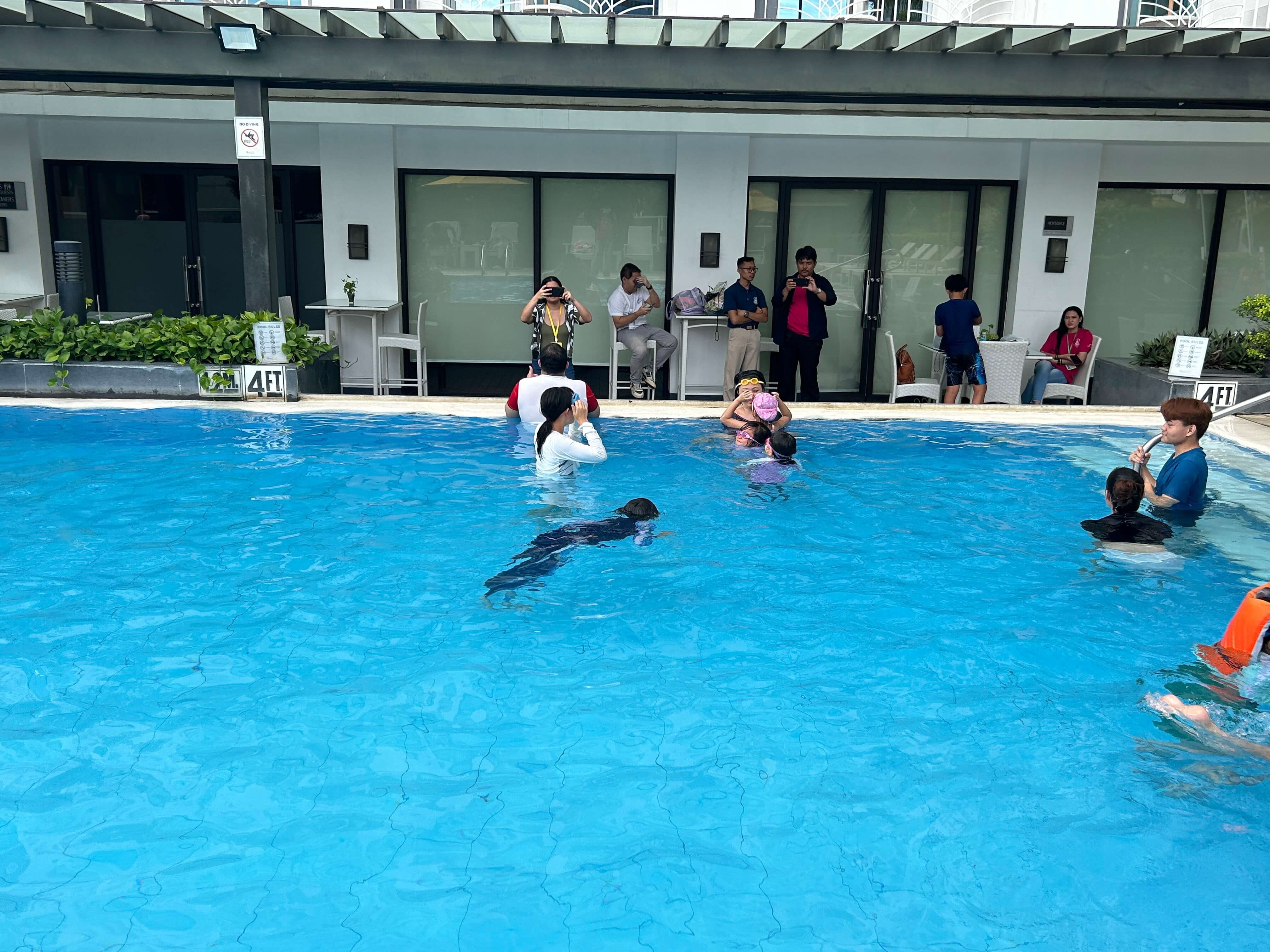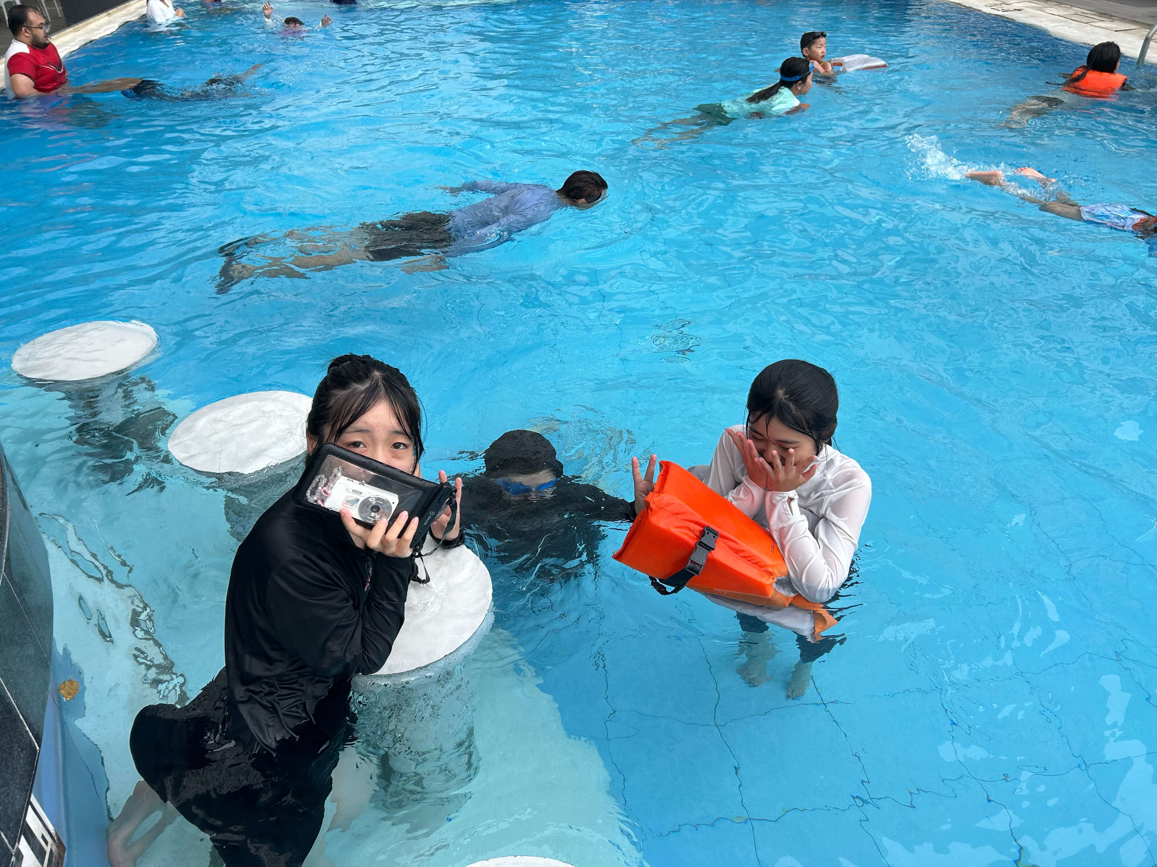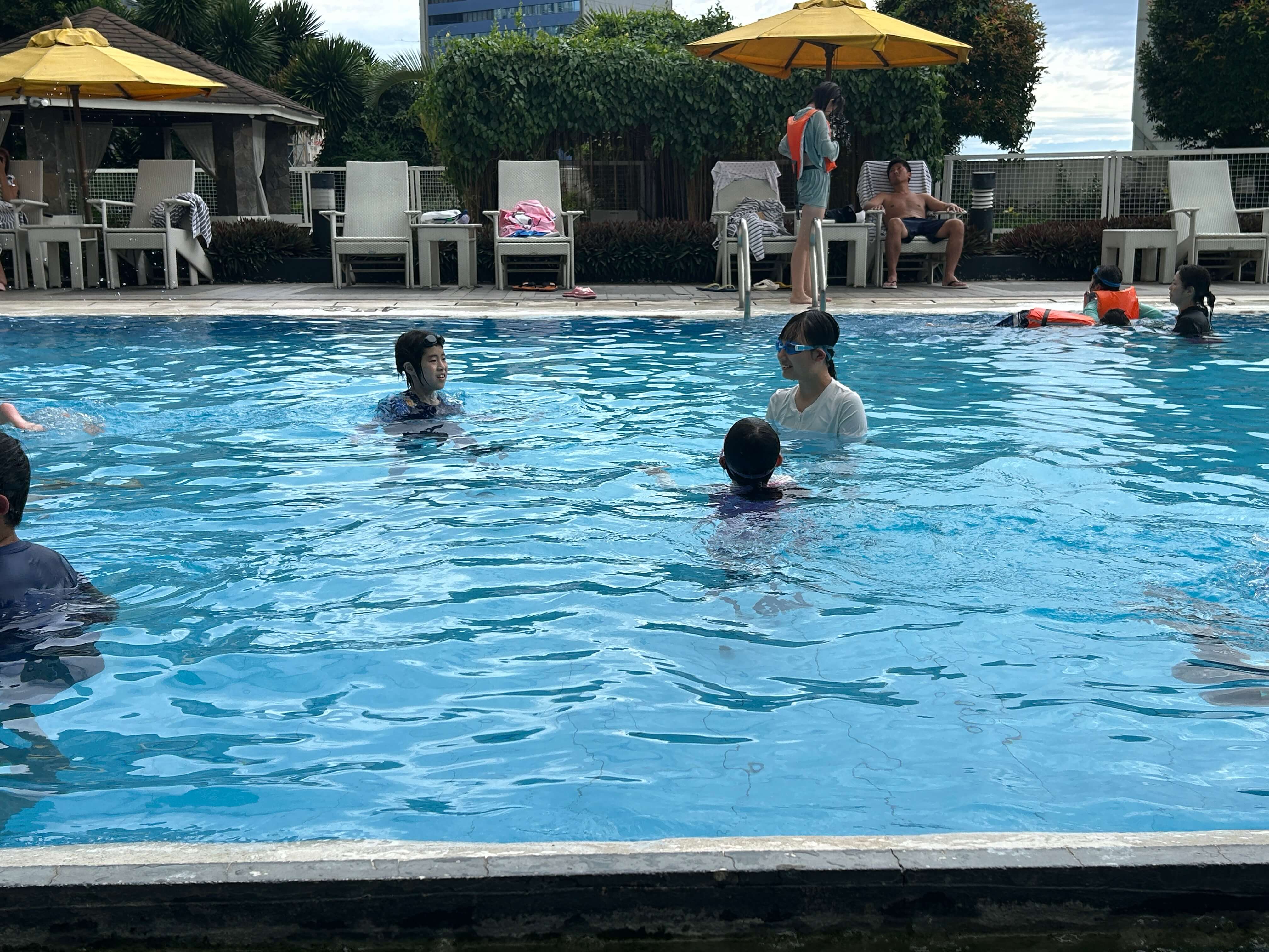 英語漬けジュニアキャンプのプールアクティビティは、英語のシャワーそのもの。先生とじゃんけんしたり、水鉄砲で「Ready?」「Go!」と掛け声をかけ合ったり。遊びながら自然に“英語脳”を使うシーンがたくさん見られます。