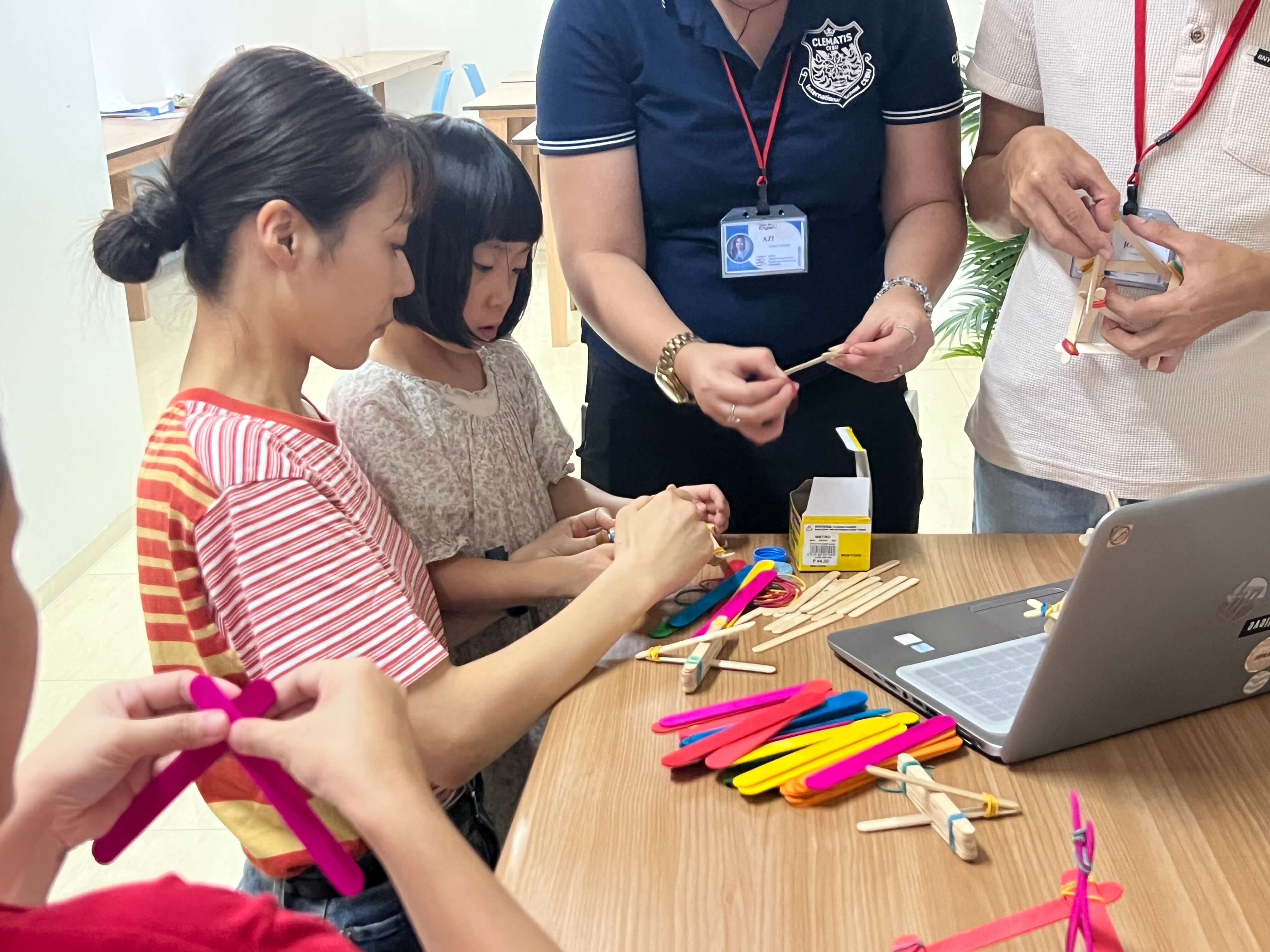 この実験を通して、発射角度が45度くらいのときに一番遠くまで飛ぶことがわかり、教科書で学ぶ「物の飛び方」の考え方と同じ結果になりました。身近な材料を使って、力やエネルギーのはたらきについて、楽しく学べる機会になったようですね。