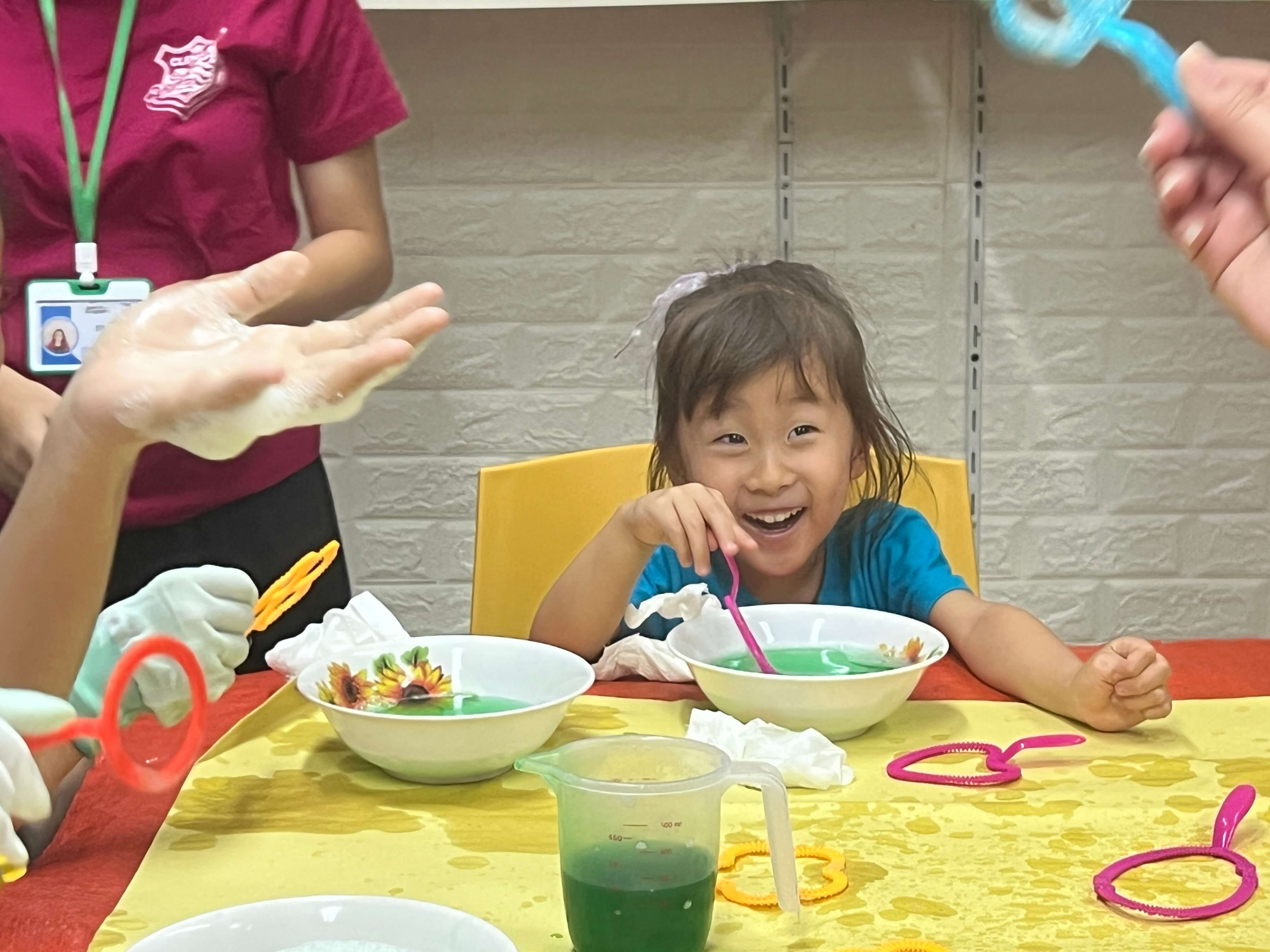 この実験のポイントは、「楽しい!」が先にあって、あとから科学がついてくること。遊びの中で、表面張力や空気の力といった科学の基本を、無理なく体感できます。