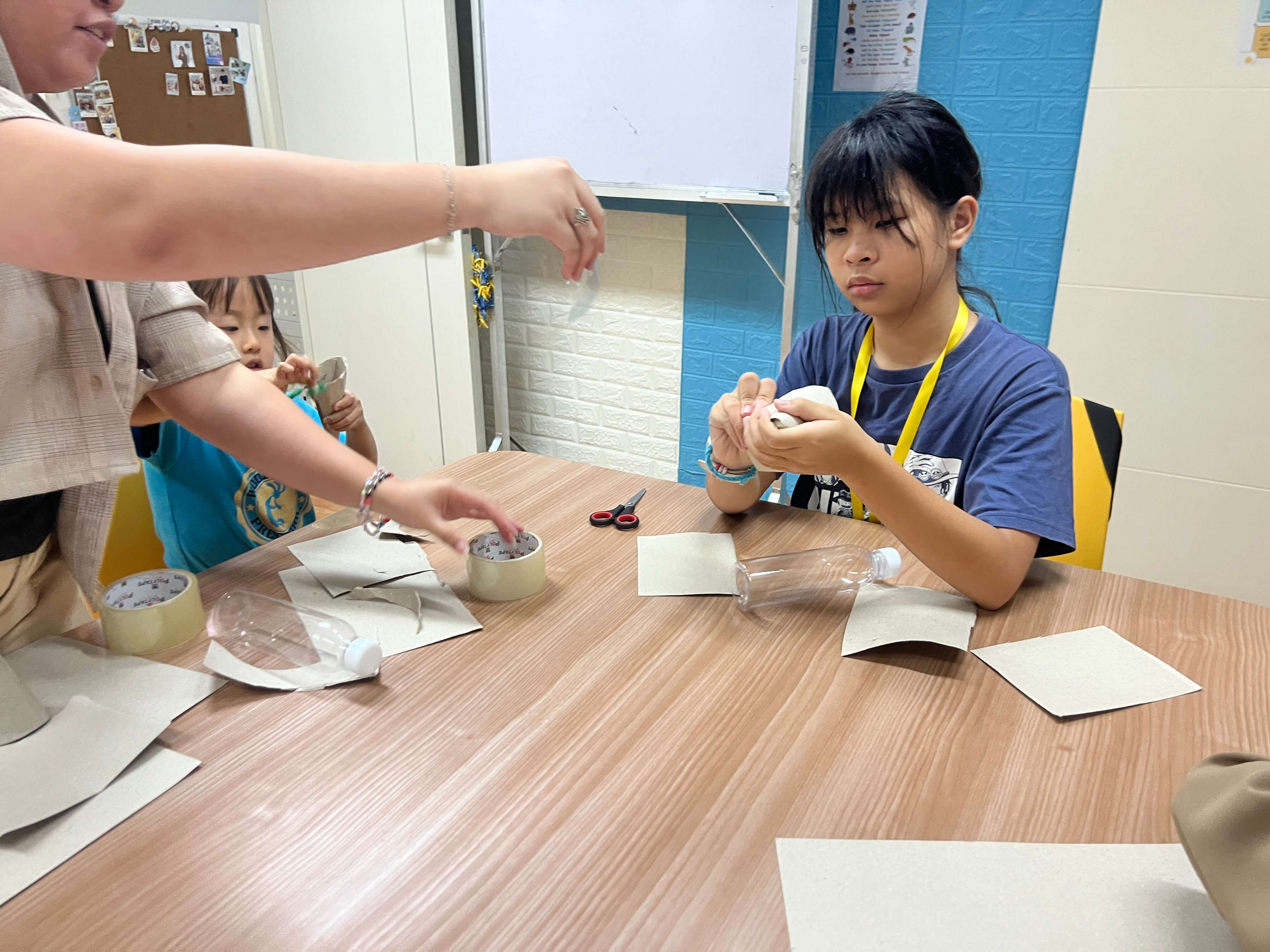 まずは、ペットボトルを使ってロケットを作ります。ペットボトルの底を切って、飛ばすための仕掛けを準備するところからスタート。自分のロケットがうまく飛ぶように、角度やバランスを考えながら作業を進めていきます。