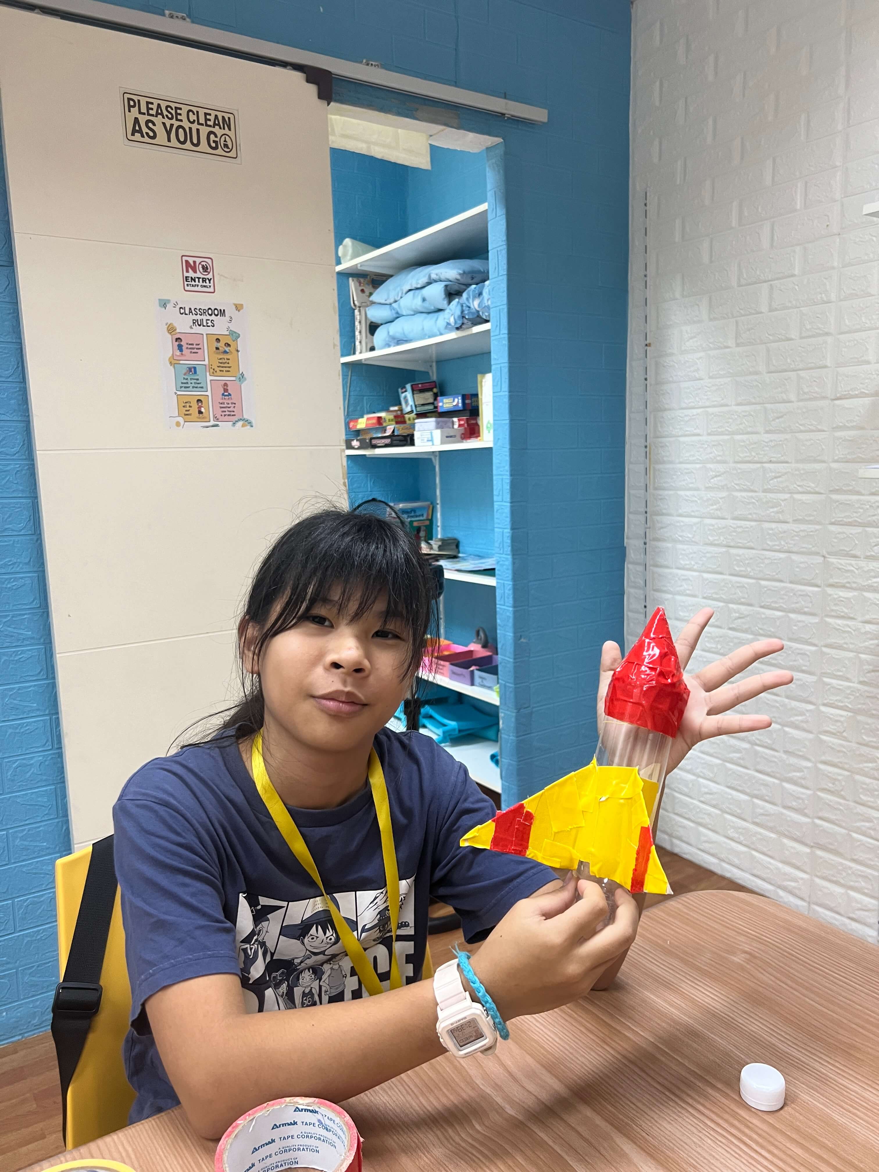ロケットを飛ばして遊ぶことで、子どもたちは空気圧や力の作用について、自然と物理の基本を学んでいきます。