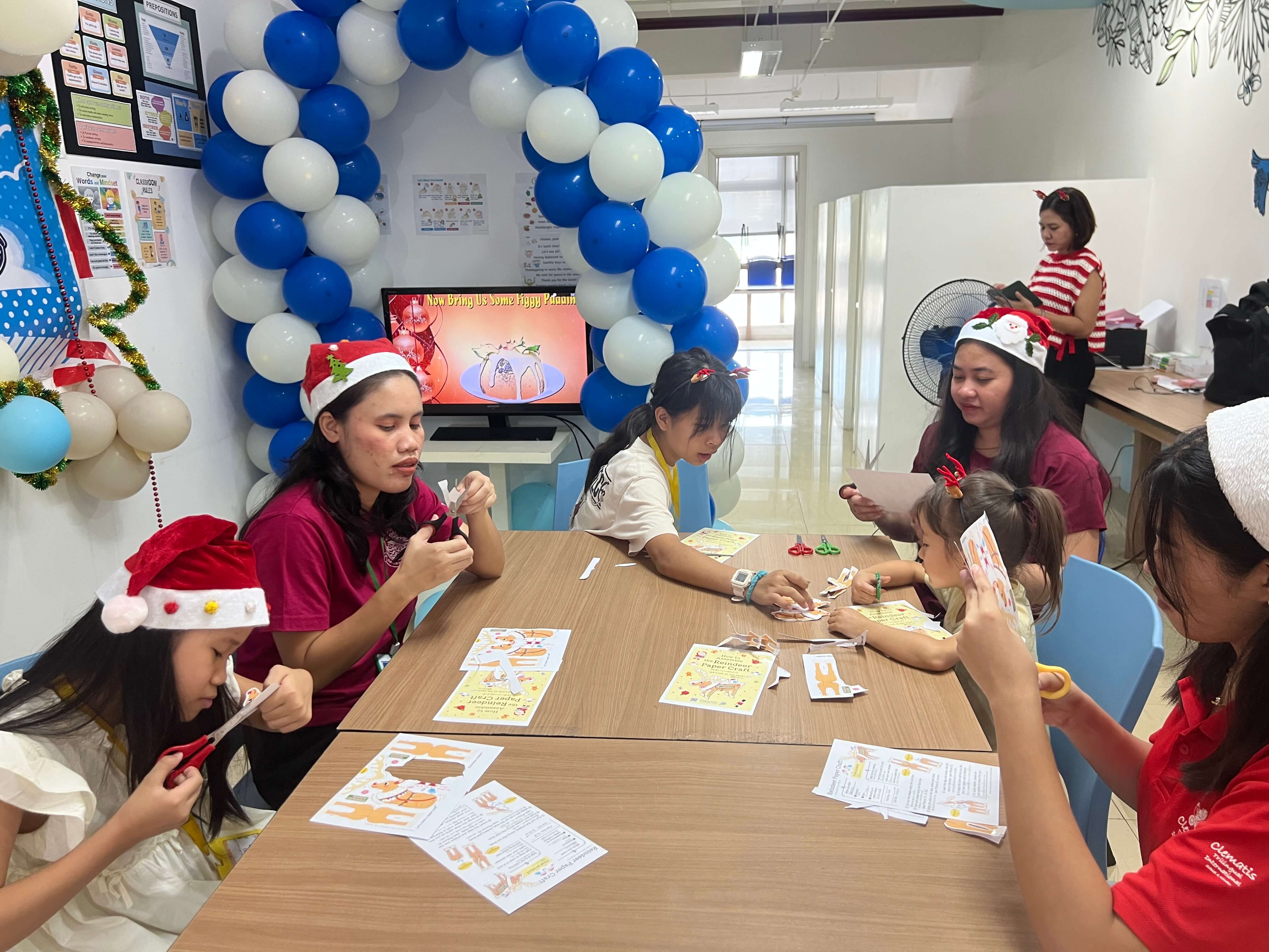 サンタさんの帽子やトナカイの角をつけて、会場をパーティーのように華やかに盛り上げました。みんなでクリスマスキャラクターを画用紙で作って遊びながら、笑顔が絶えませんでした!