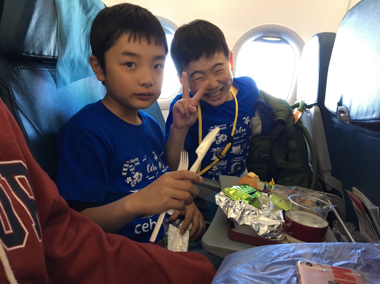 飛行機の中では、新しく出来た友達と話したり、美味しい機内食を食べたりして過ごしました。特に今日の機内食は美味しかった!