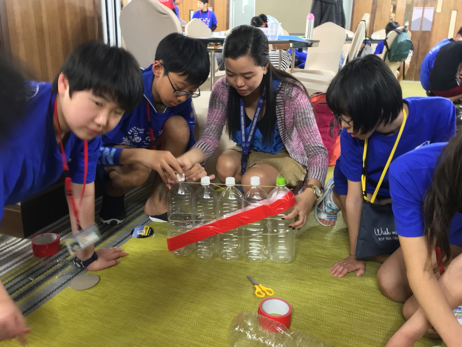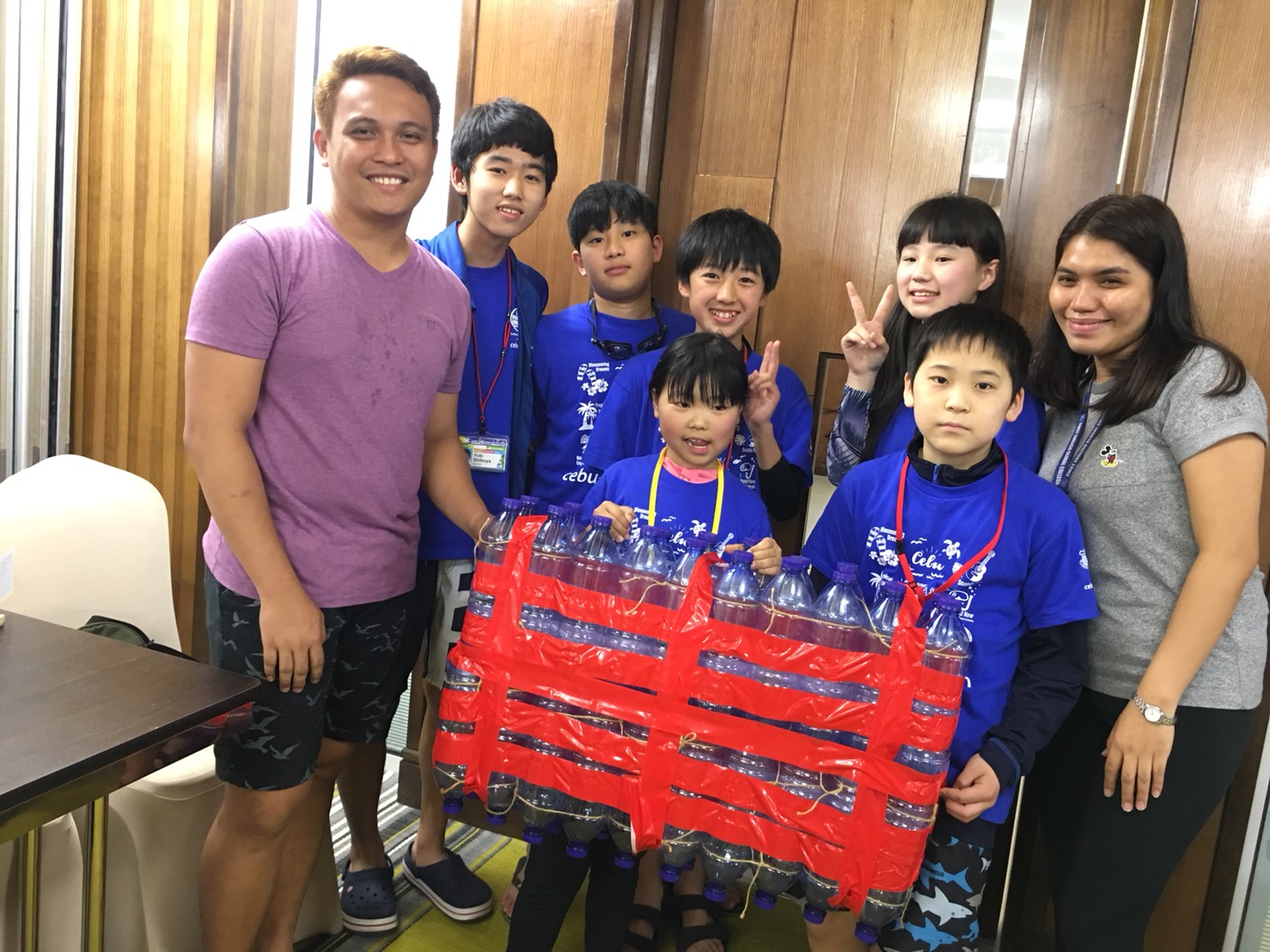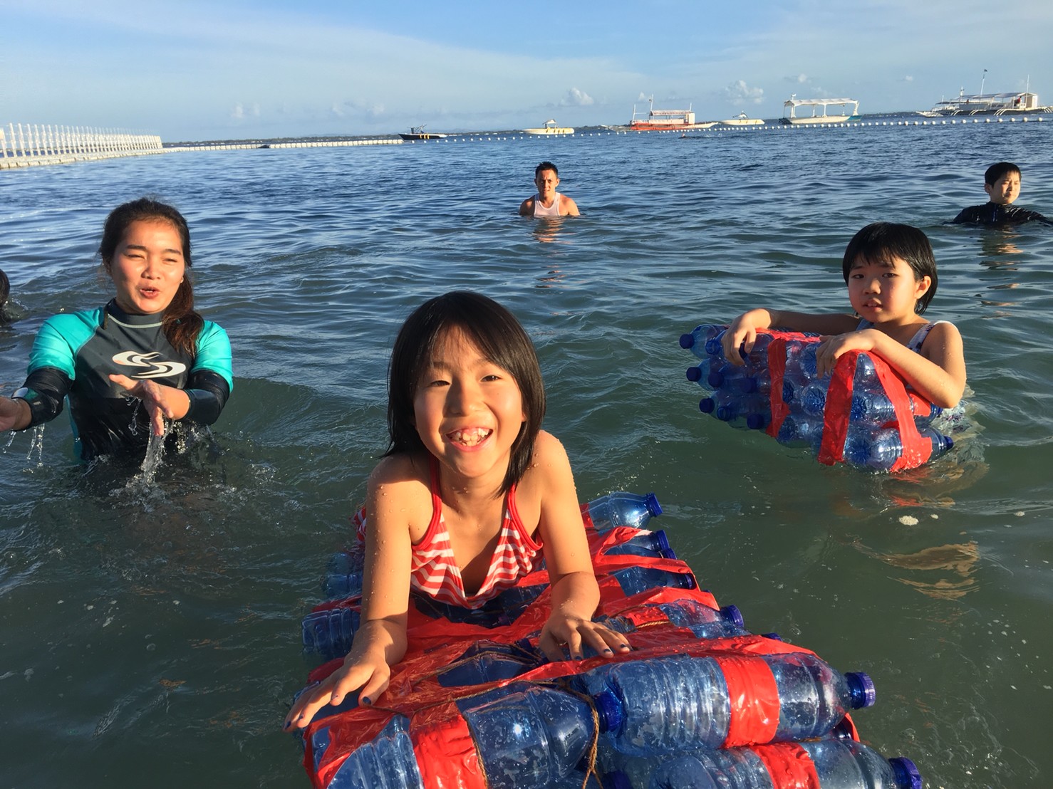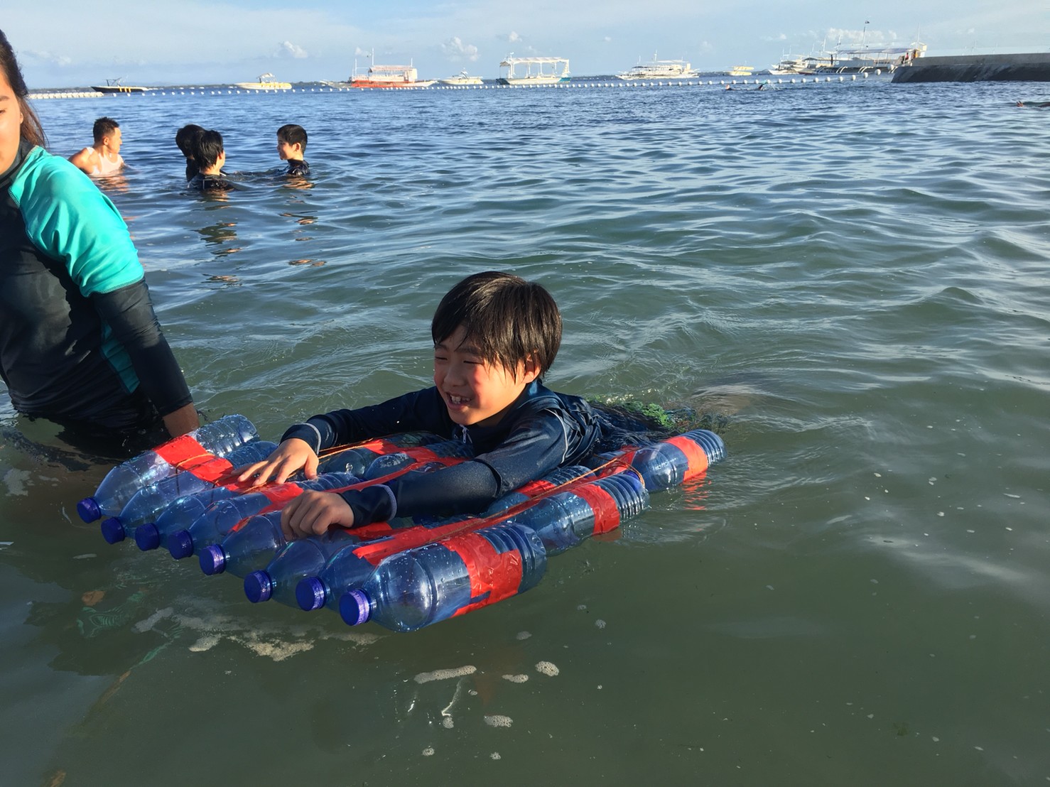 今日のお題は「プラスチック ボトル」です!子供達はサイエンスレッスンのグループに分かれて、ペットボトルで筏を作り、浮力について学びました。