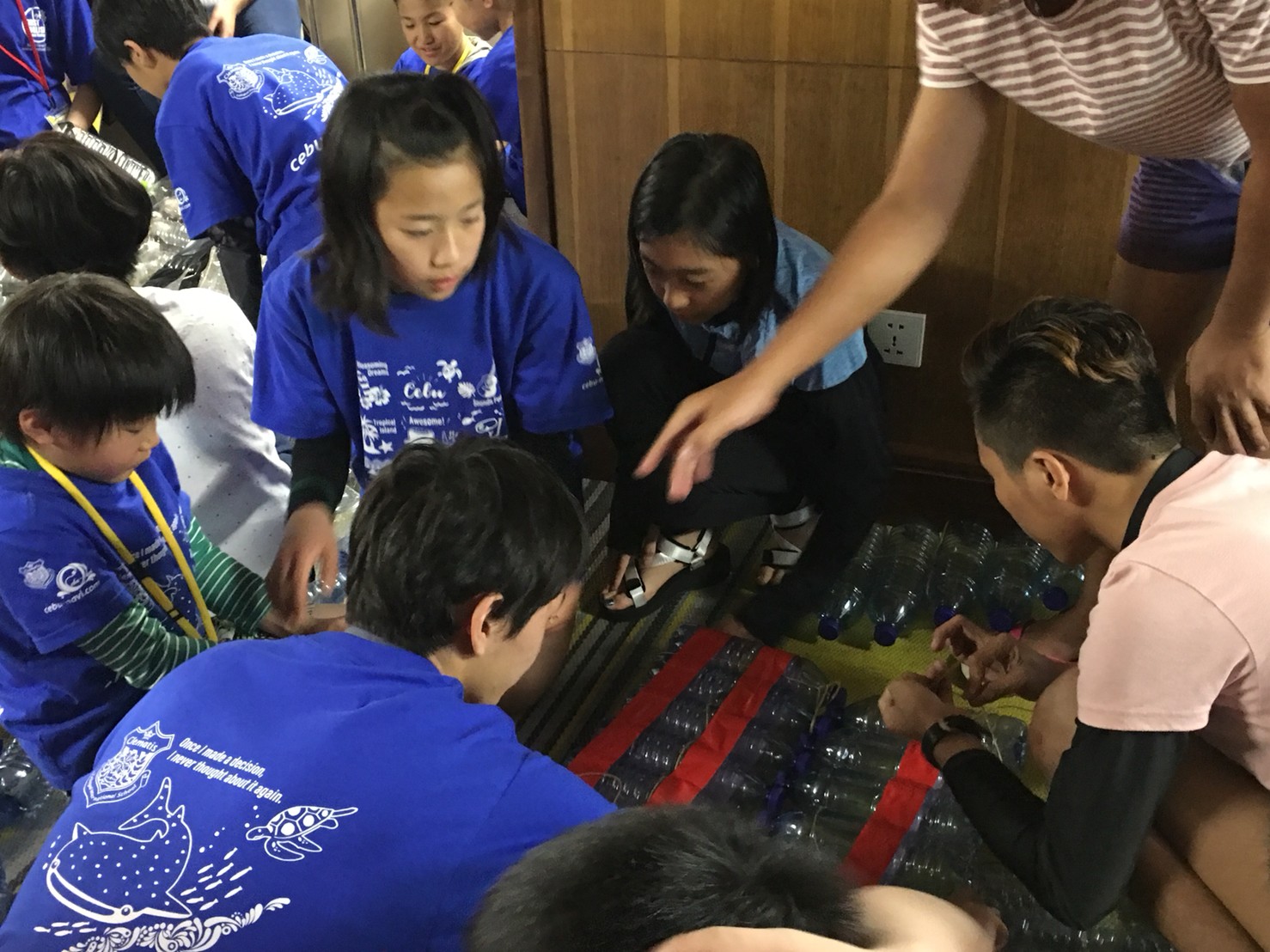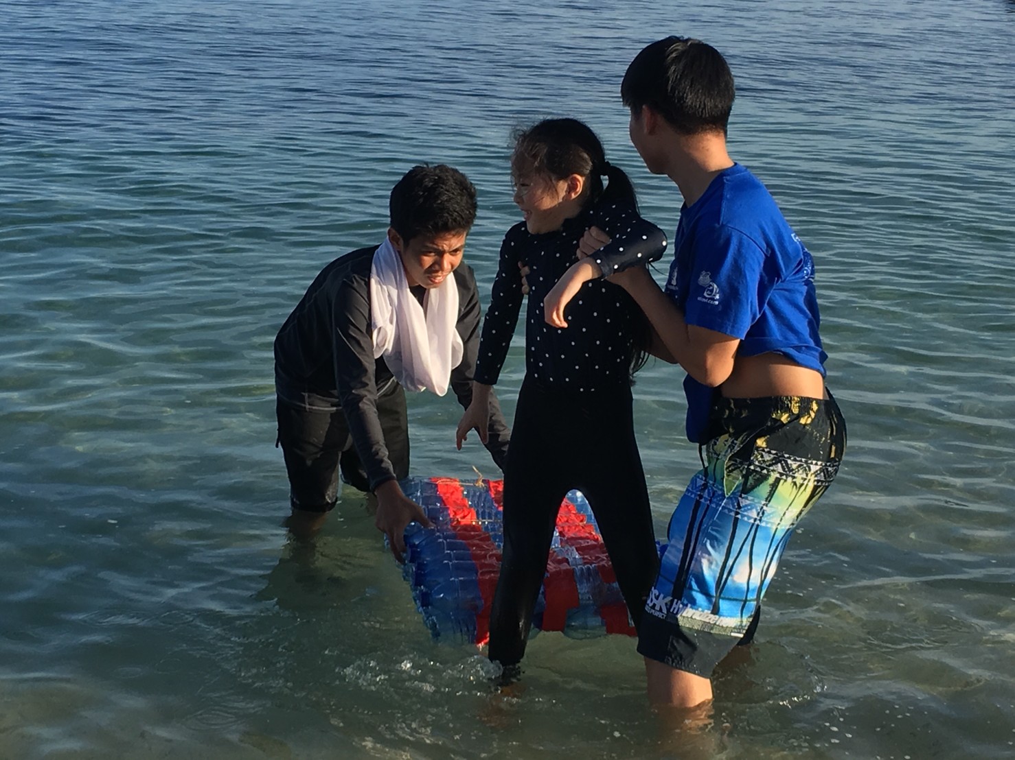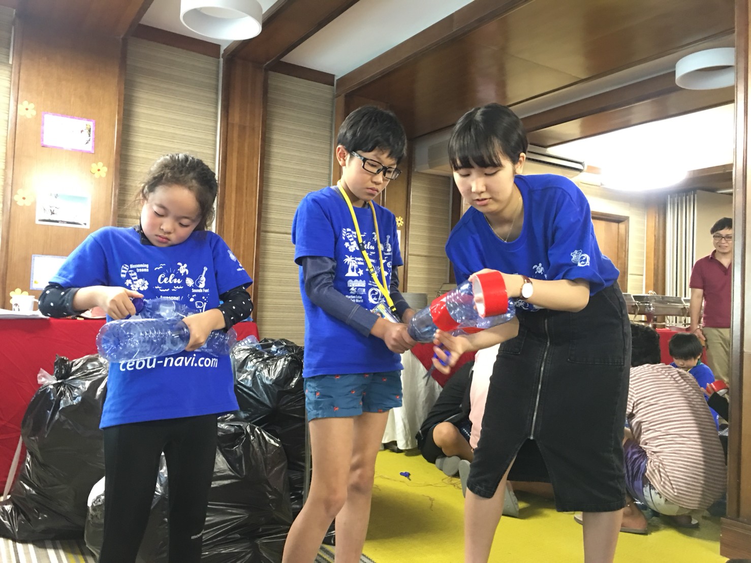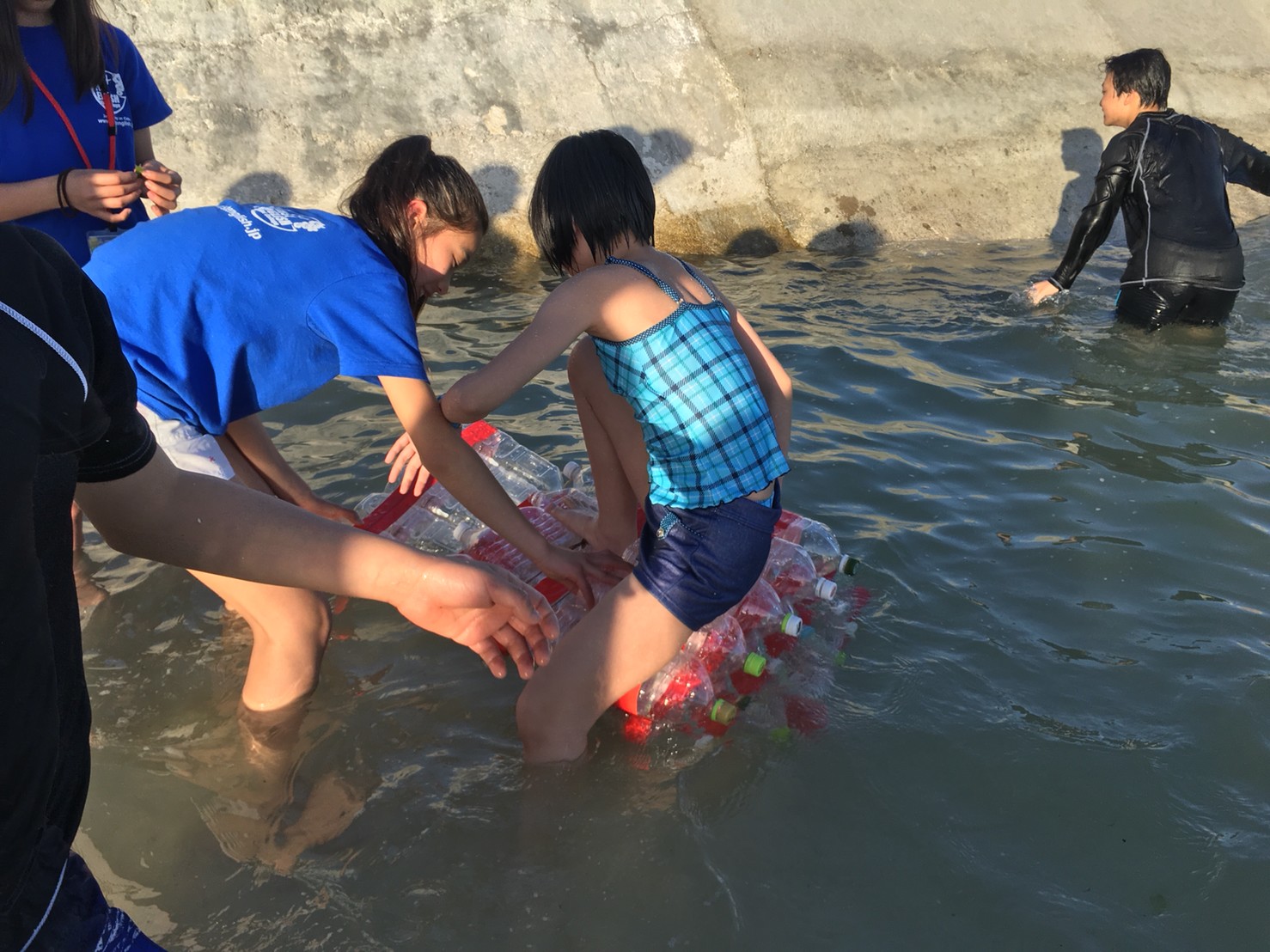 今日のお題は「プラスチック ボトル」です!子供達はサイエンスレッスンのグループに分かれて、ペットボトルで筏を作り、浮力について学びました。