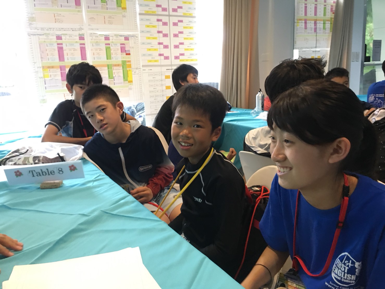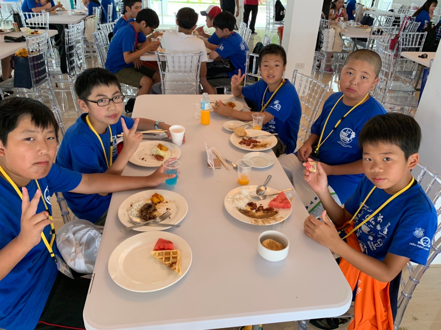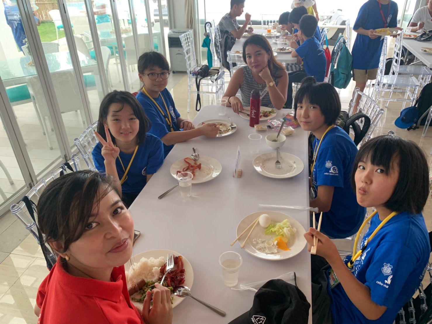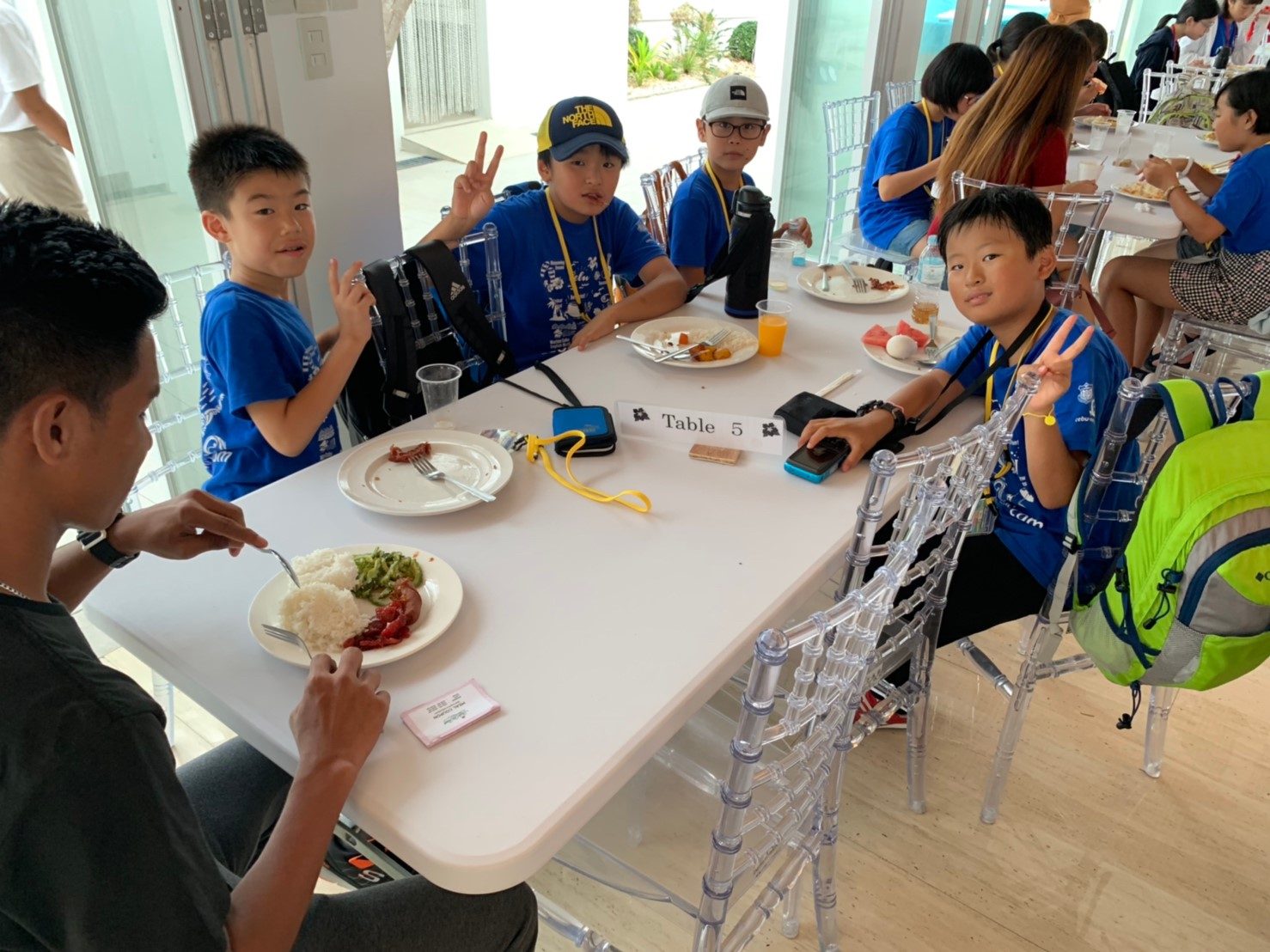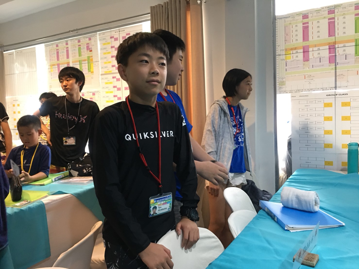 ビュッフェスタイルの朝食を頂き、まずはレベルチェックテストとオリエンテーションです。また、ジュニアキャンプでは、必ず避難訓練もしています。