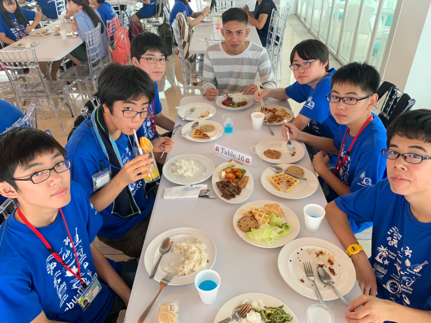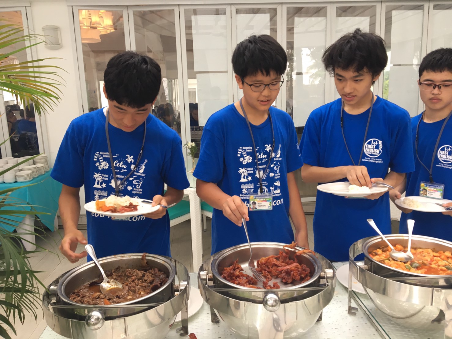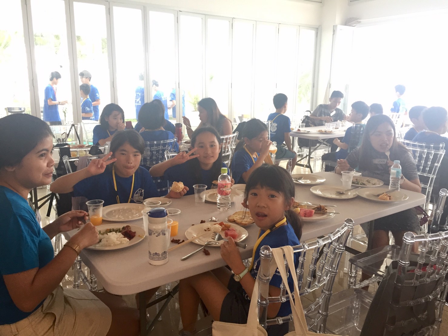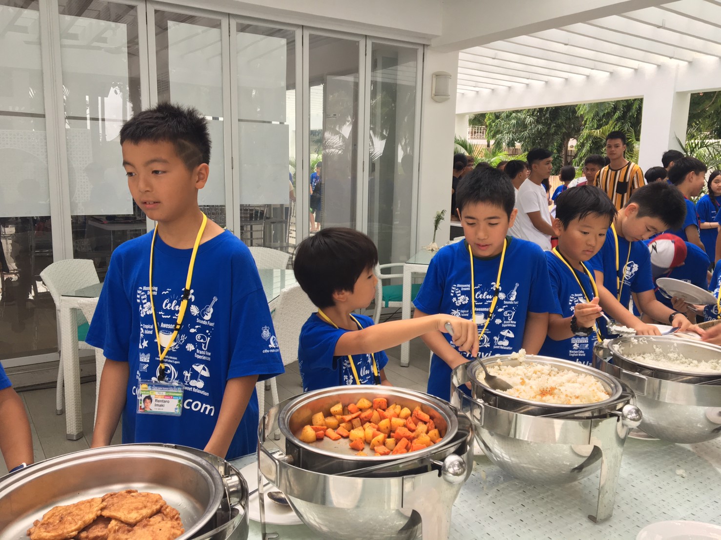 ビュッフェスタイルの朝食を頂き、まずはレベルチェックテストとオリエンテーションです。また、ジュニアキャンプでは、必ず避難訓練もしています。