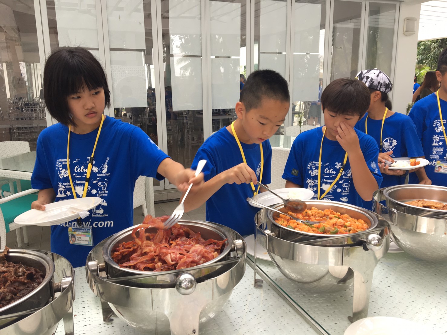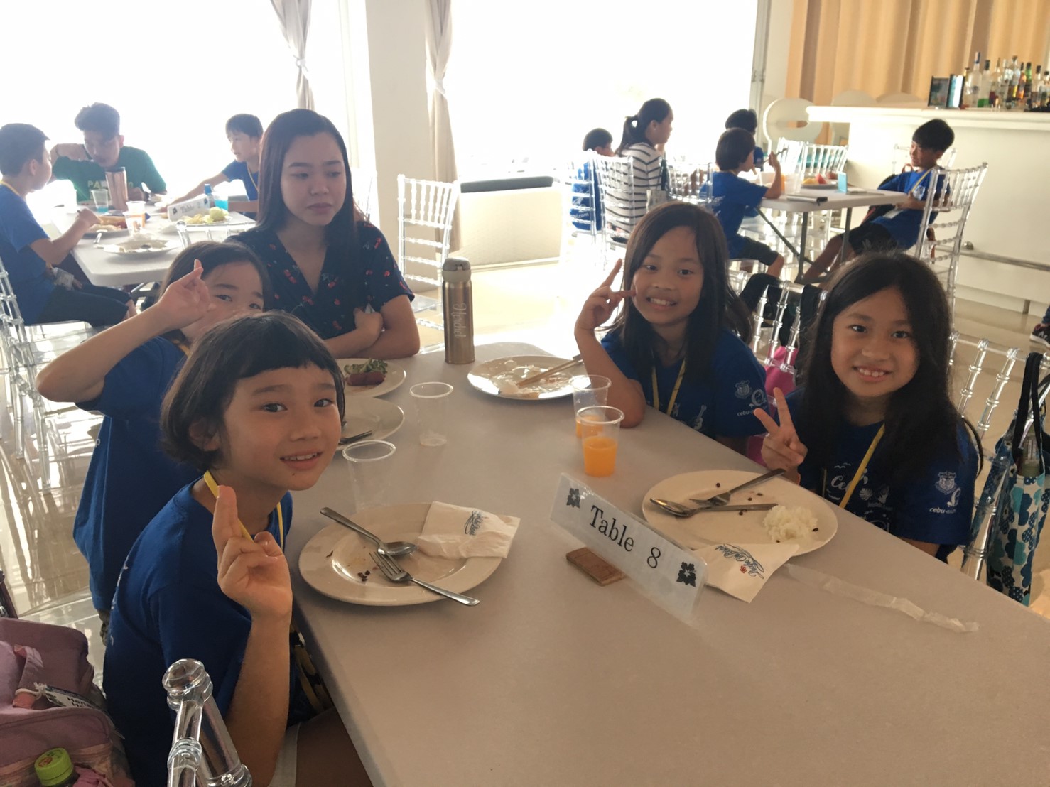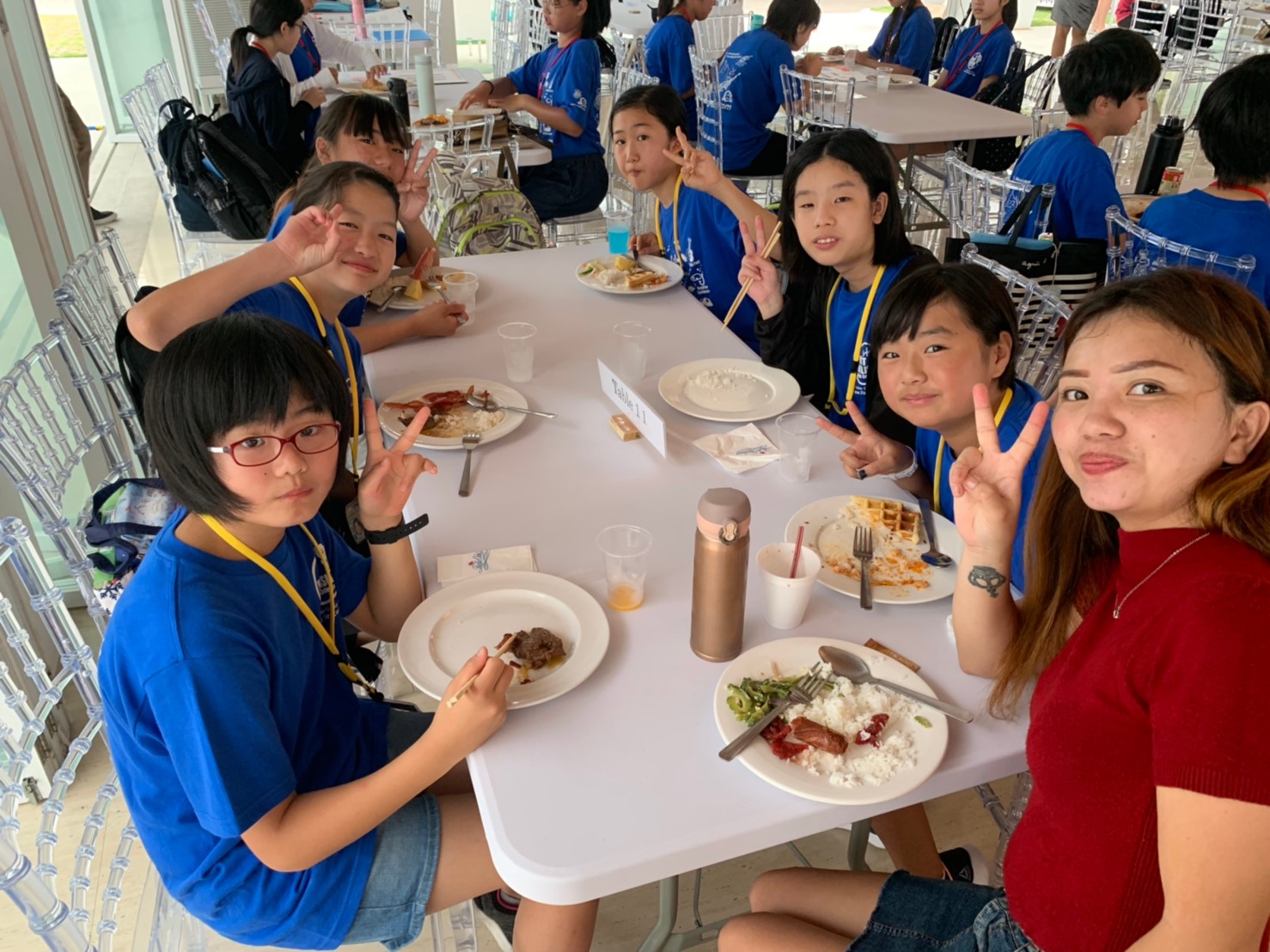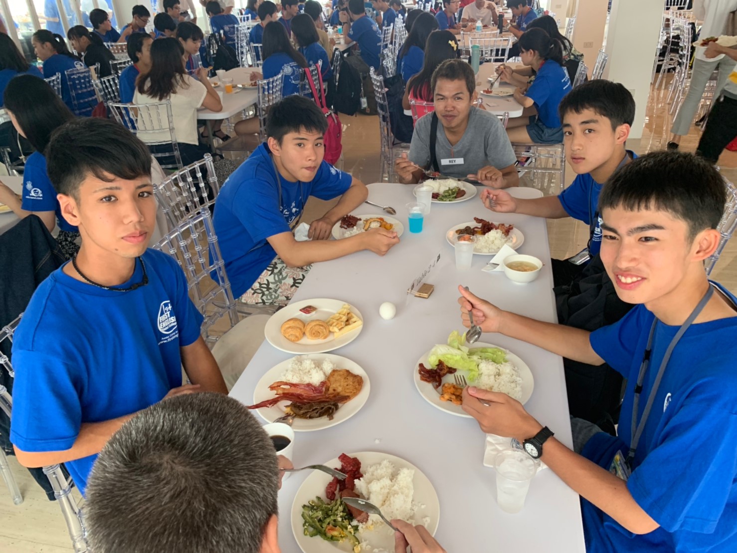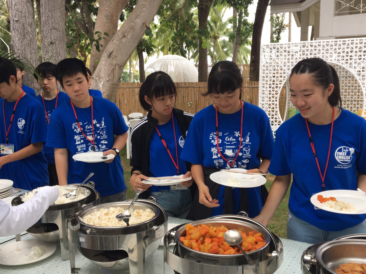 ビュッフェスタイルの朝食を頂き、まずはレベルチェックテストとオリエンテーションです。また、ジュニアキャンプでは、必ず避難訓練もしています。