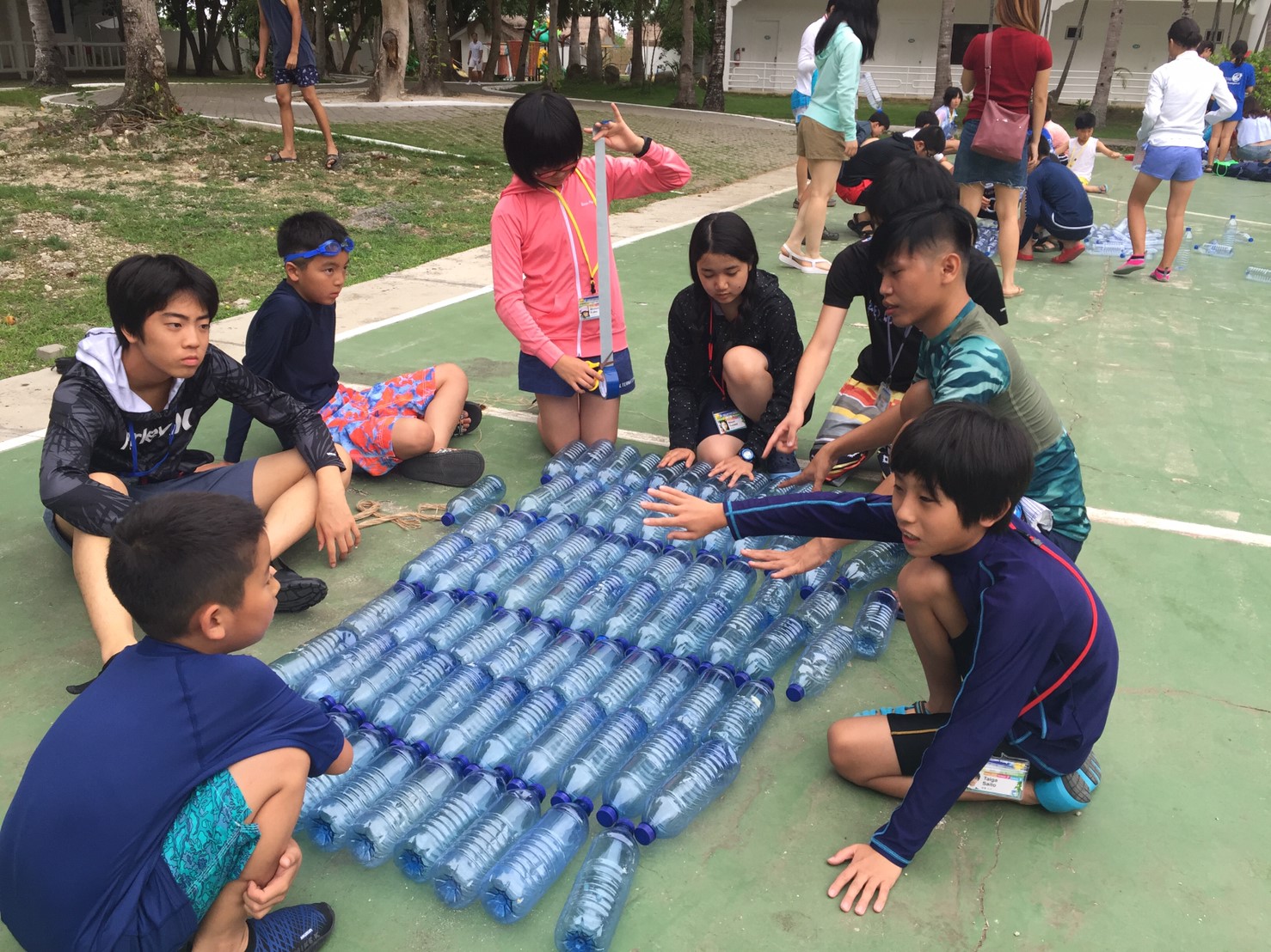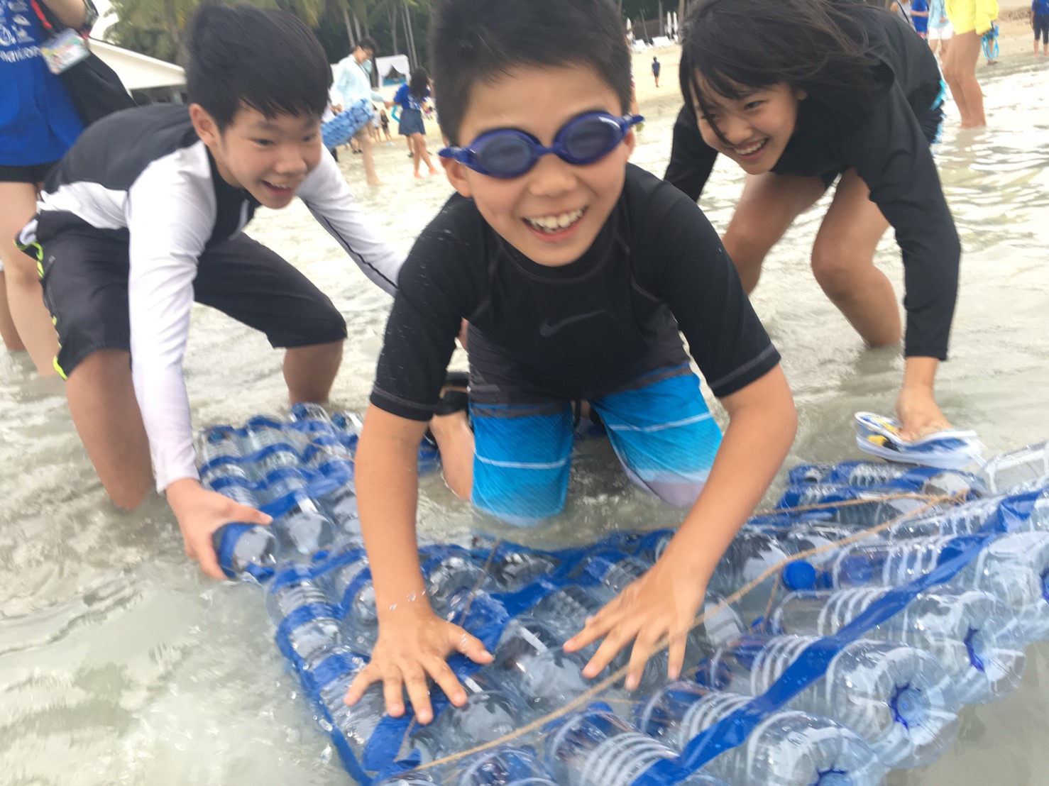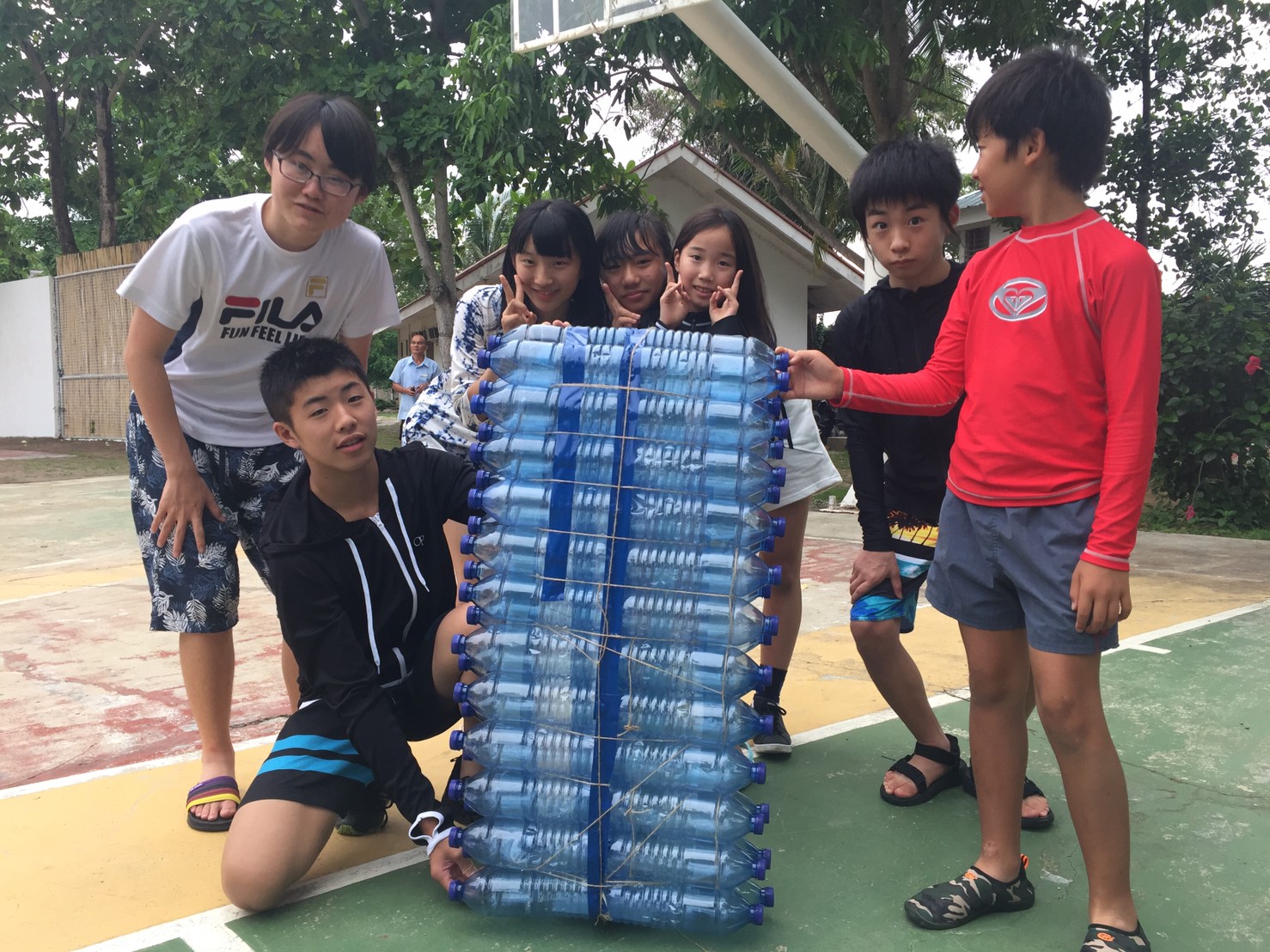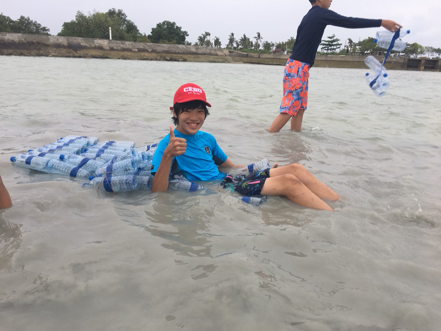 空のペットボトルを組み合わせて、筏を作り、浮力の勉強をしました。