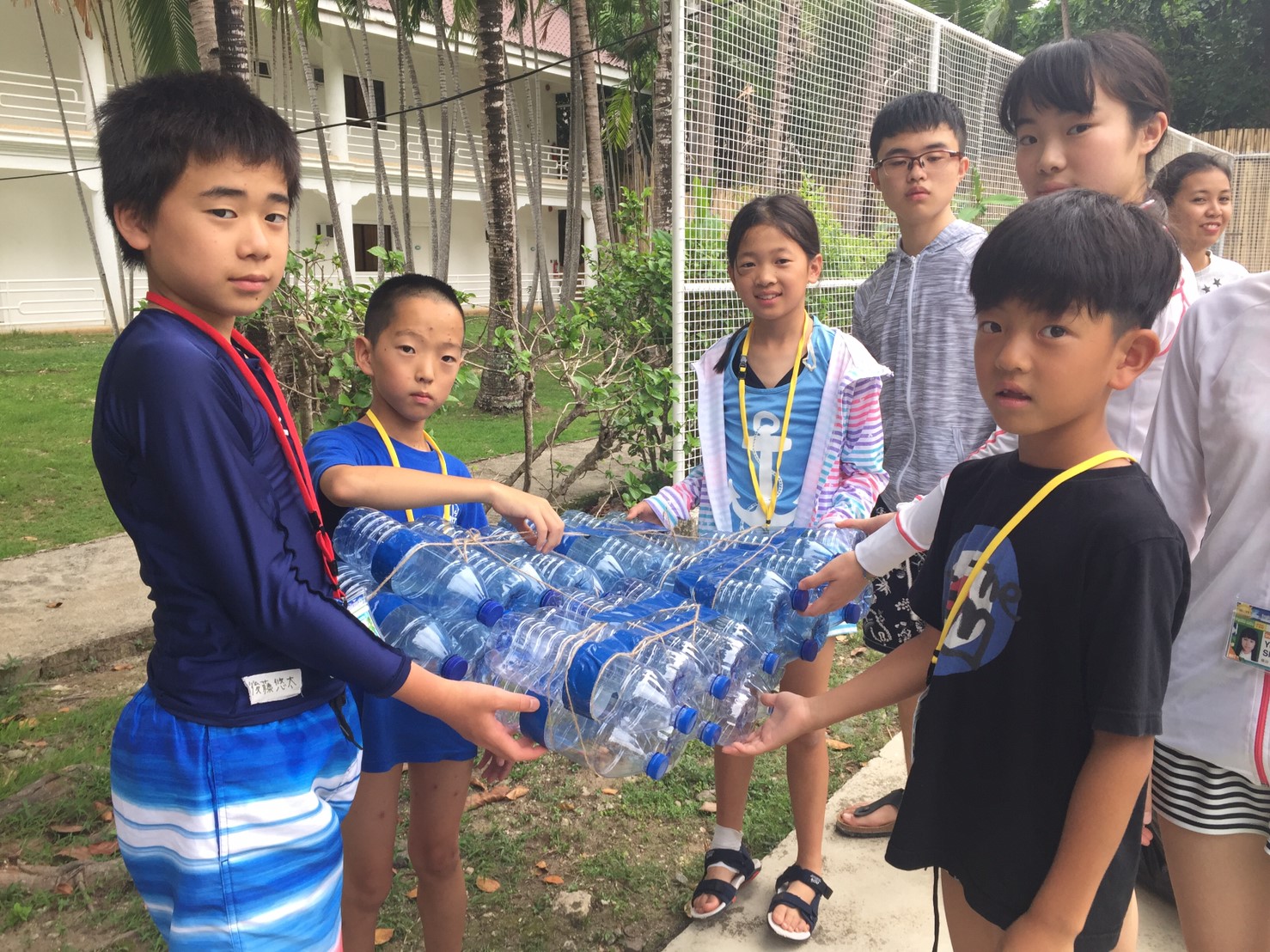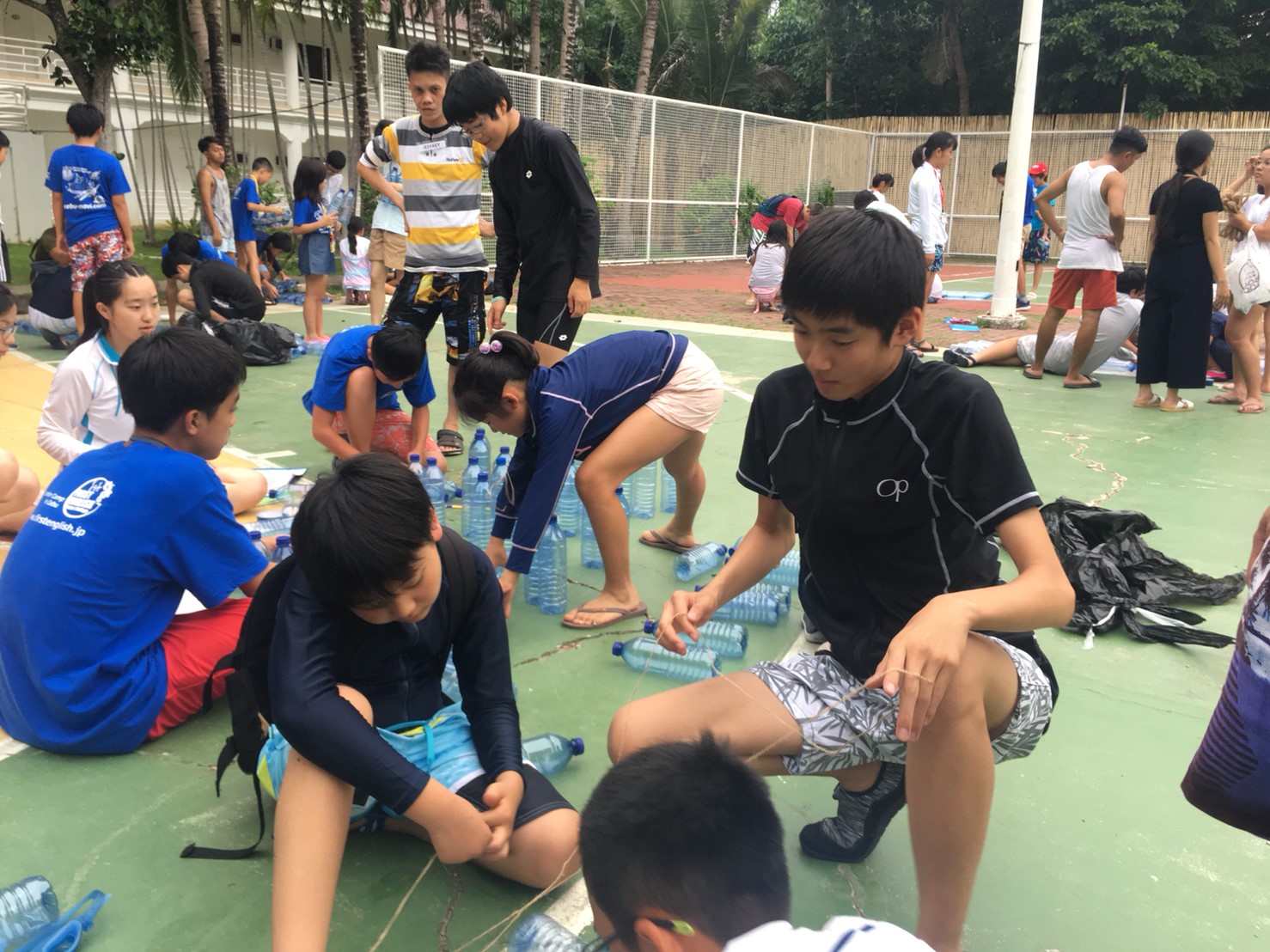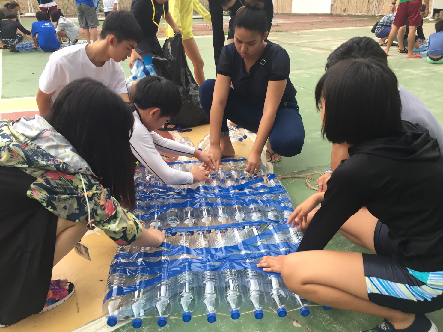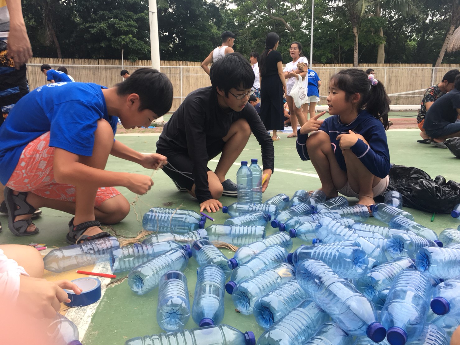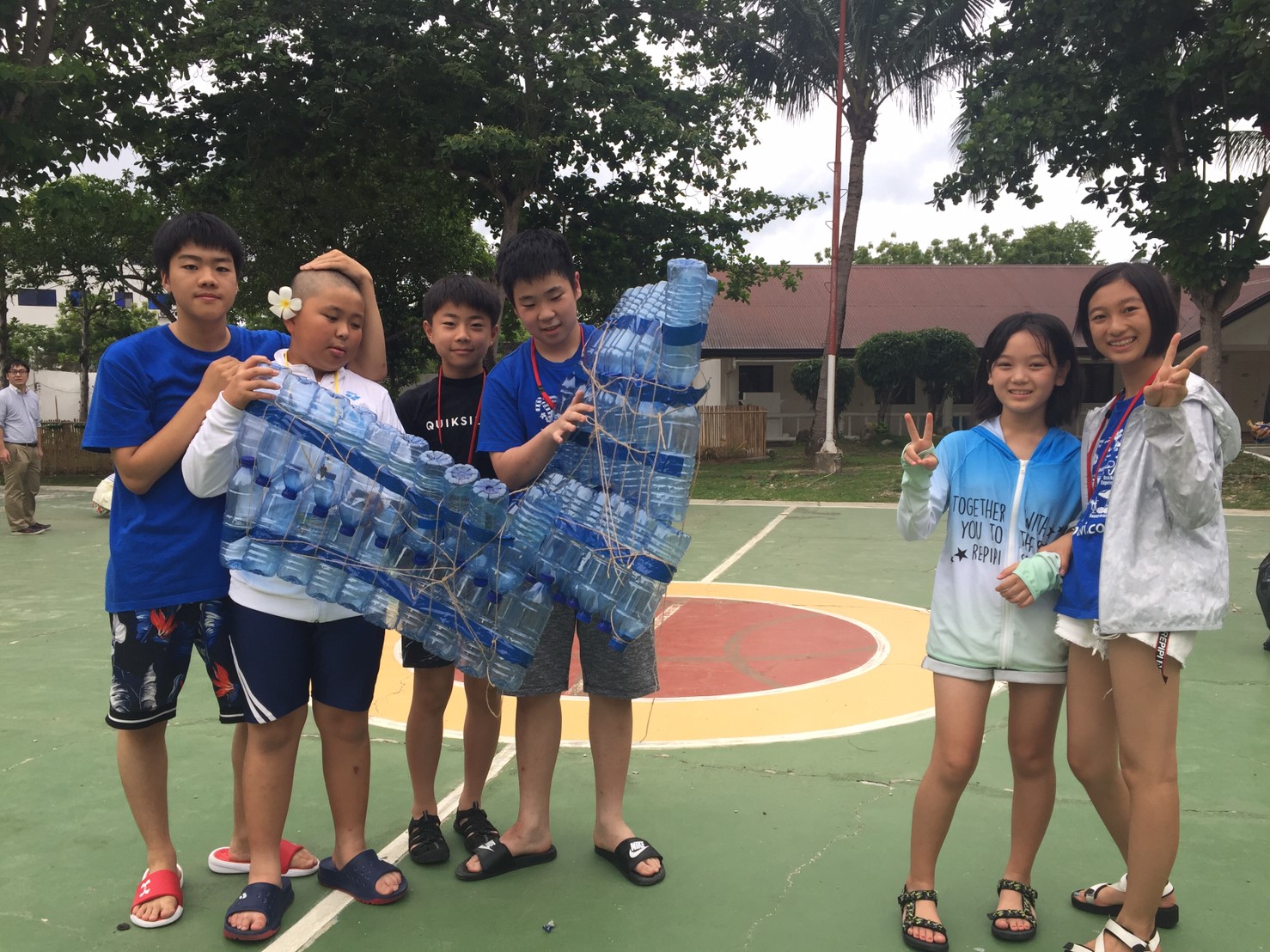 空のペットボトルを組み合わせて、筏を作り、浮力の勉強をしました。