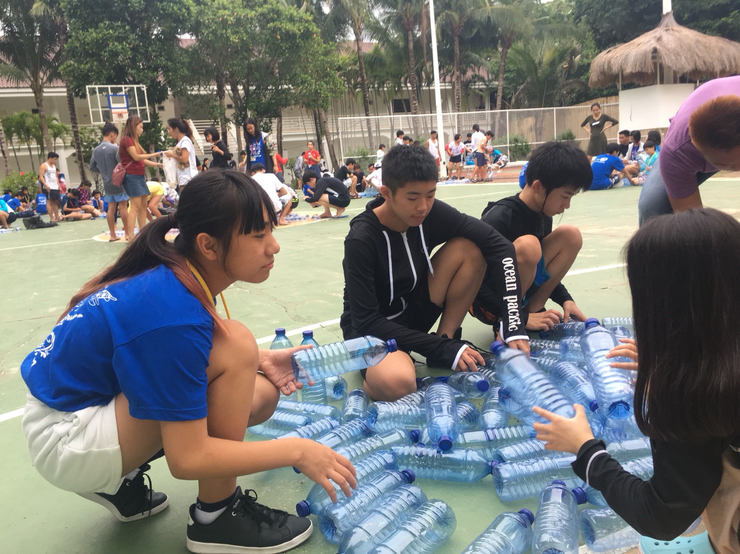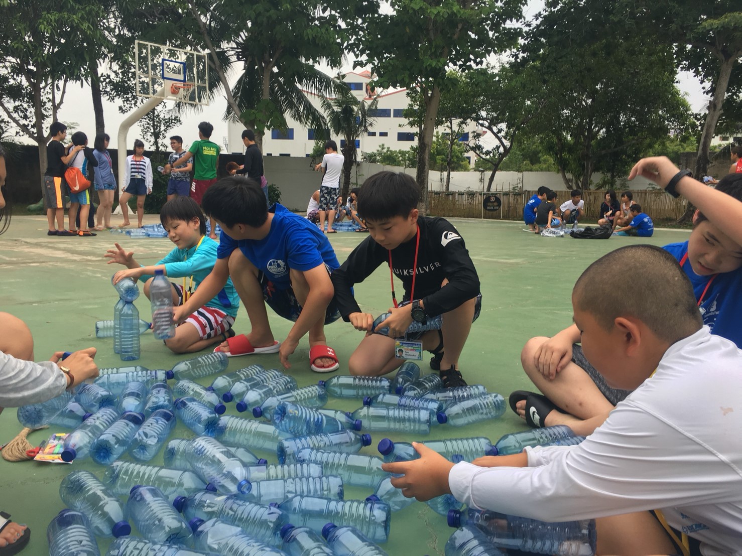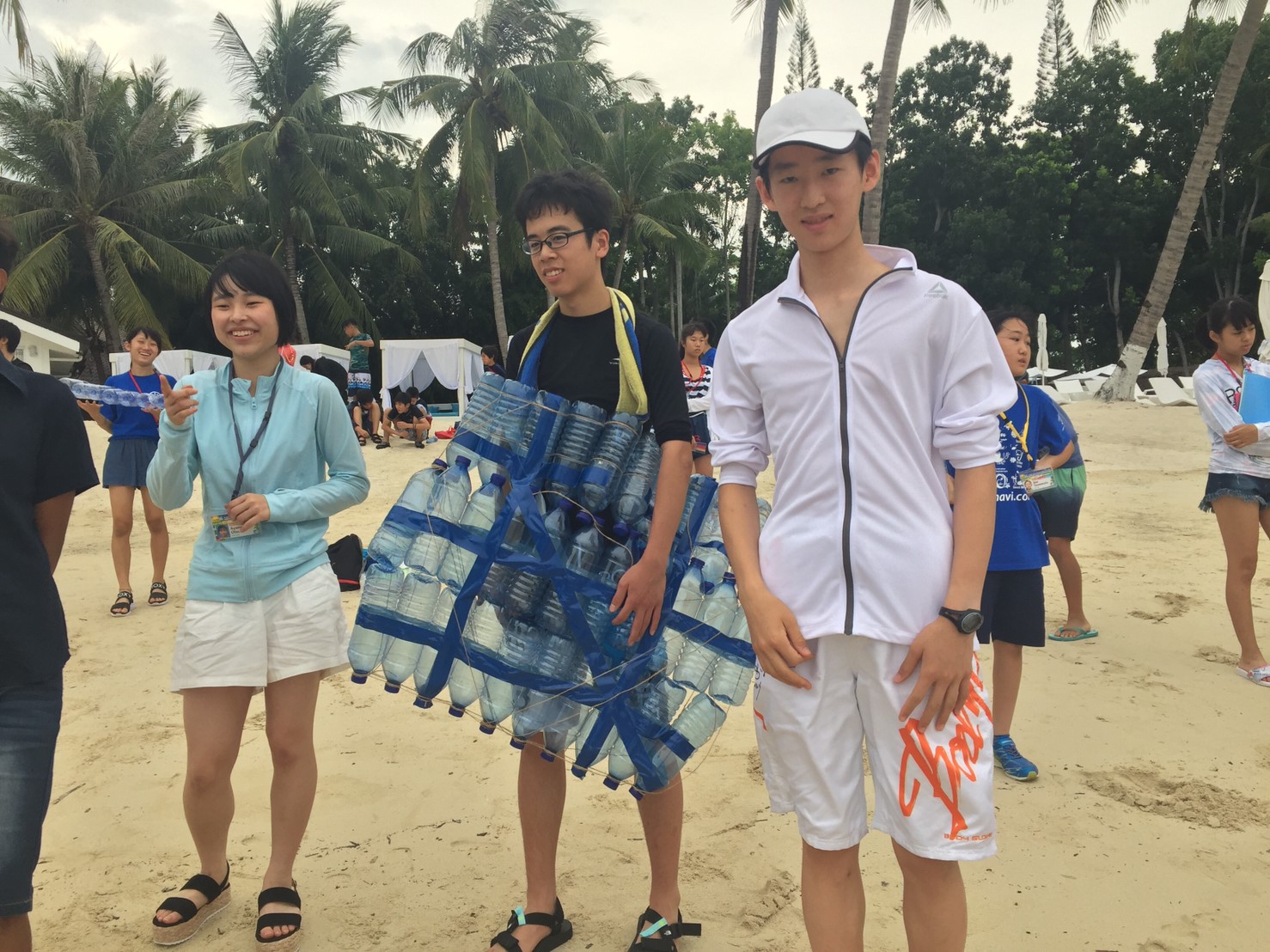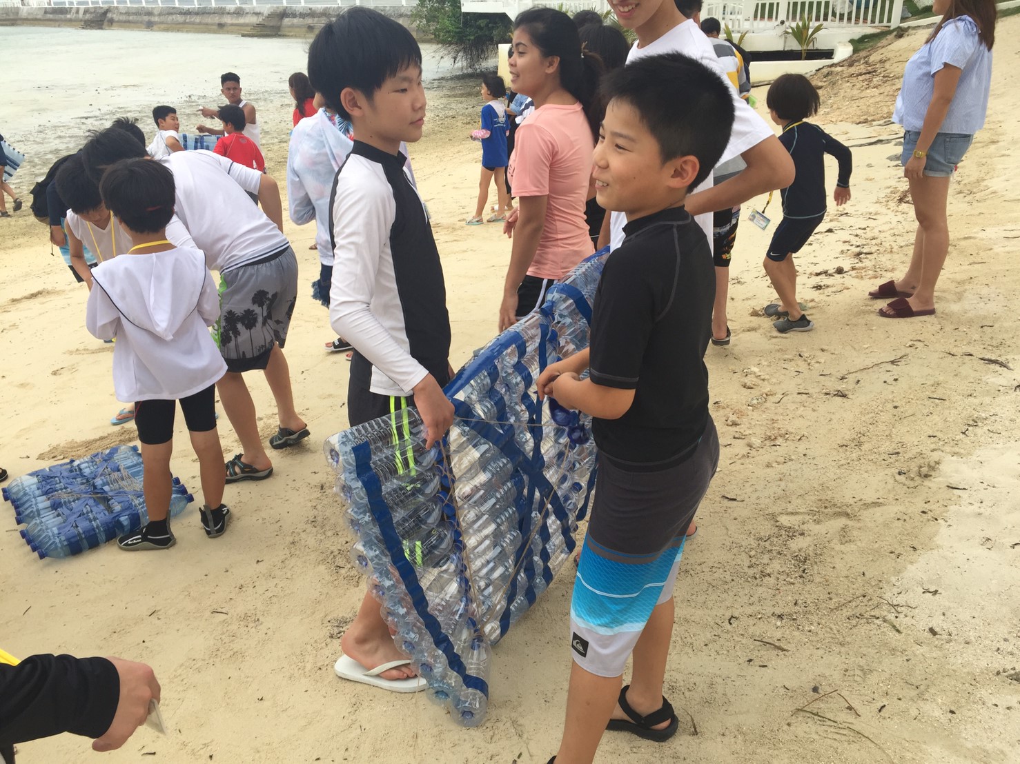 空のペットボトルを組み合わせて、筏を作り、浮力の勉強をしました。