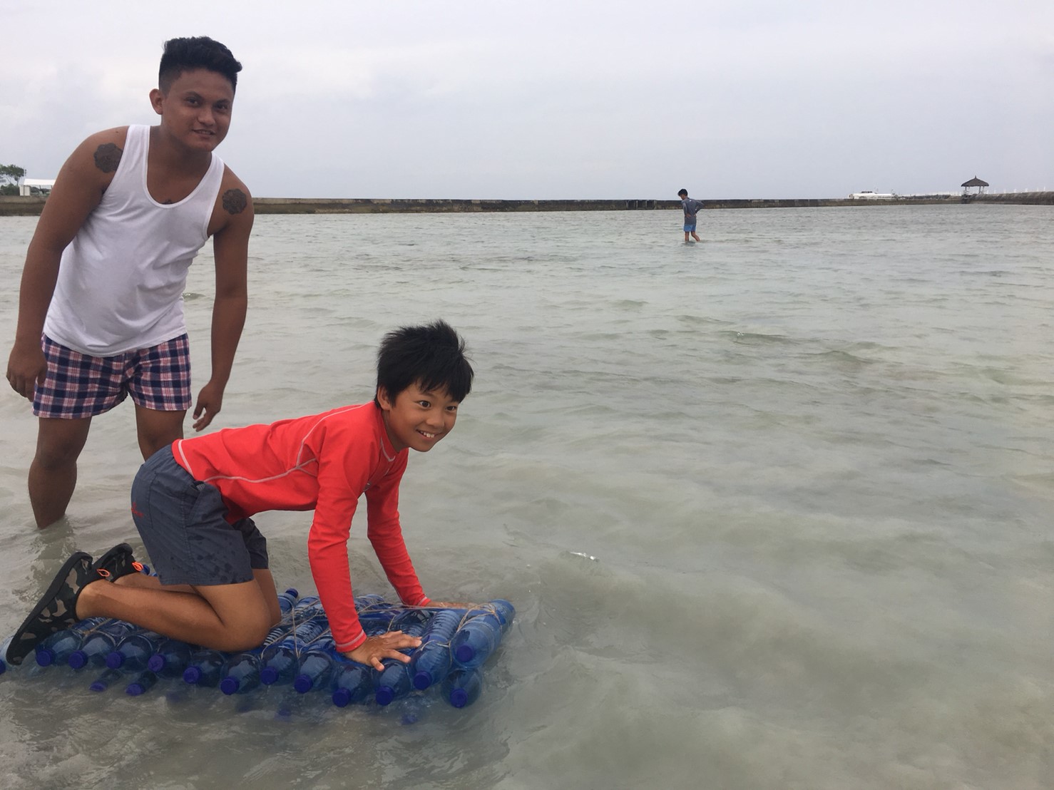 ホテルのプライベートビーチで、筏を浮かべて、みんな楽しそうにしていましたよ!