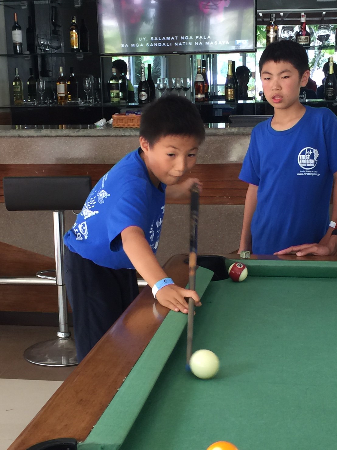 (いっぱい食べてお腹が満たされた後は、またプールで泳いで遊んだり、アクティビティゾーンで卓球・ダーツ・ビリヤード・バスケットボールなどして遊びました。)