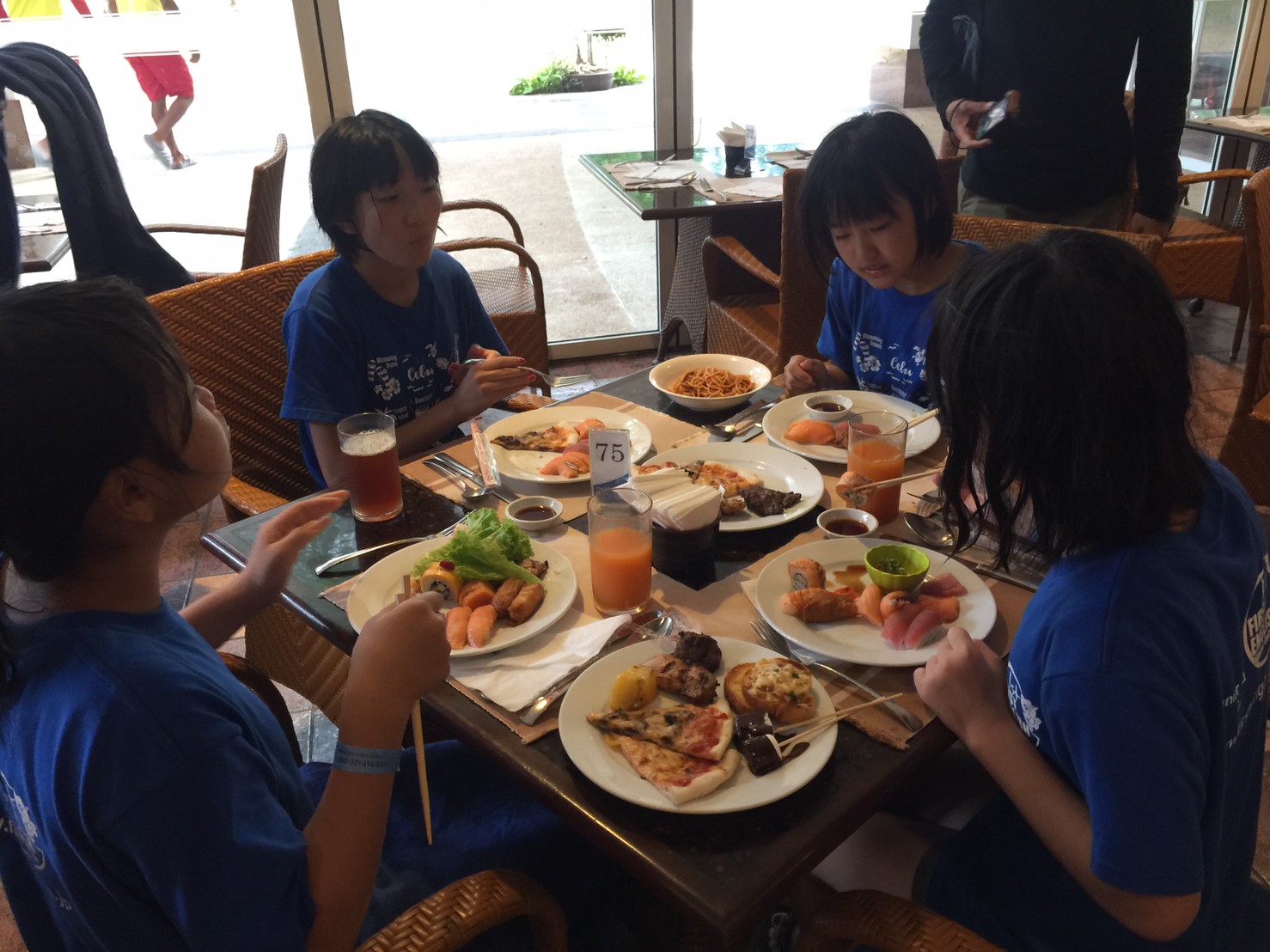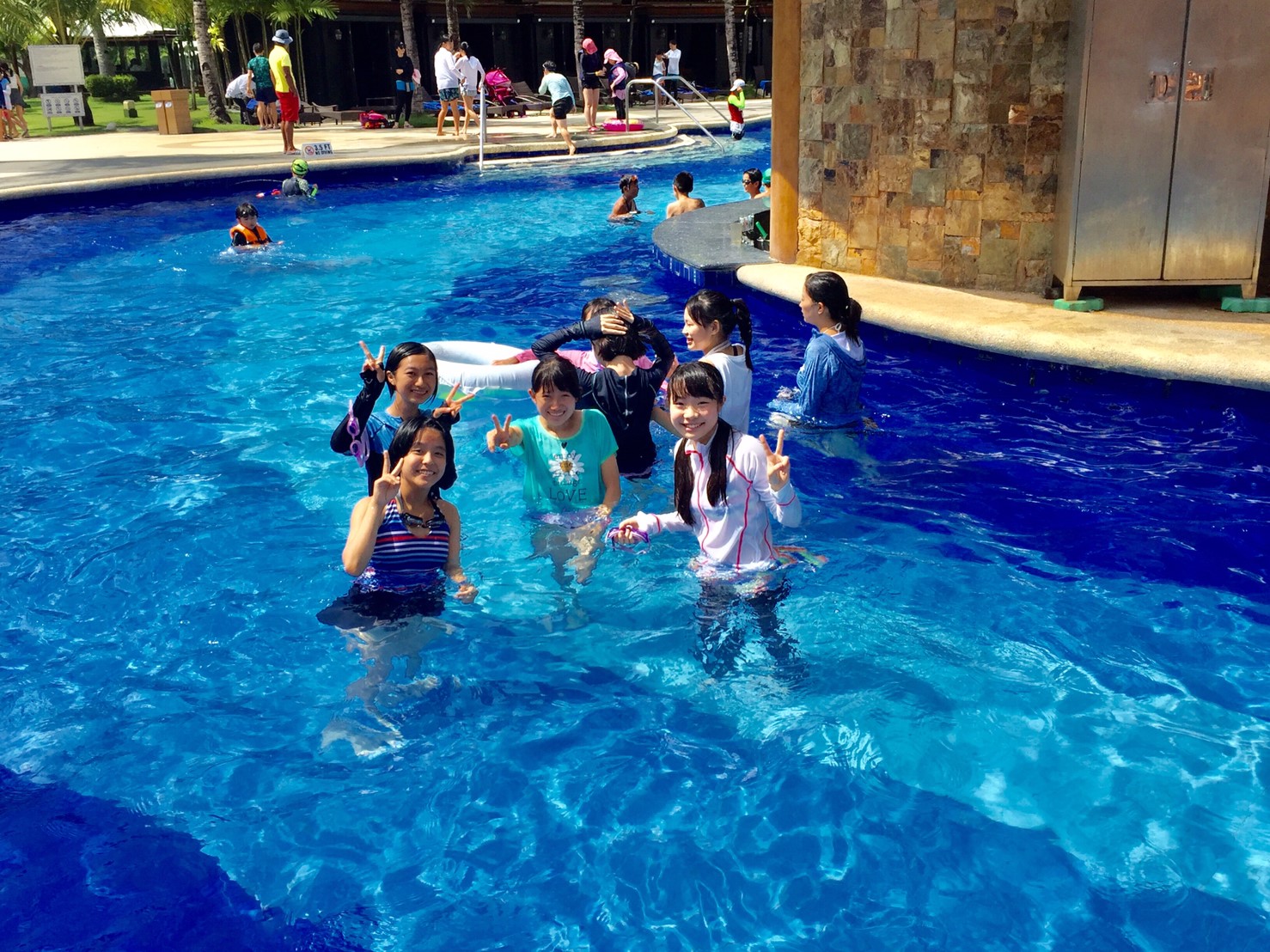 皆で、高級ホテルのプール&ランチビュッフェを楽しみます♪