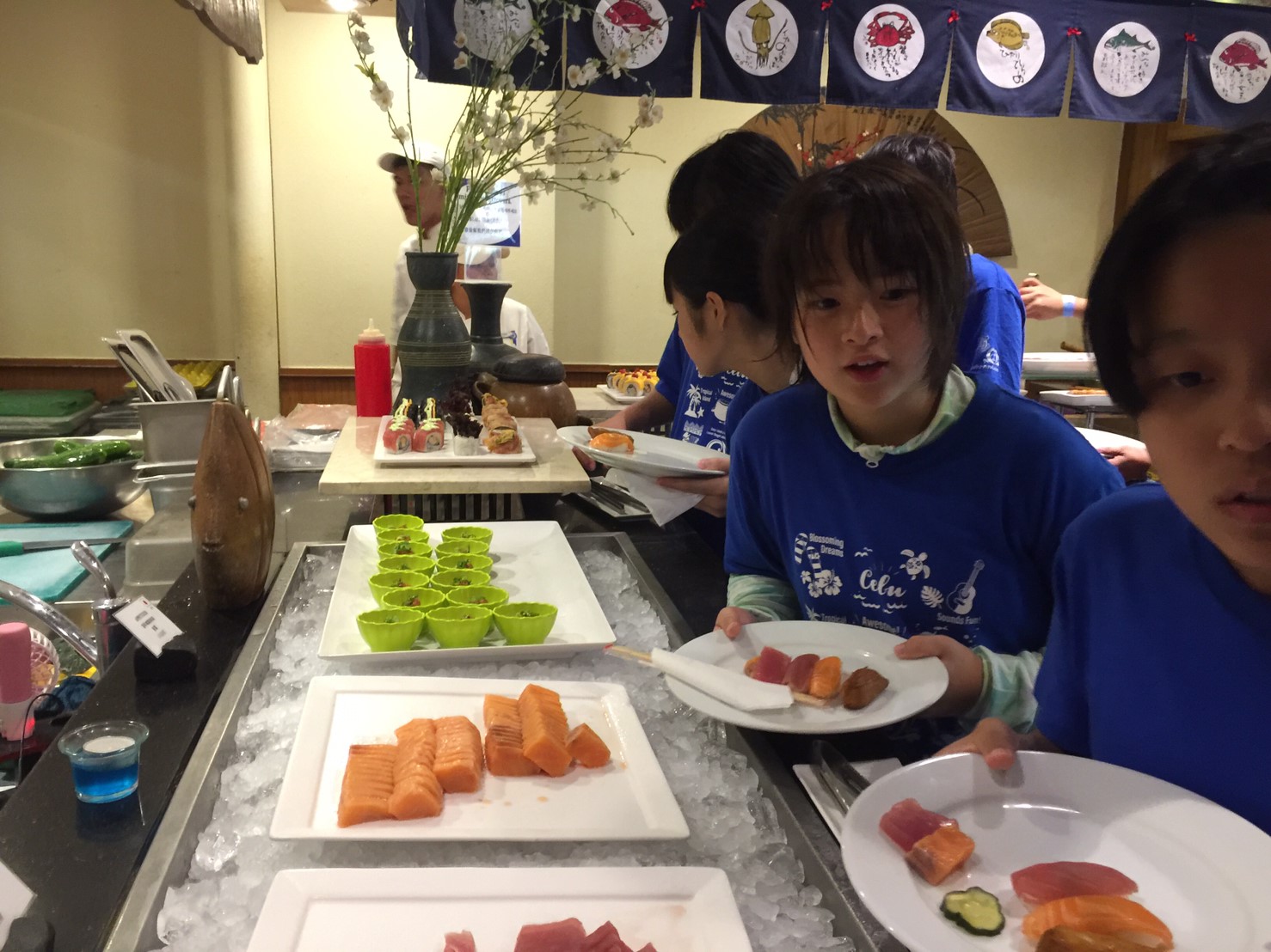 特に子供達は、刺身、ピザ、パスタ、スイーツに夢中でした!!)