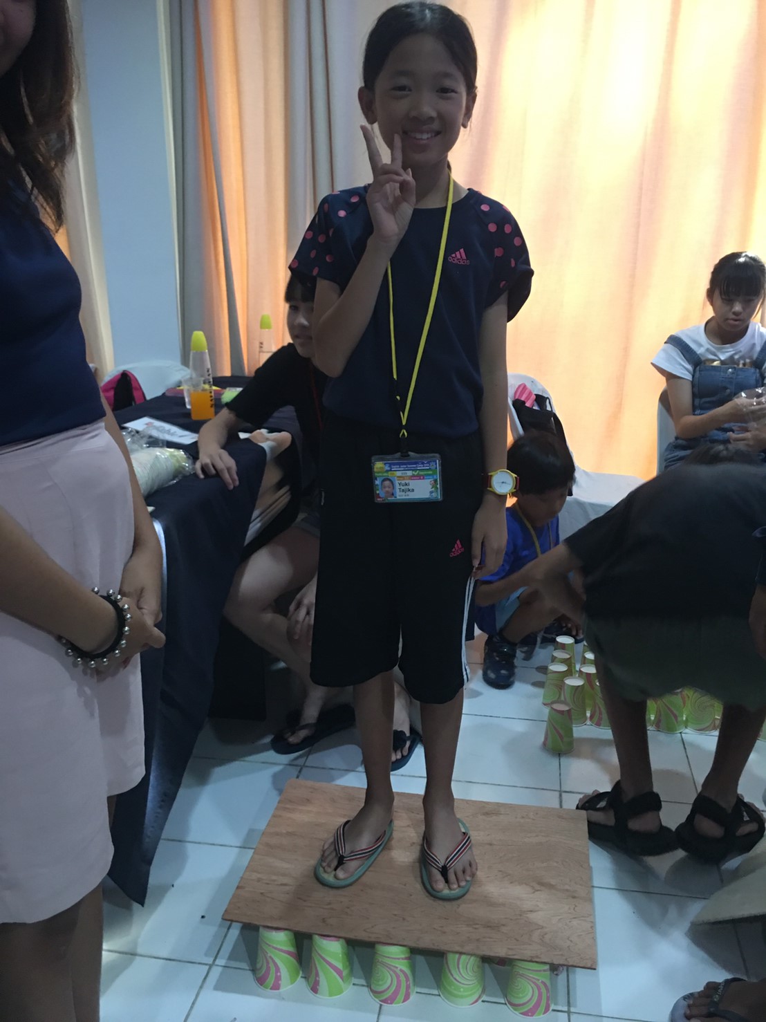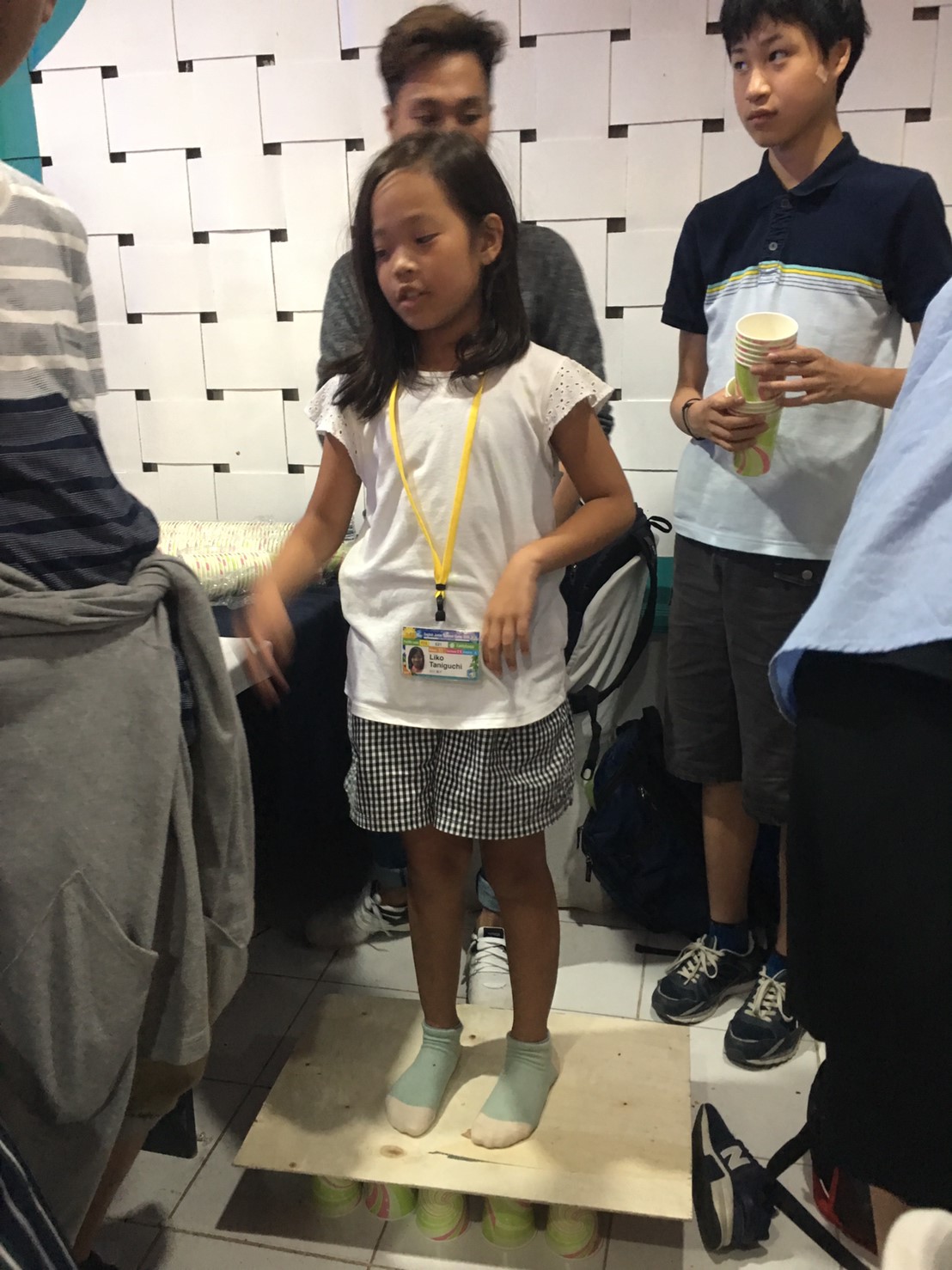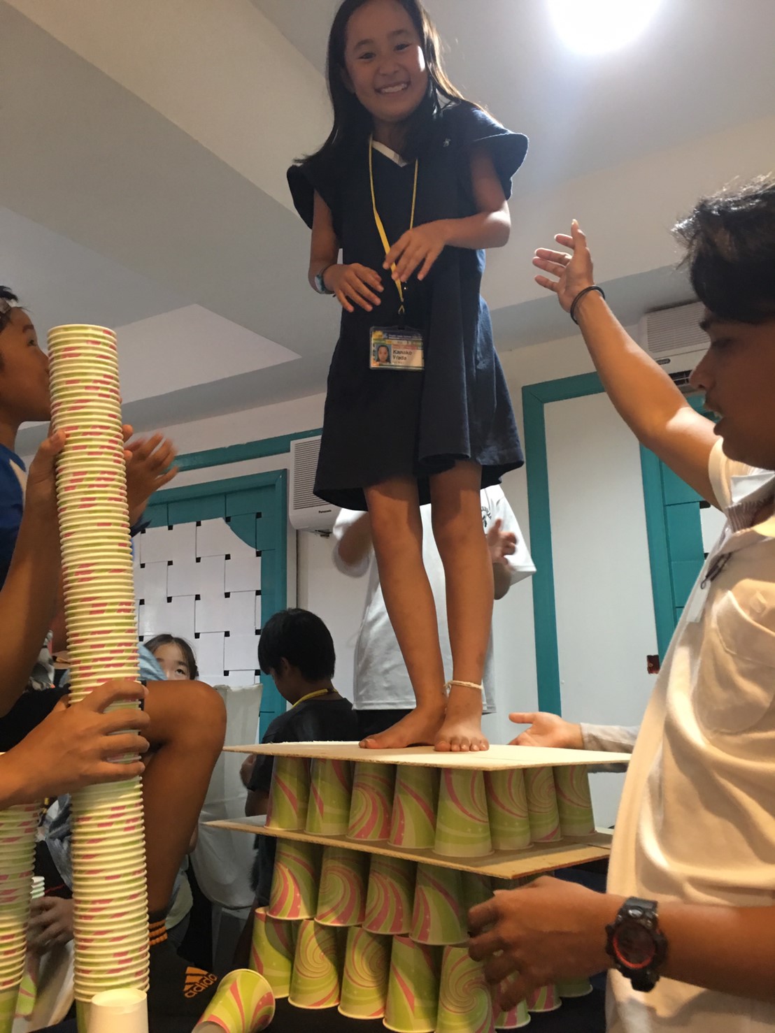 でも、紙コップを沢山使ってタワーを作り、上に乗ってみると・・・潰れません☆彡