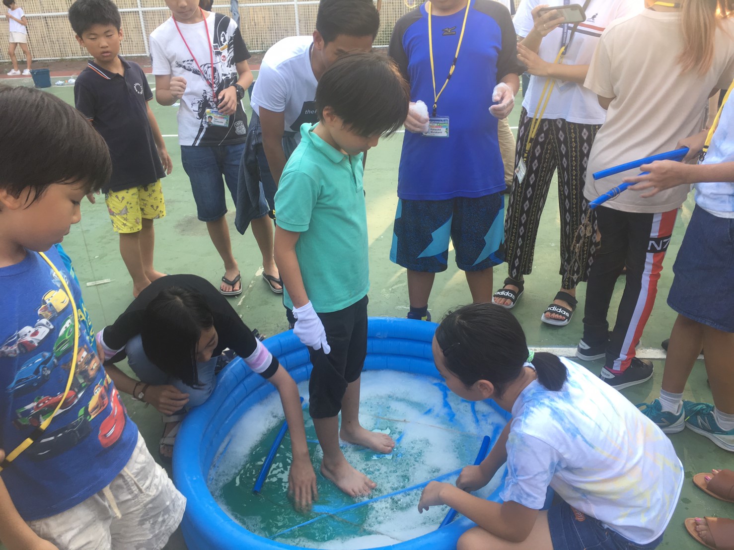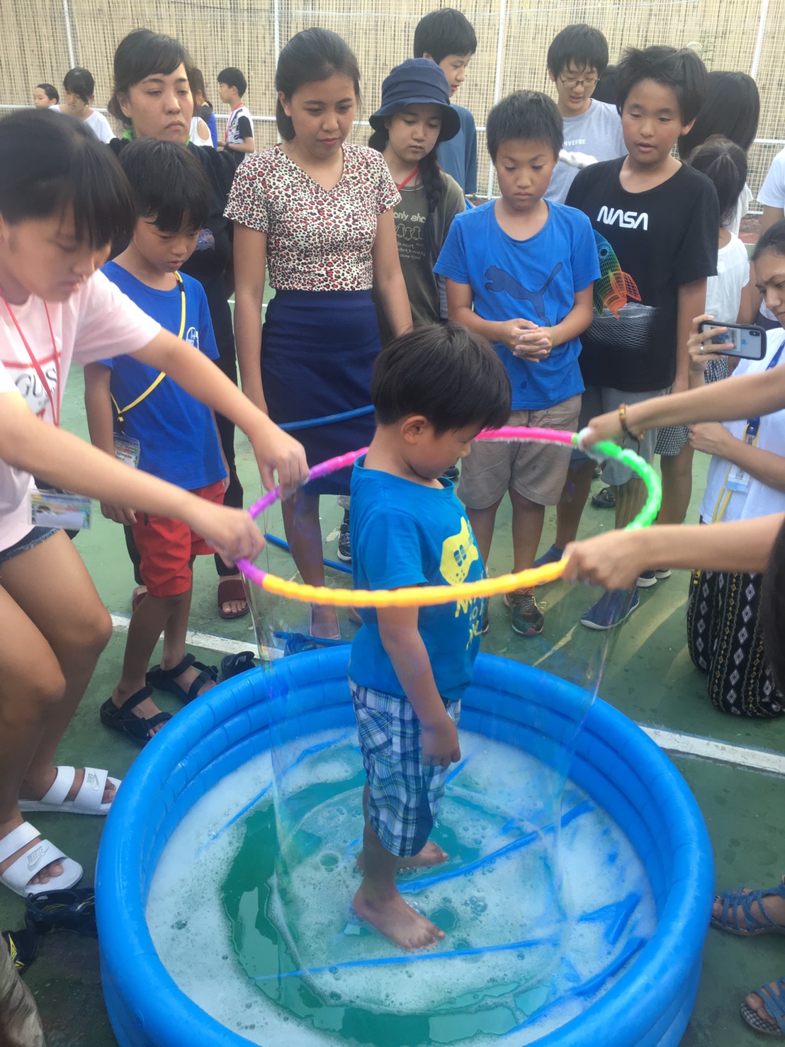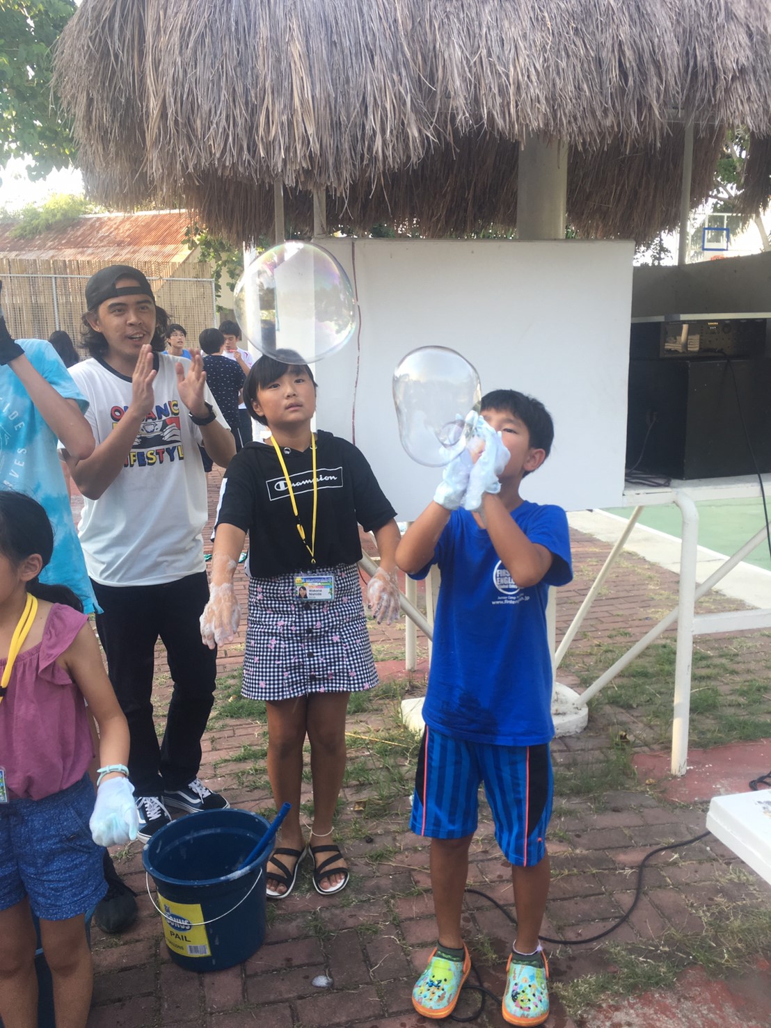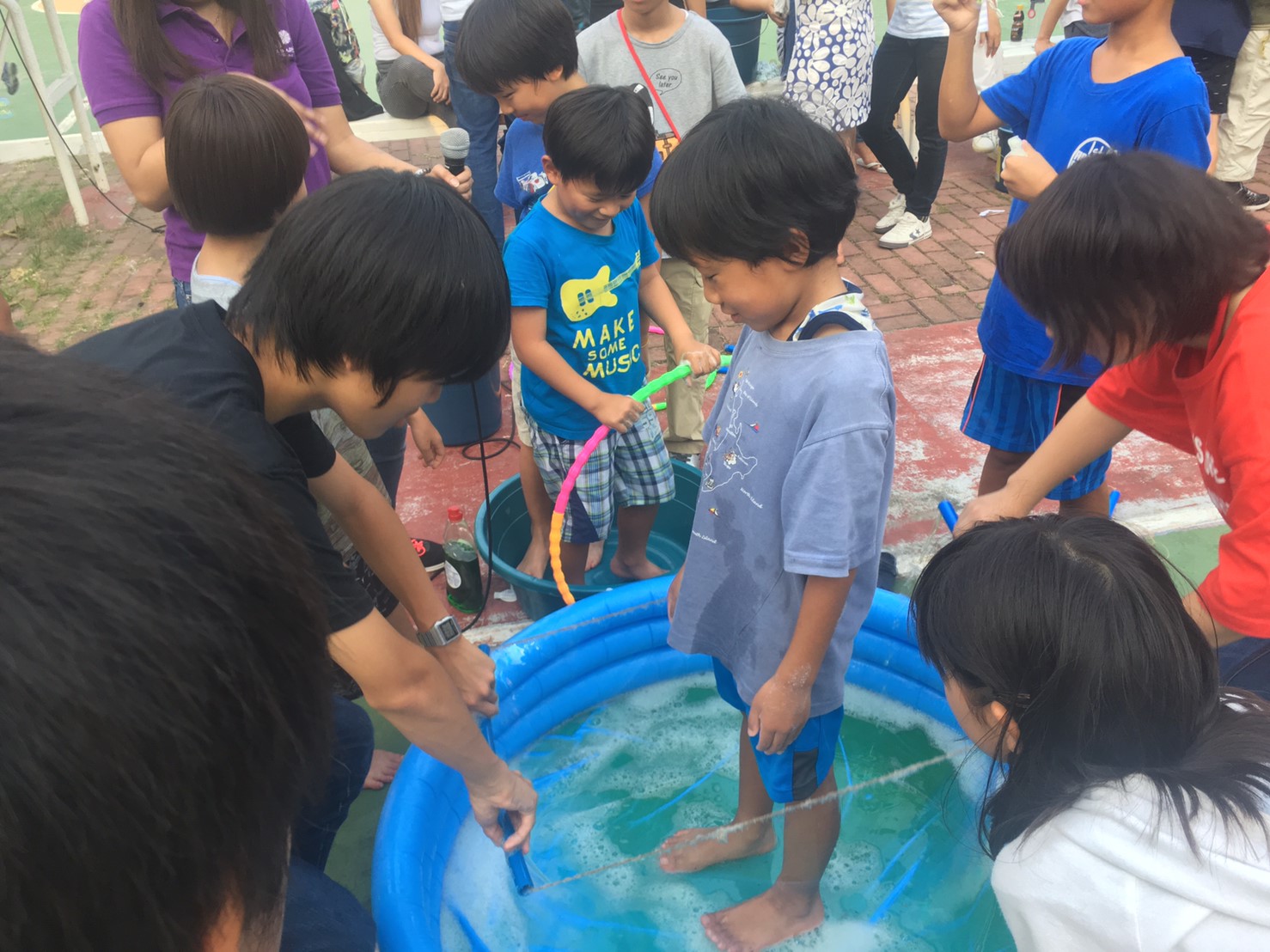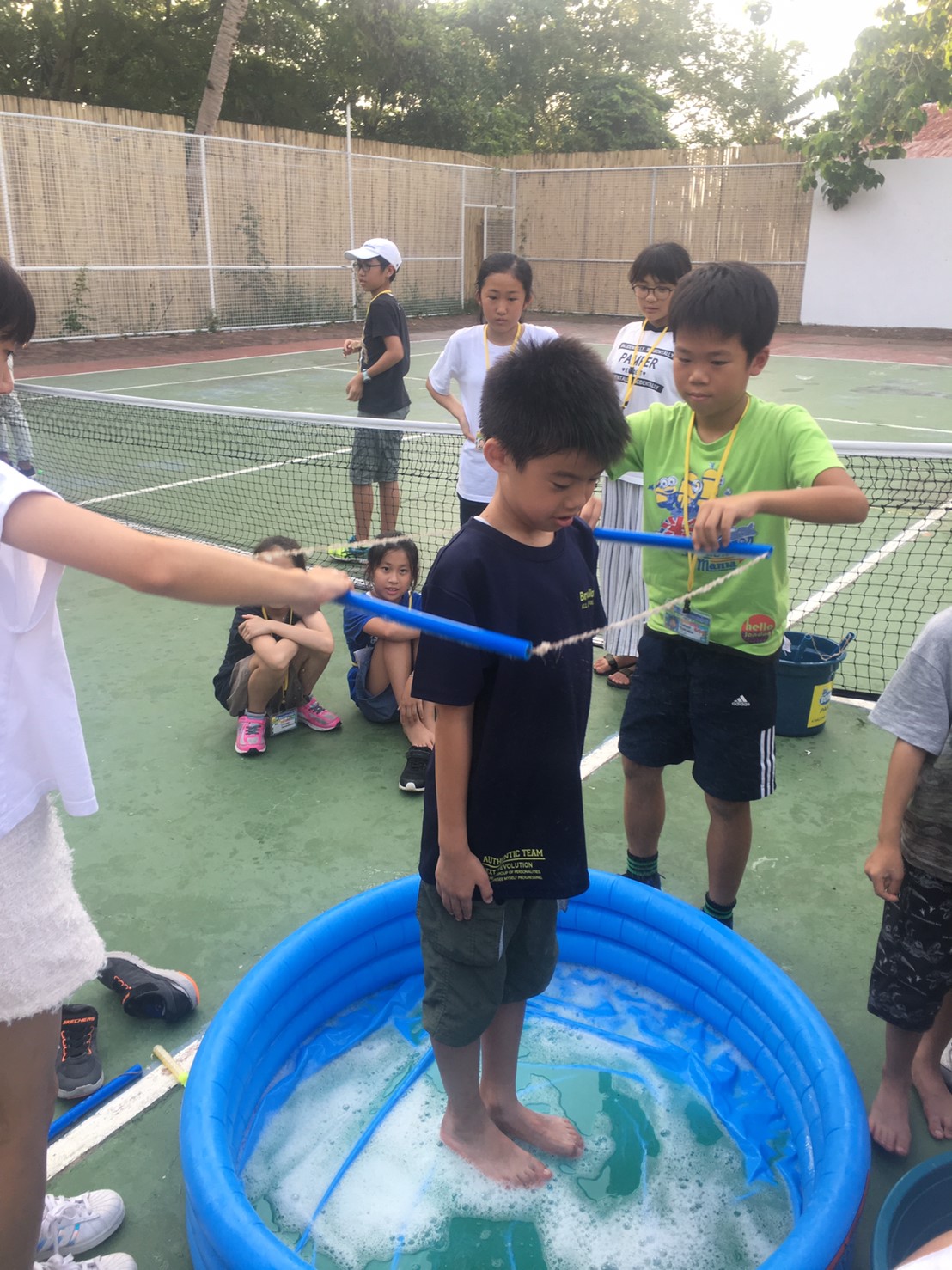 シャボン液を作る事から始まり、最後には体を包み込むサイズのシャボン玉作りにも挑戦しましたよ!!!