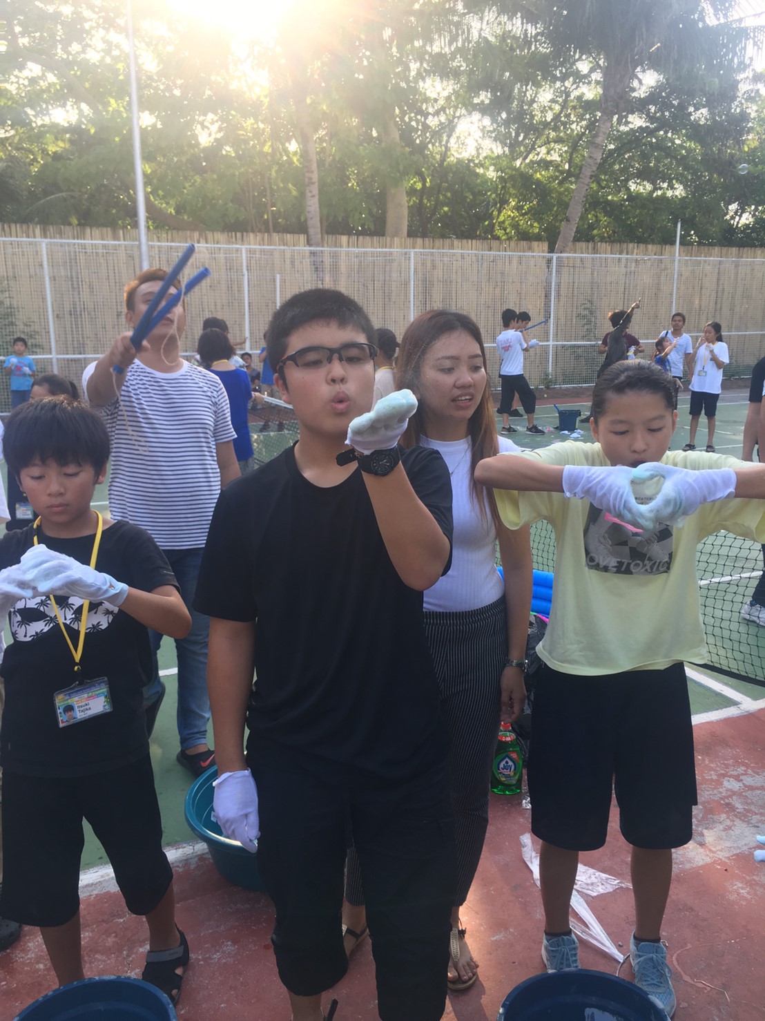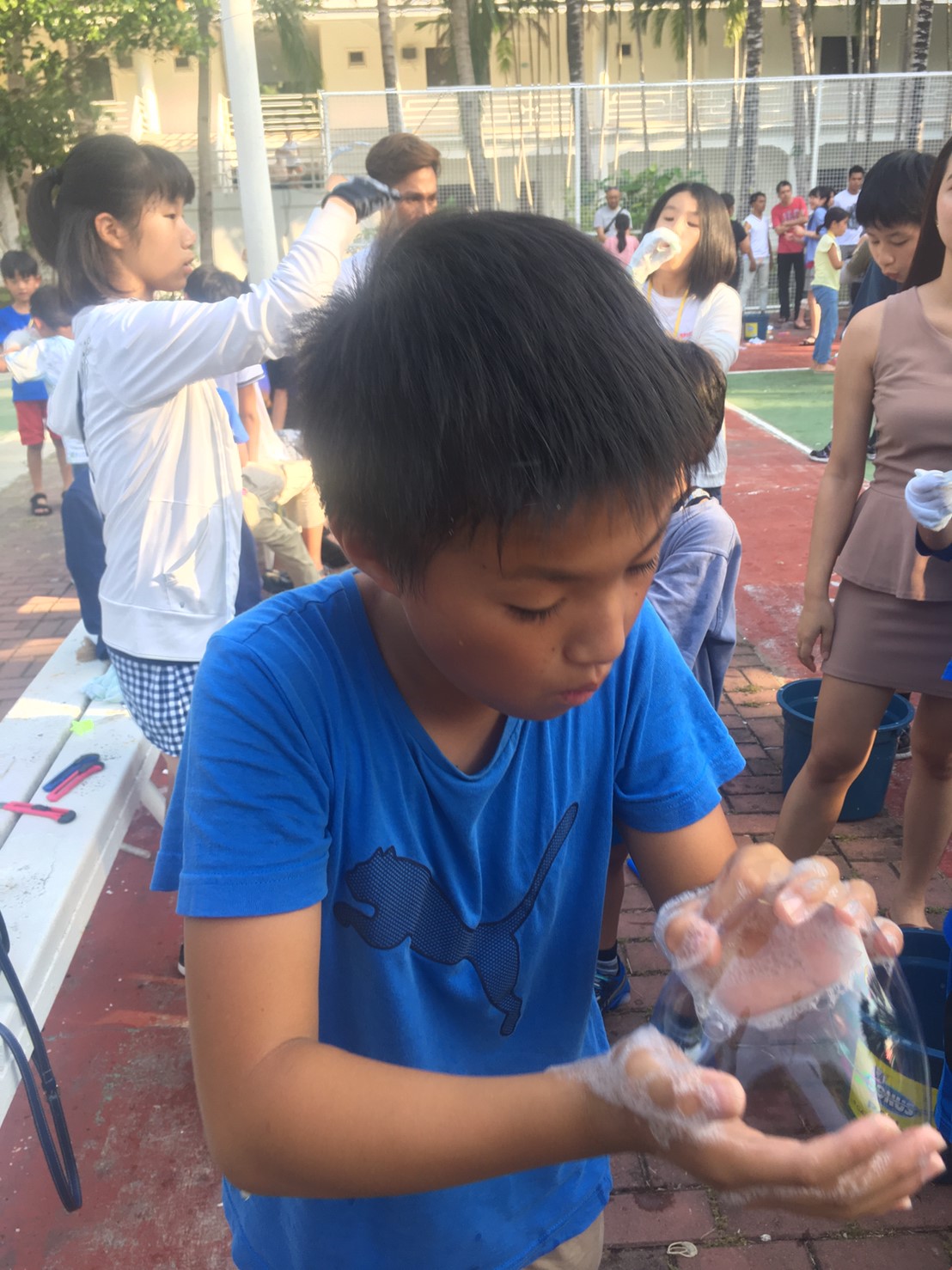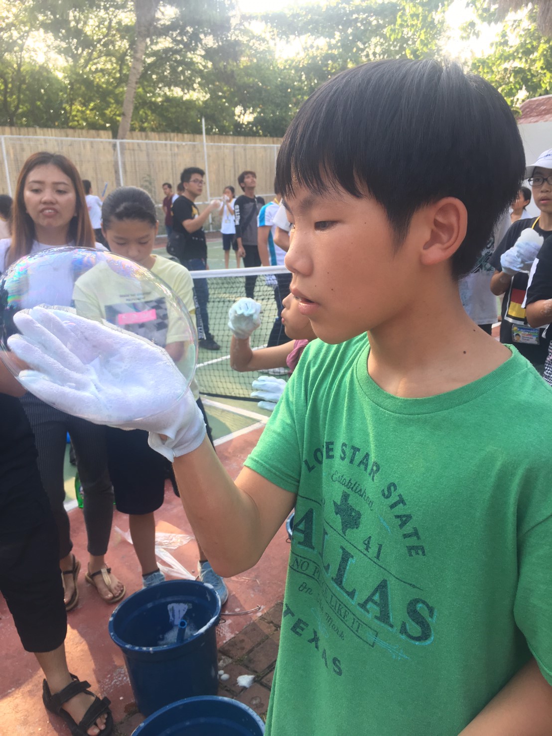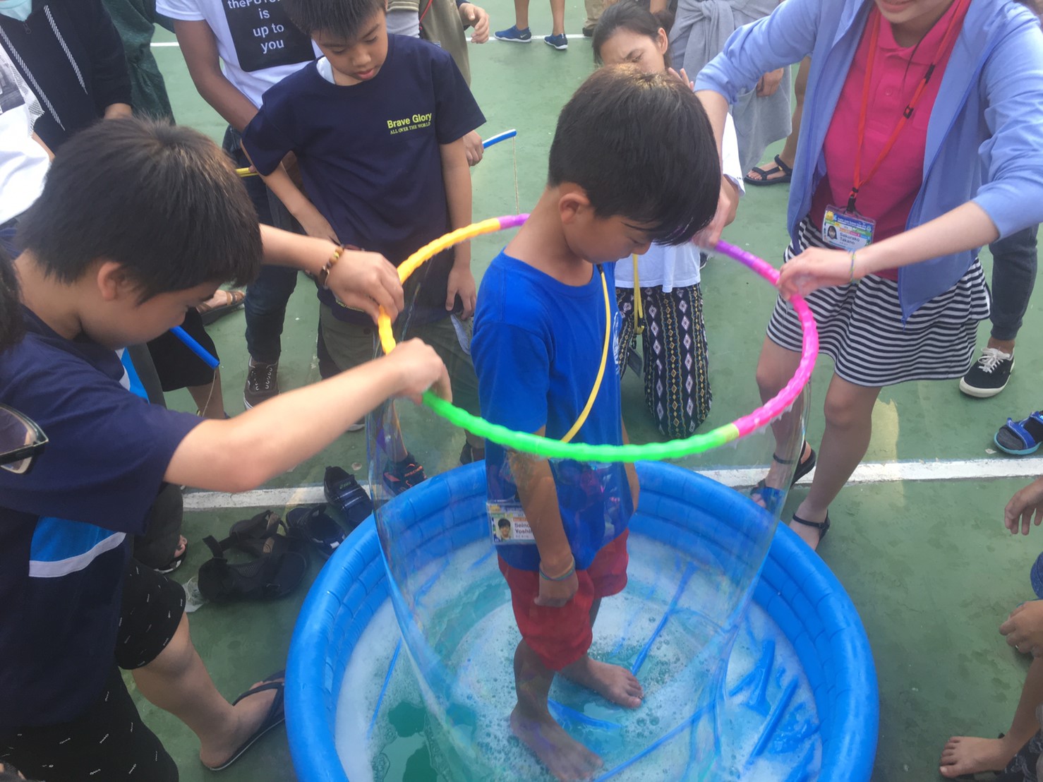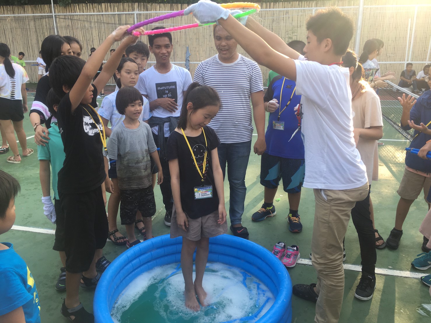 シャボン液を作る事から始まり、最後には体を包み込むサイズのシャボン玉作りにも挑戦しましたよ!!!